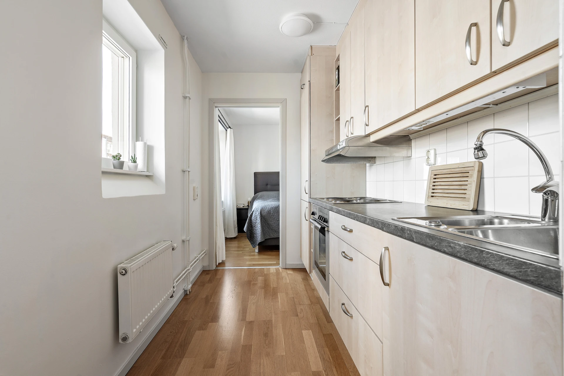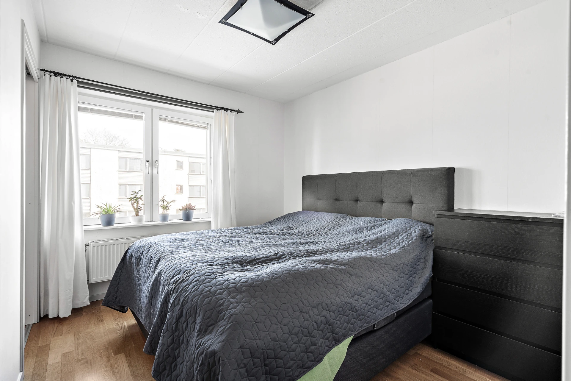Bostaden erbjuder vidare ett rofyllt sovrum med plats för dubbelsäng och kompletterande möblemang, ett stambytt och helkaklat badrum samt en praktisk walk-in-closet med generösa förvaringsmöjligheter. Till lägenheten hör även ett källarförråd.