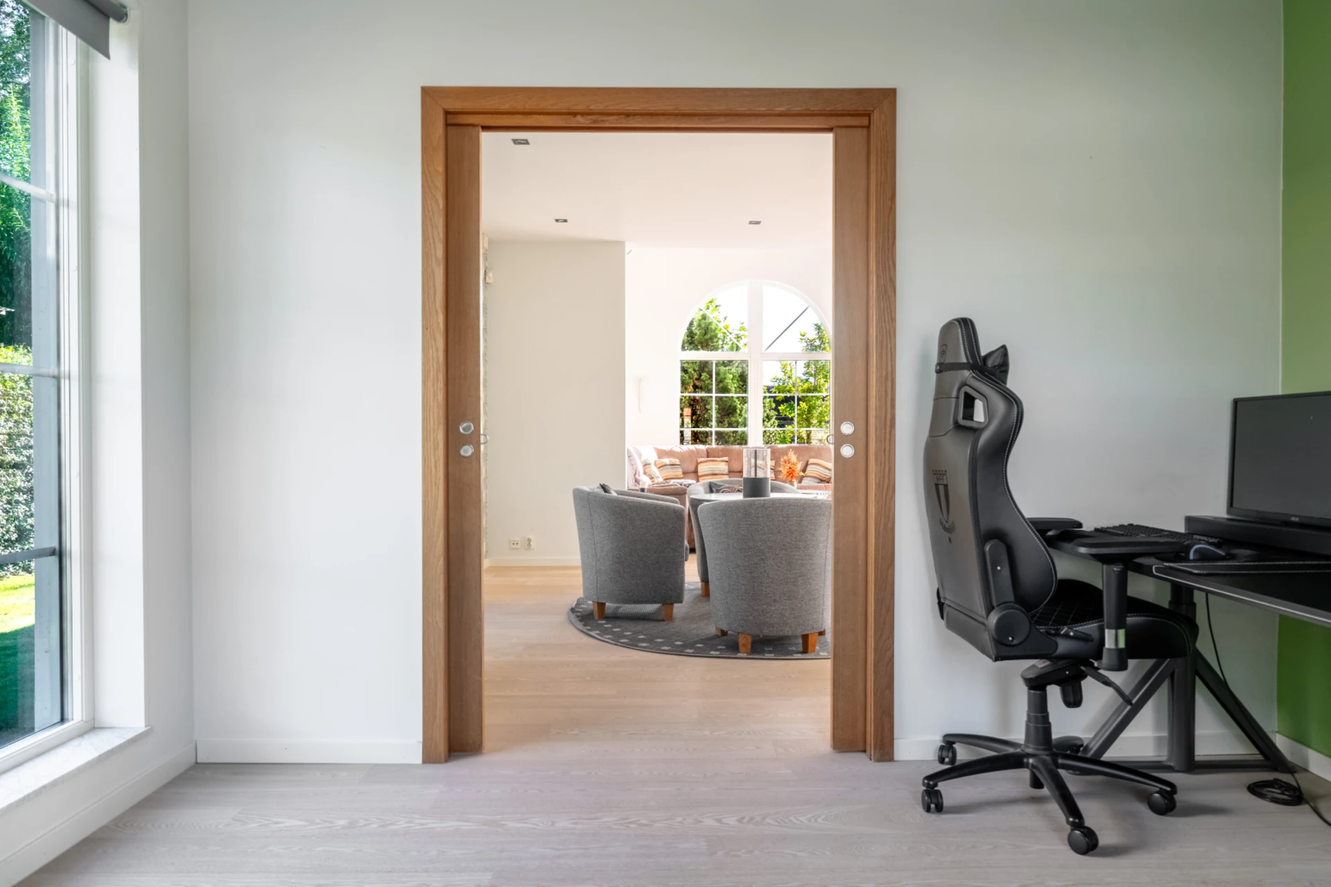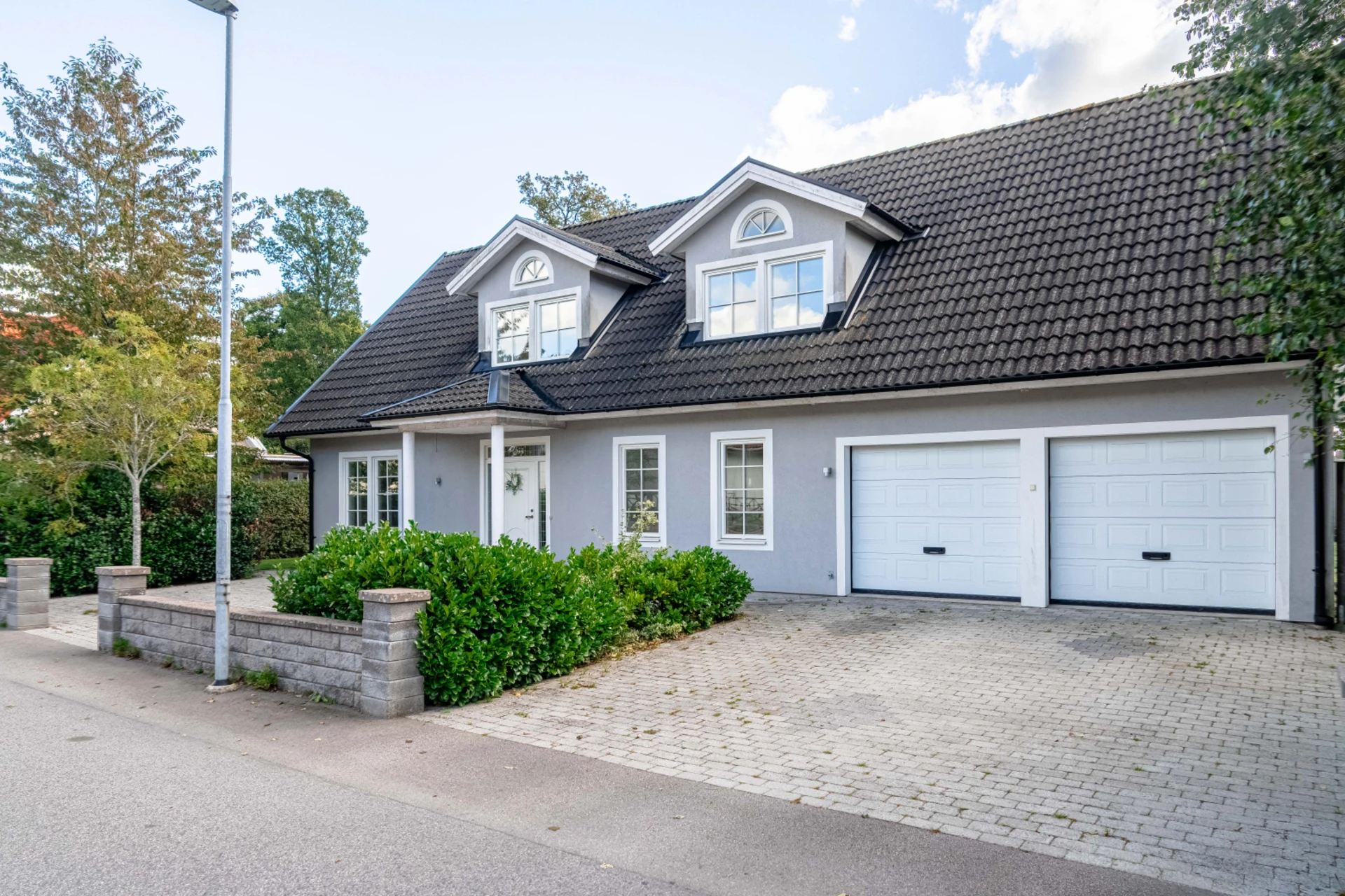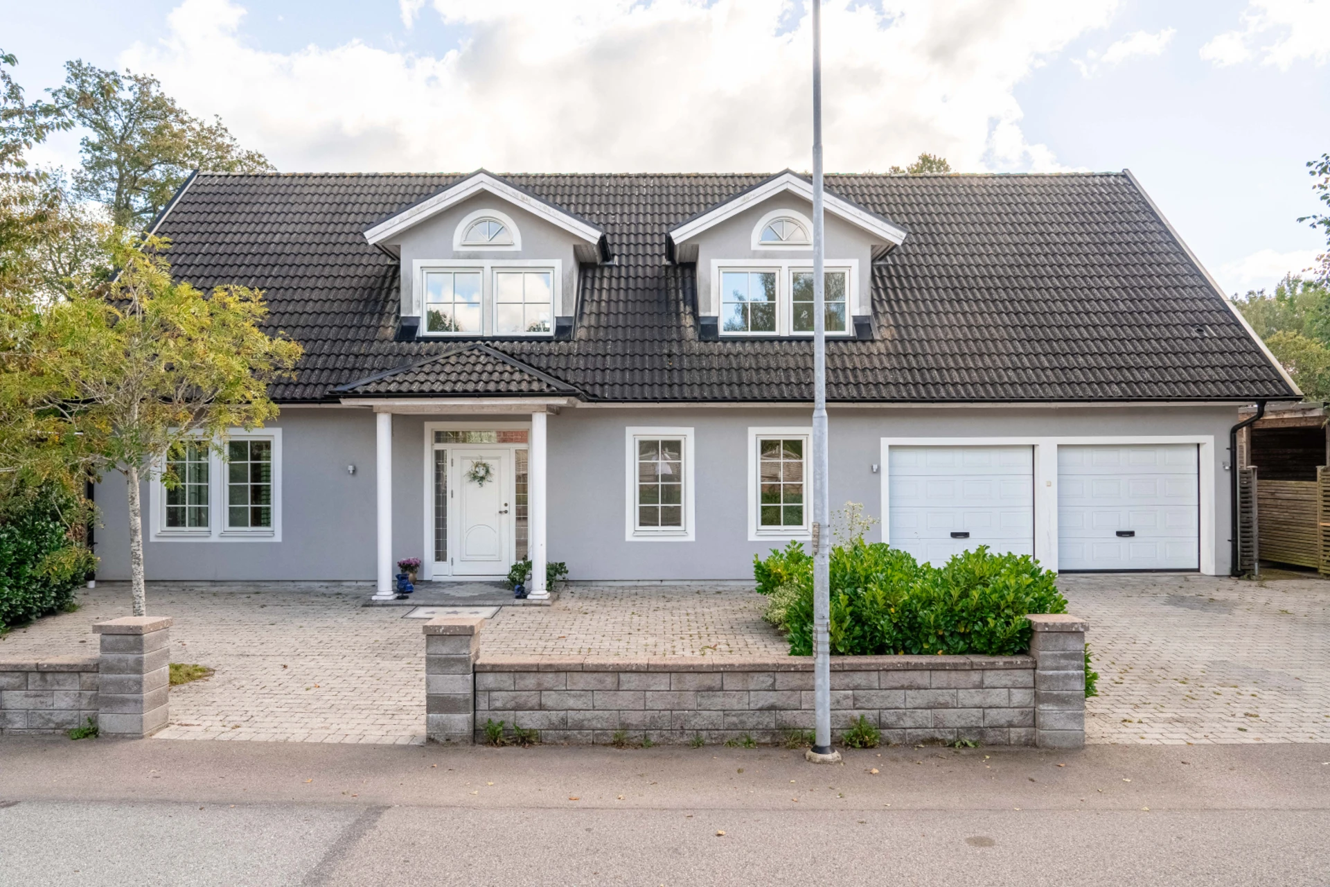 På Ardennervägen 7 möts du av en inbjudande villa som kombinerar ljusa sällskapsytor, välplanerade rum och härliga utomhusmiljöer. Redan vid uppfarten skapar den stilrena fasaden med dubbla garageportar ett gediget intryck och innanför dörren väntar ett hem där både vardag och fest får ta plats.
