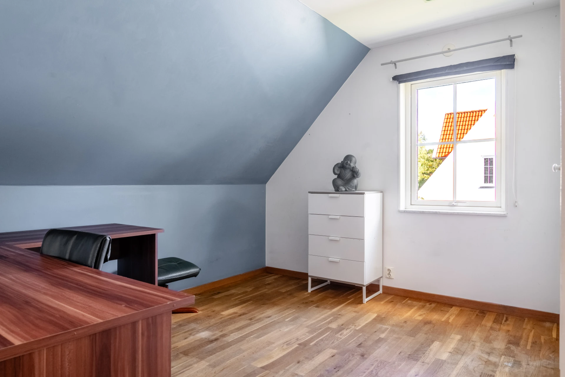 Entréplanets sovrum, fungerar perfekt även som arbetsplats eller gästrum.