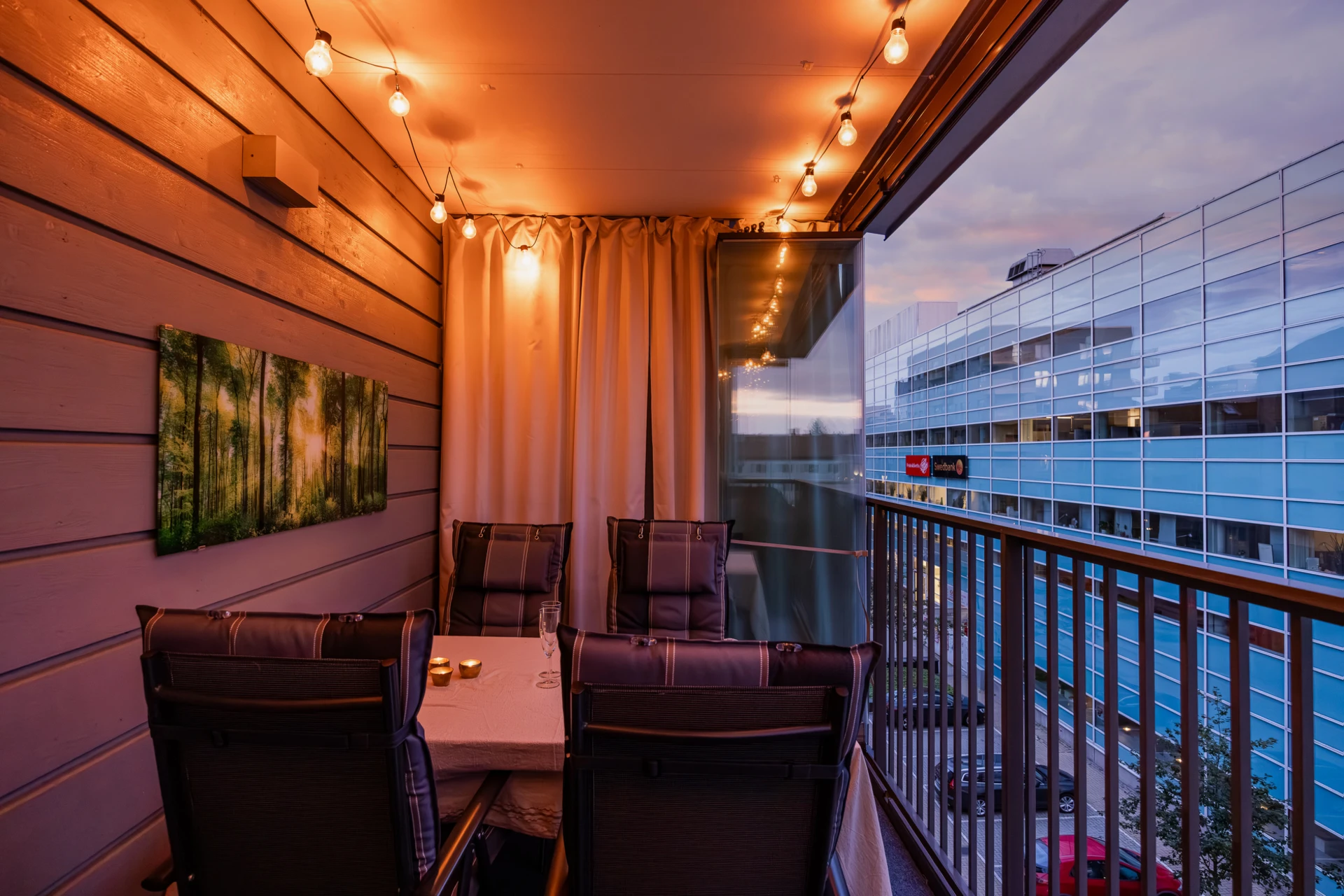 Godkänt bygglov för inglasning av balkongerna finns för nästan alla lägenheter. Det finns möjlighet till inglasning med av föreningen godkänd aktör. Varje enskild medlem får ta kontakt med Lumon för offert.
