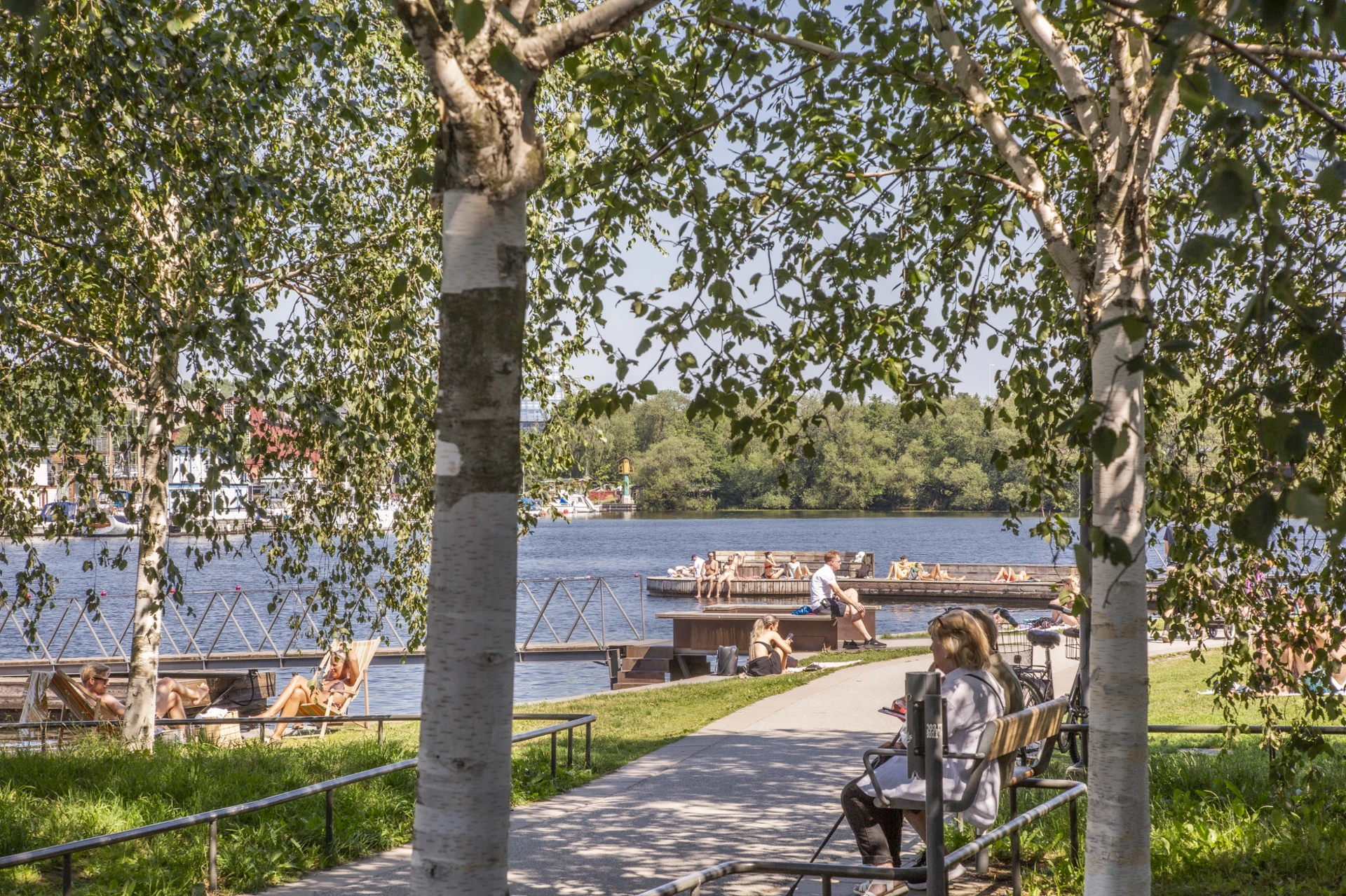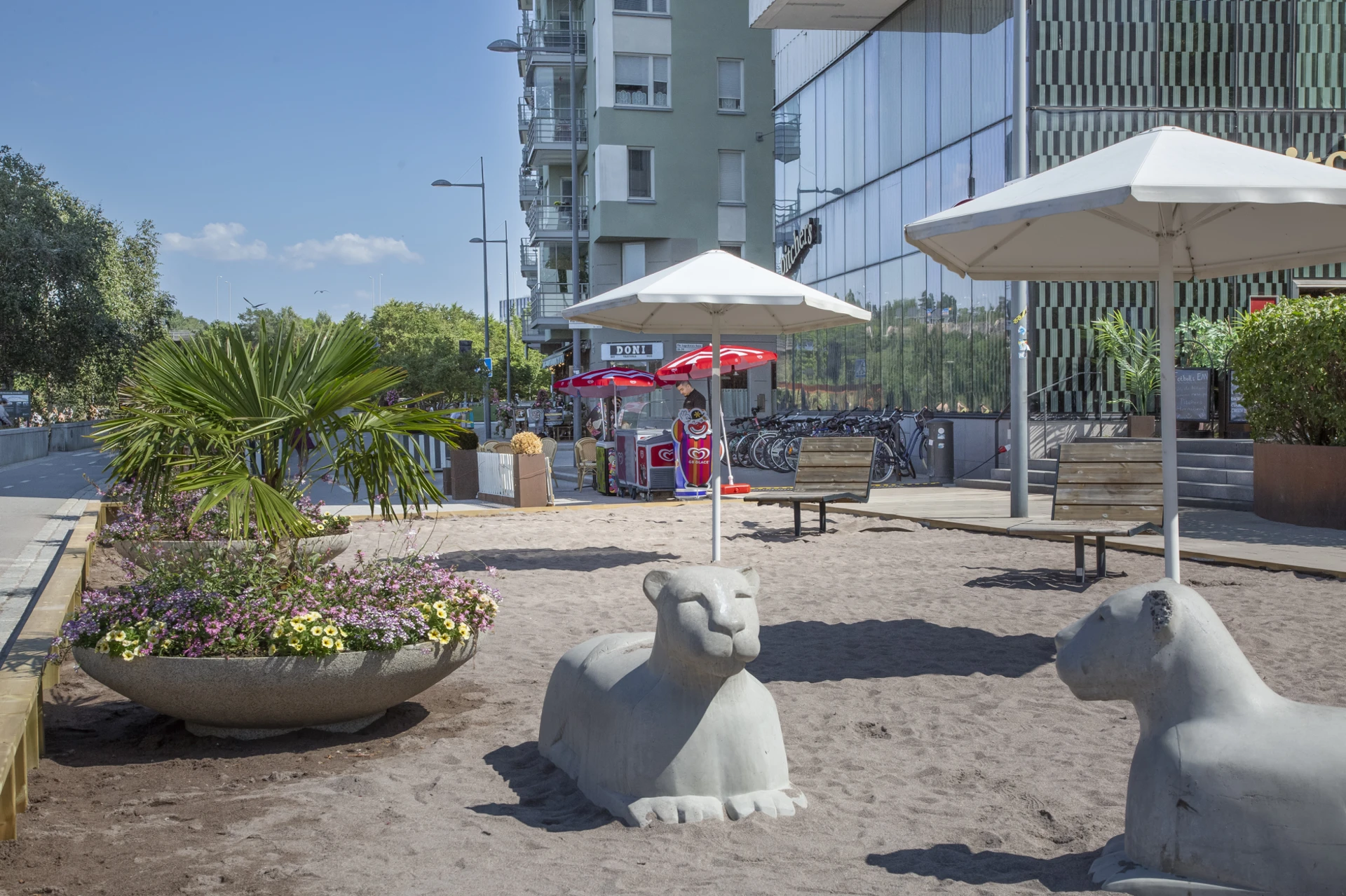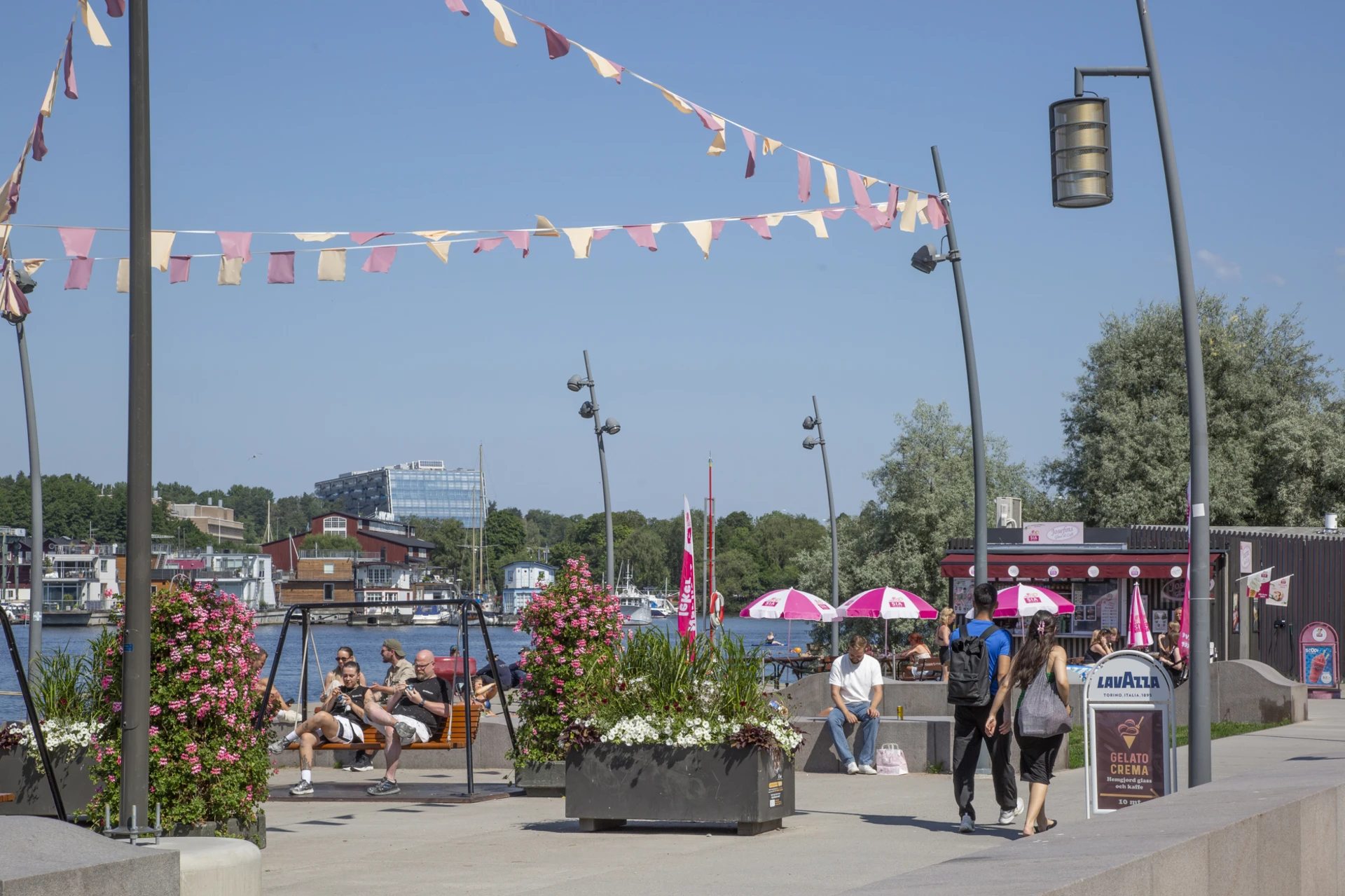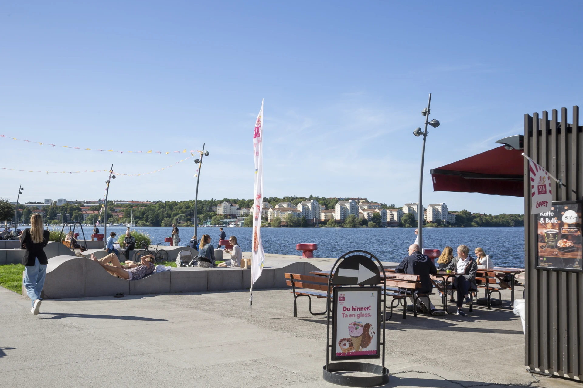 Från maj till oktober förvandlas Hornsbergs Strand till en populär gågata med fina planteringar och härliga uteserveringar. Här kan du fina sommarkvällar njuta av både god mat och fantastiska solnedgångar över vattnet.