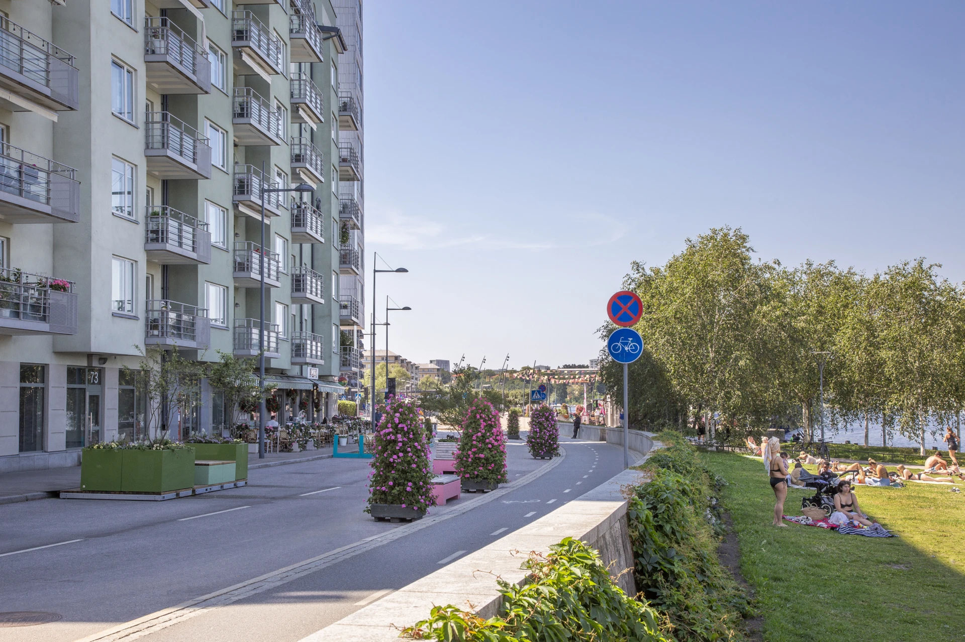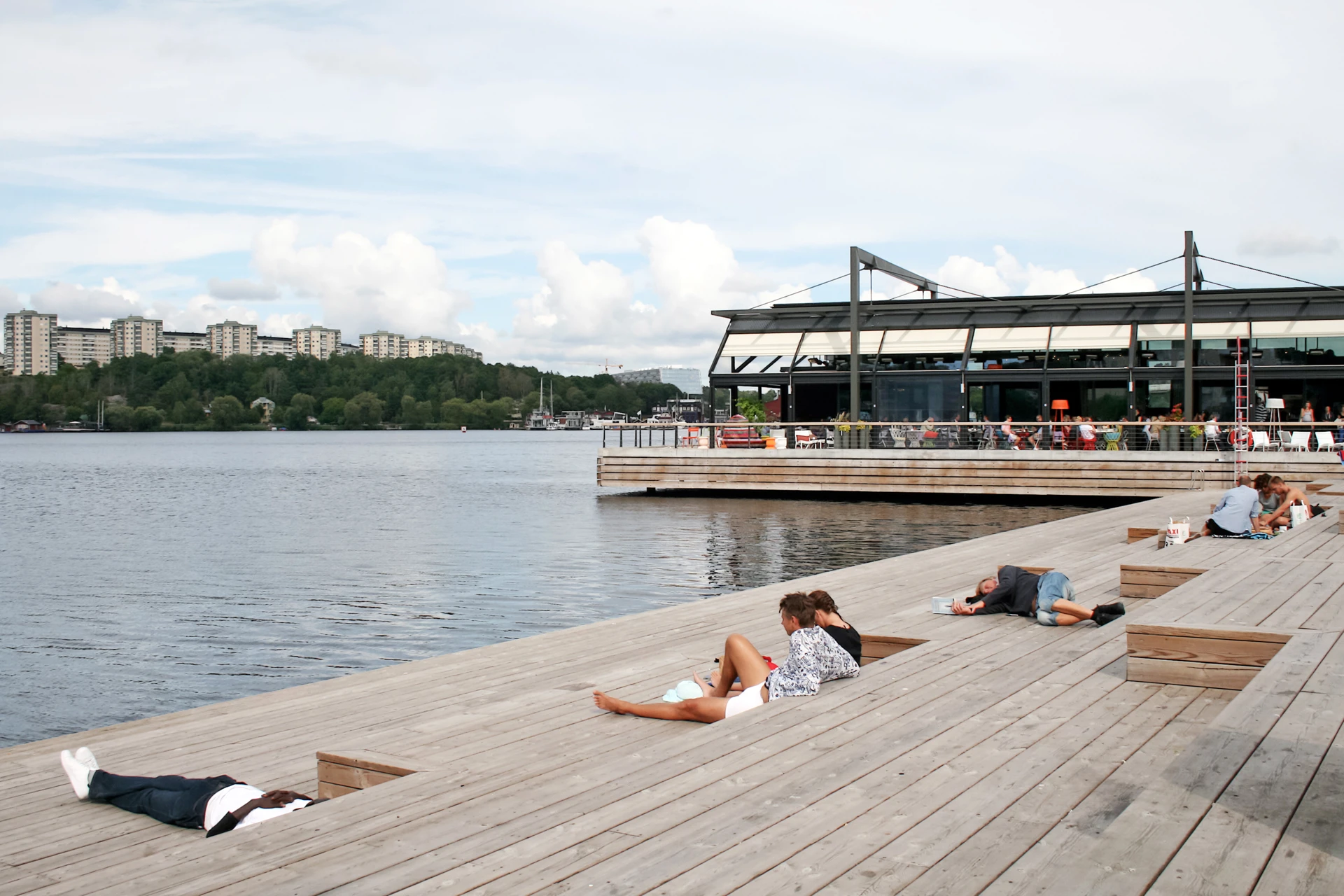 I närområdet finns även badklippor, bryggor för sol och bad samt flera lekparker med plaskdammar. Vid vattnet finns Moa Martinsons torg med uteserveringar. I området finns ett flertal populära restauranger; bl.a. Piren, Indian Garden, Lily`s Burger och Texas Longhorn. Det är också gångavstånd till populära Augustendals 4H-gård.