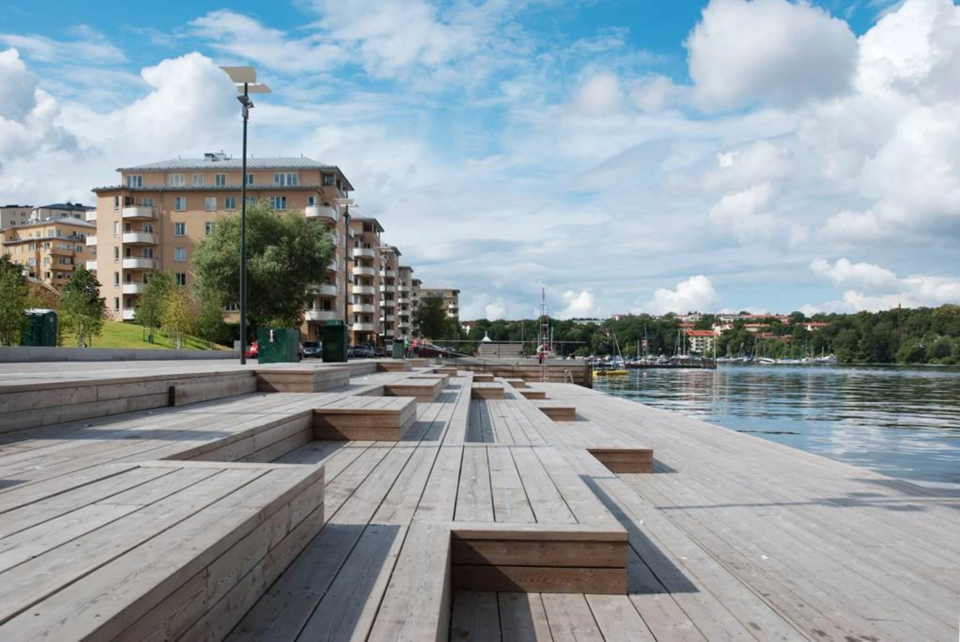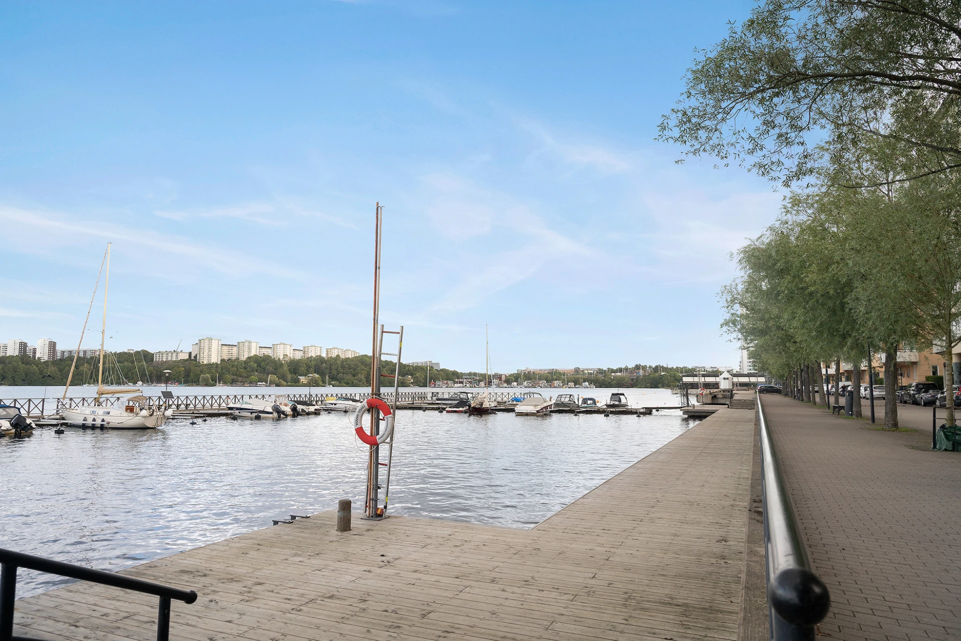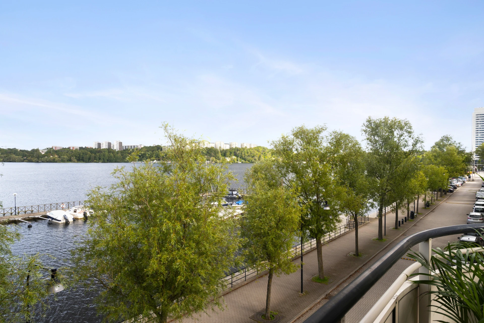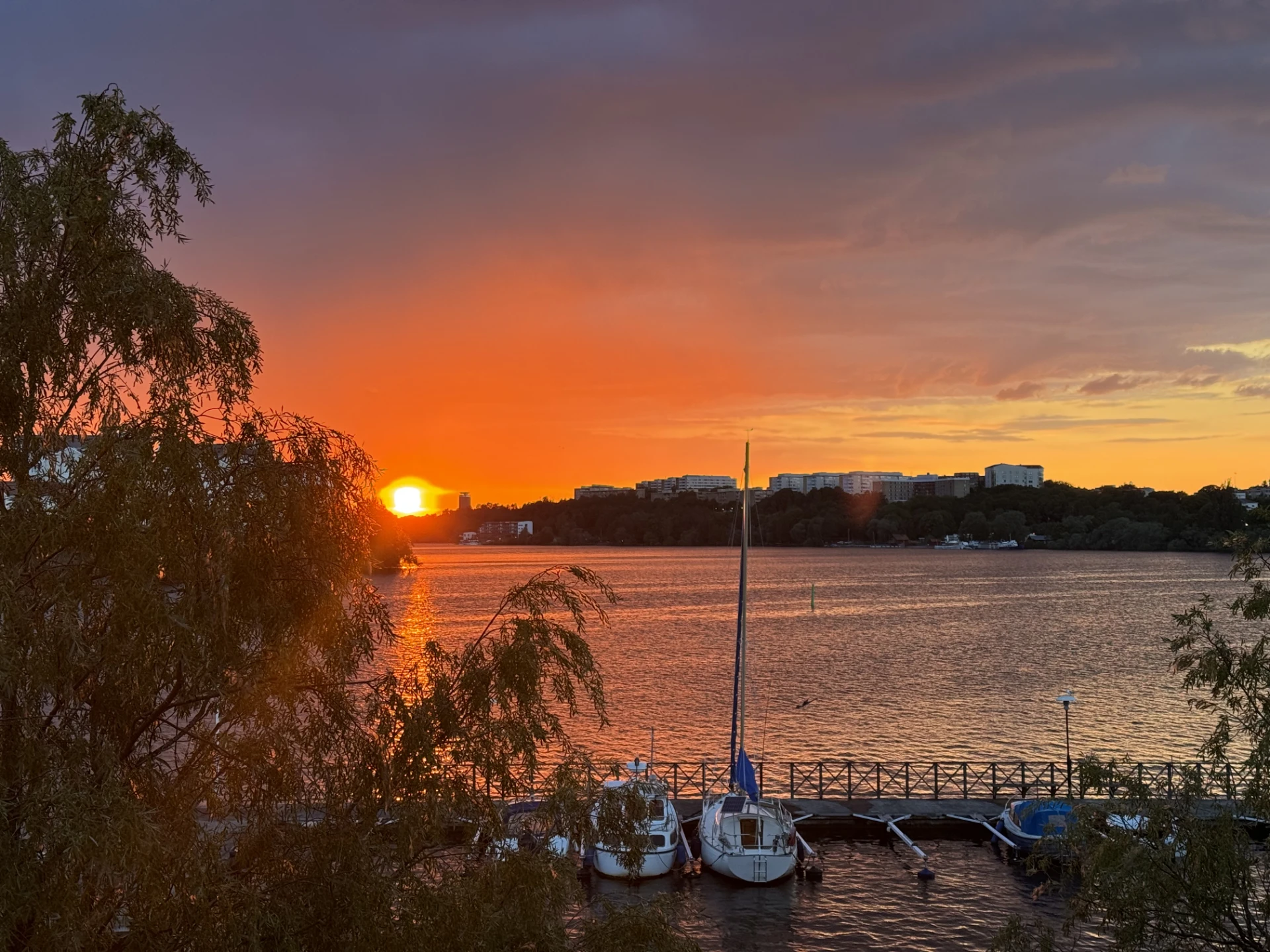Här möts du av en underbar balkong med fri utsikt mot glittrande vatten - en plats där lugnet infinner sig direkt. Balkongen har sol från eftermiddagen och långt in på kvällen, vilket gör den perfekt för avkopplande stunder efter jobbet eller middagar i solnedgången.
