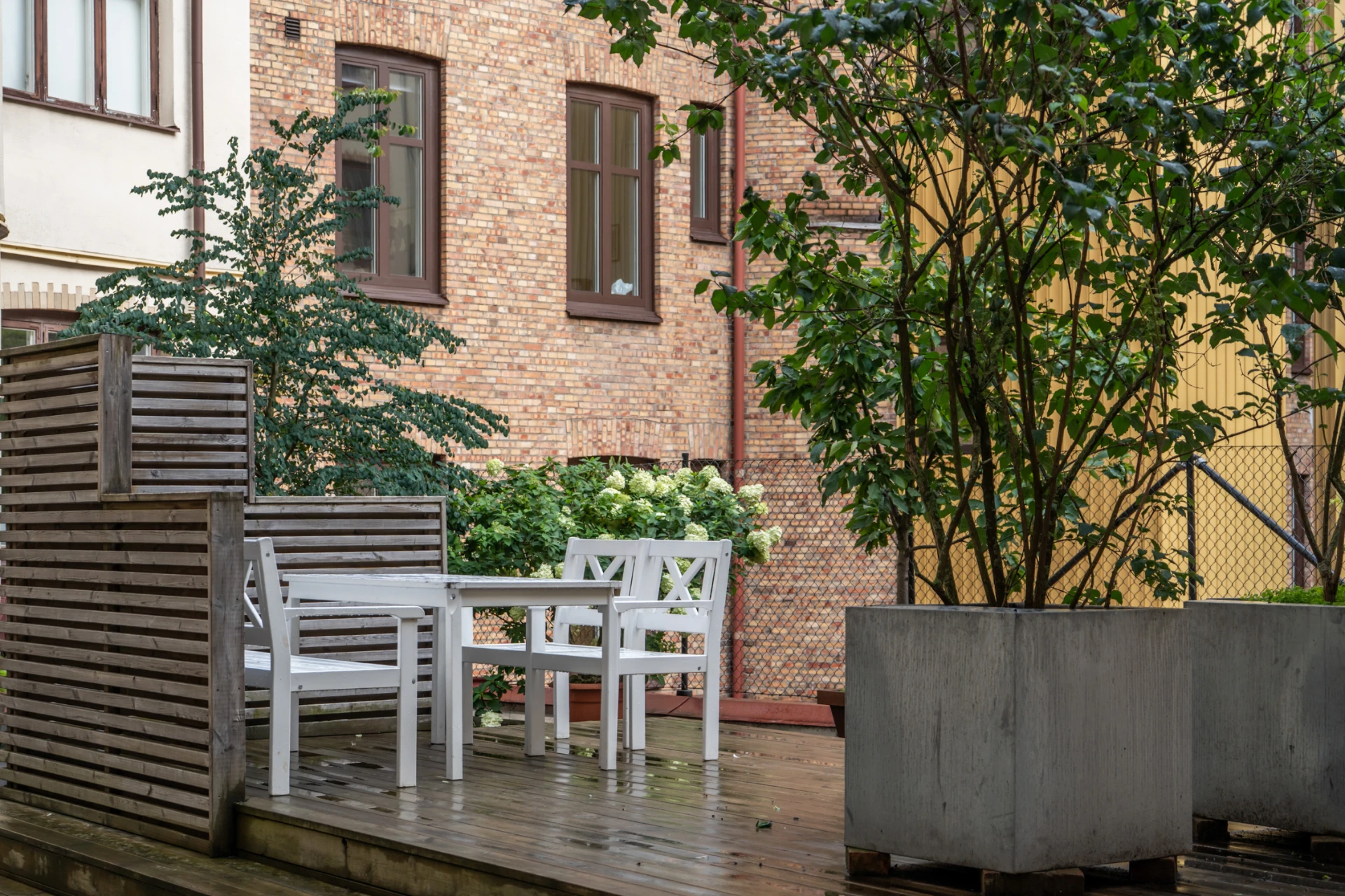 Utanför porten kan ni njuta av storslagna vyer från områdets gemensamma utsiktsplats med utblick över Göteborgs hamninlopp och stadens charmiga takåsar. Ni promenerar enkelt ner till såväl knutpunkten Stenpiren som Kungsgatans shoppingstråk, med andra ord finner ni allt att önska runtom. Ta vara på den sällsynta möjligheten att bosätta er med närheten till såväl citykärnan och sprudlande Linnéstaden som pittoreska Haga och pulserande Vasastaden.