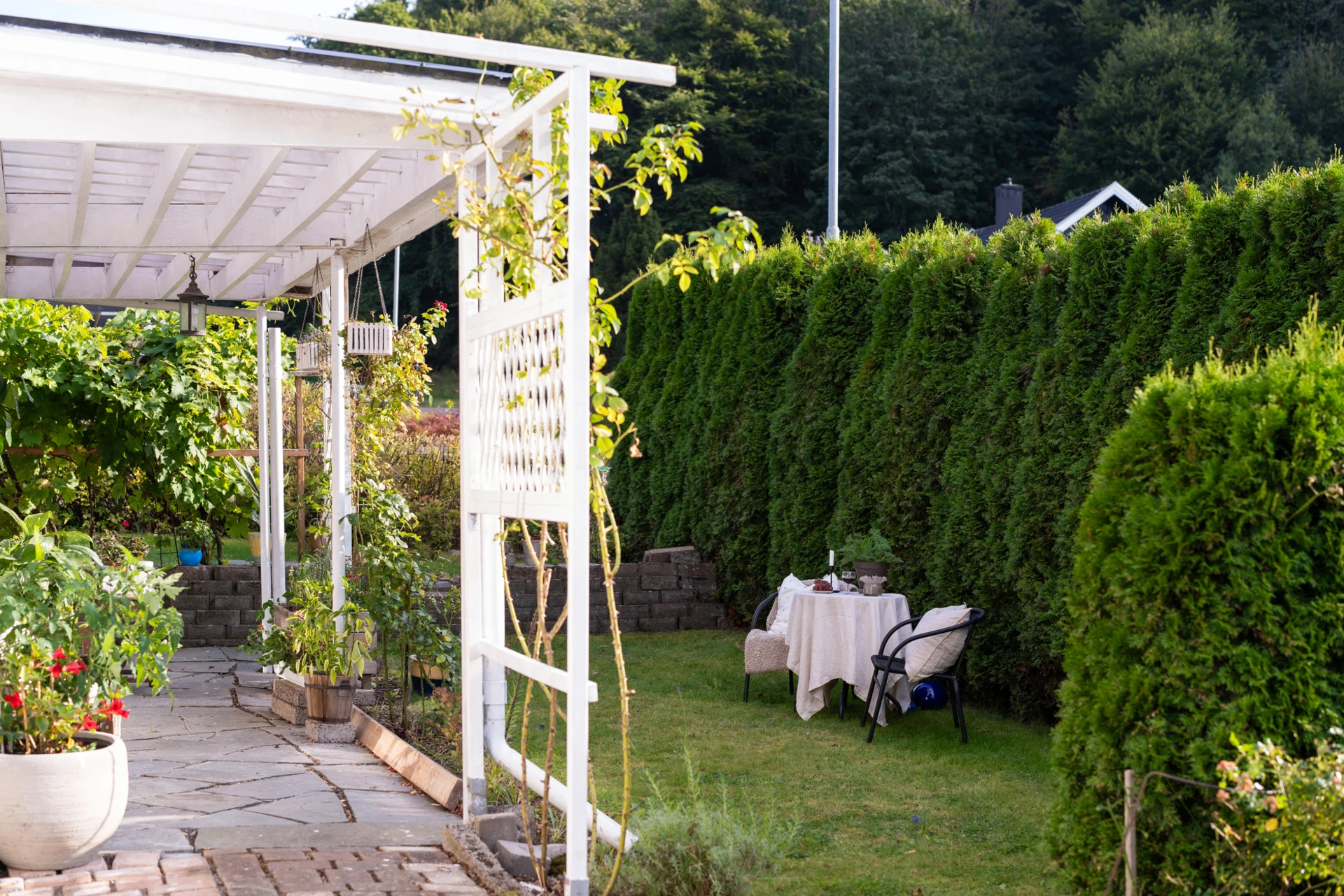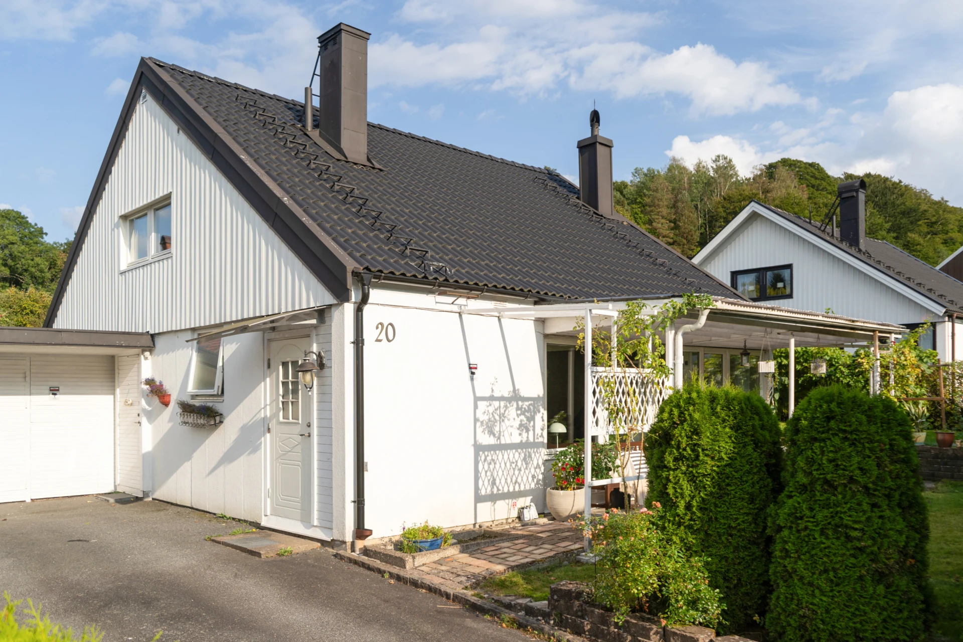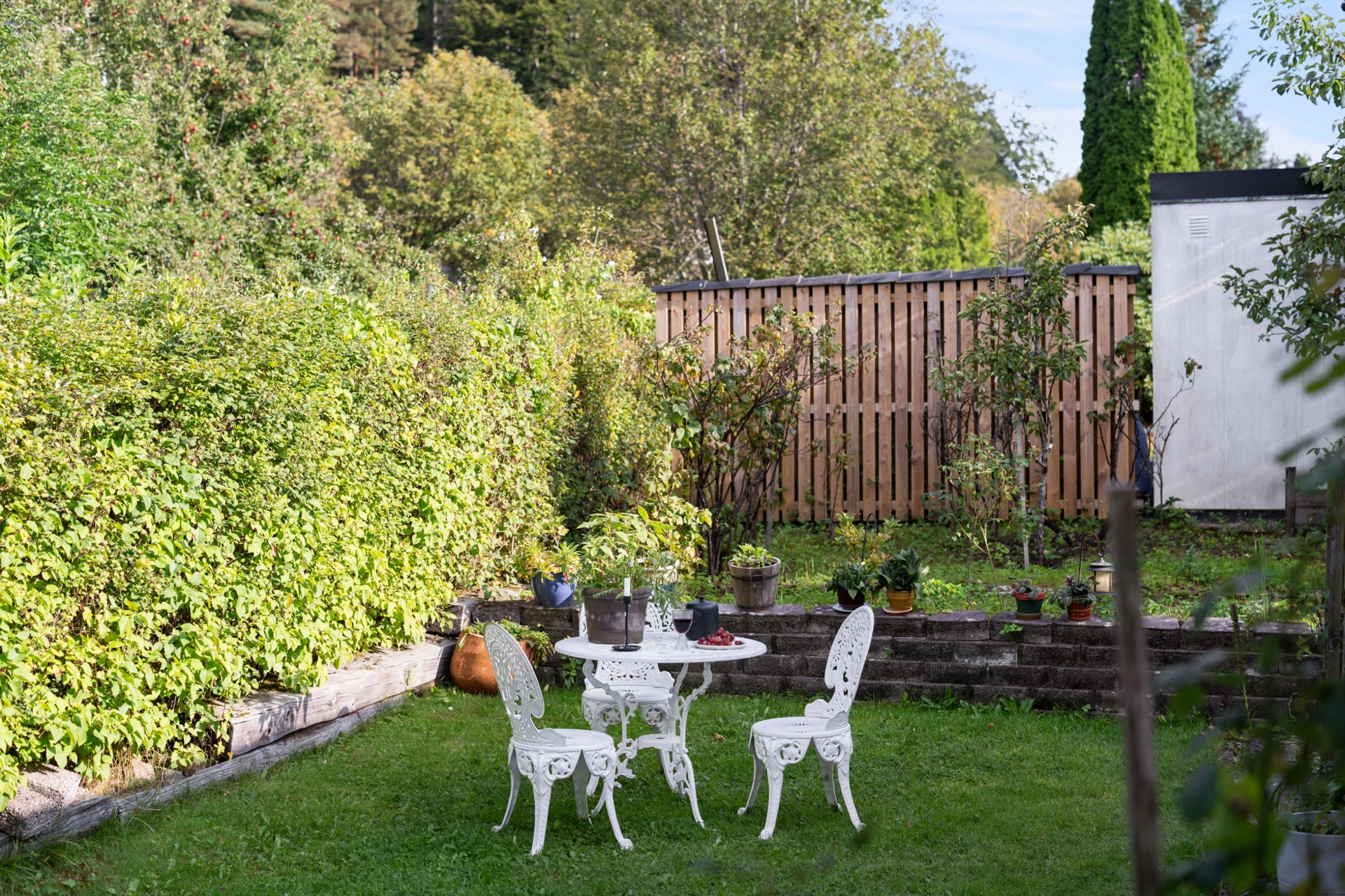 Här finns tvättho med bänkyta, förvaring samt tvättmaskin och torktumlare. Groventré till bostadens uppfart.