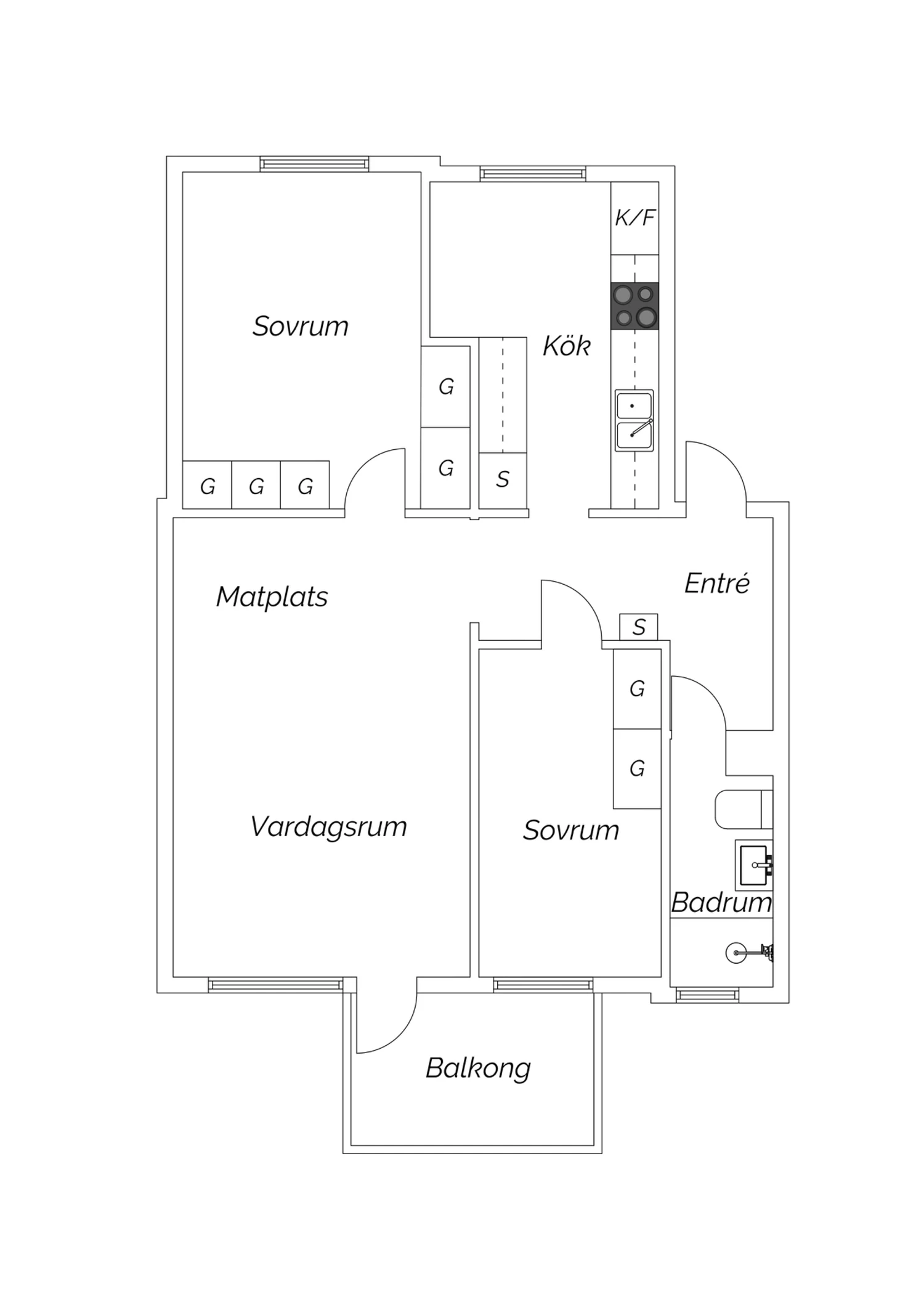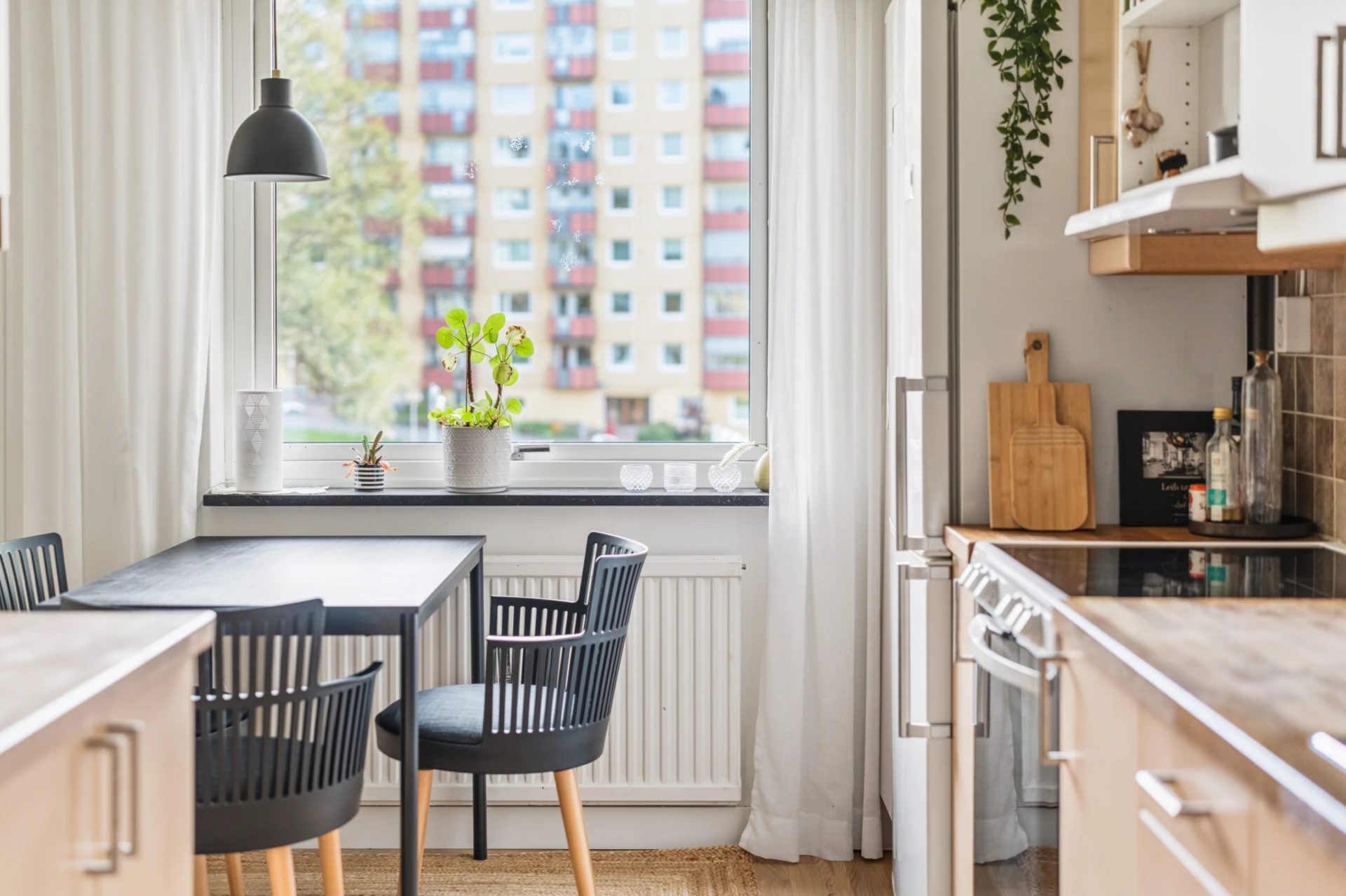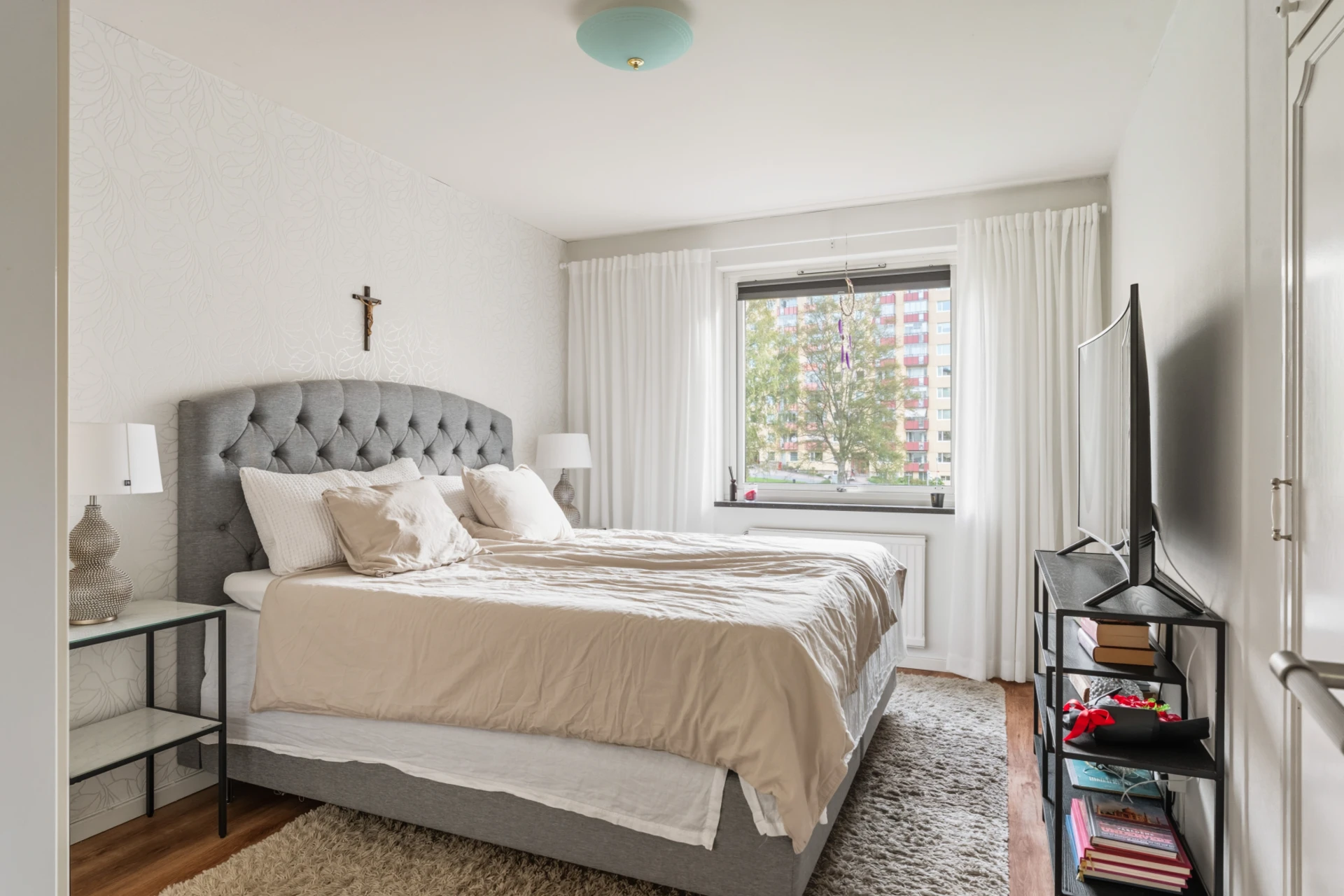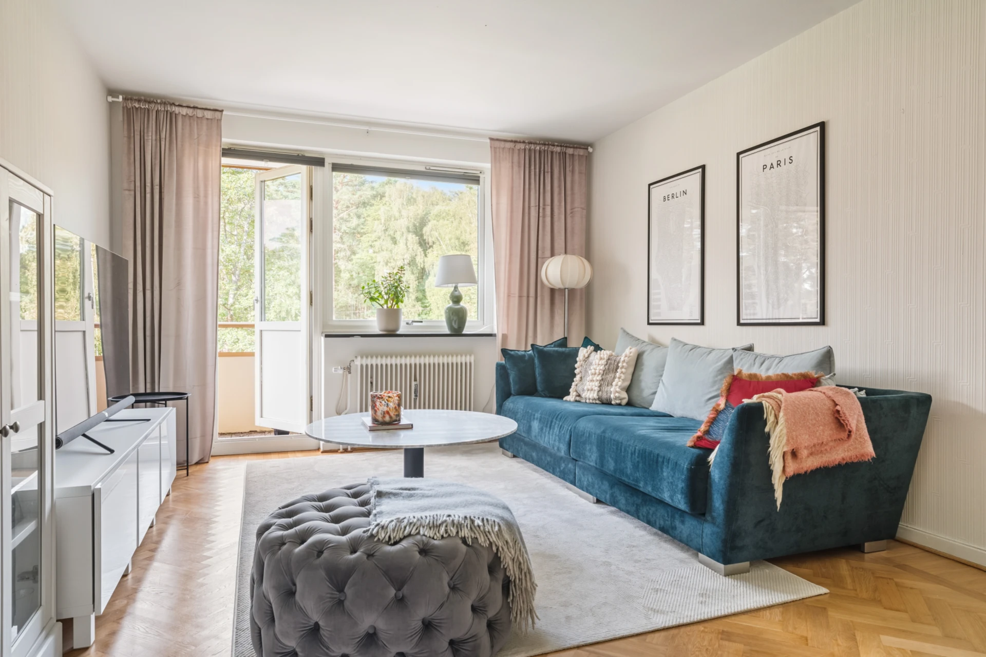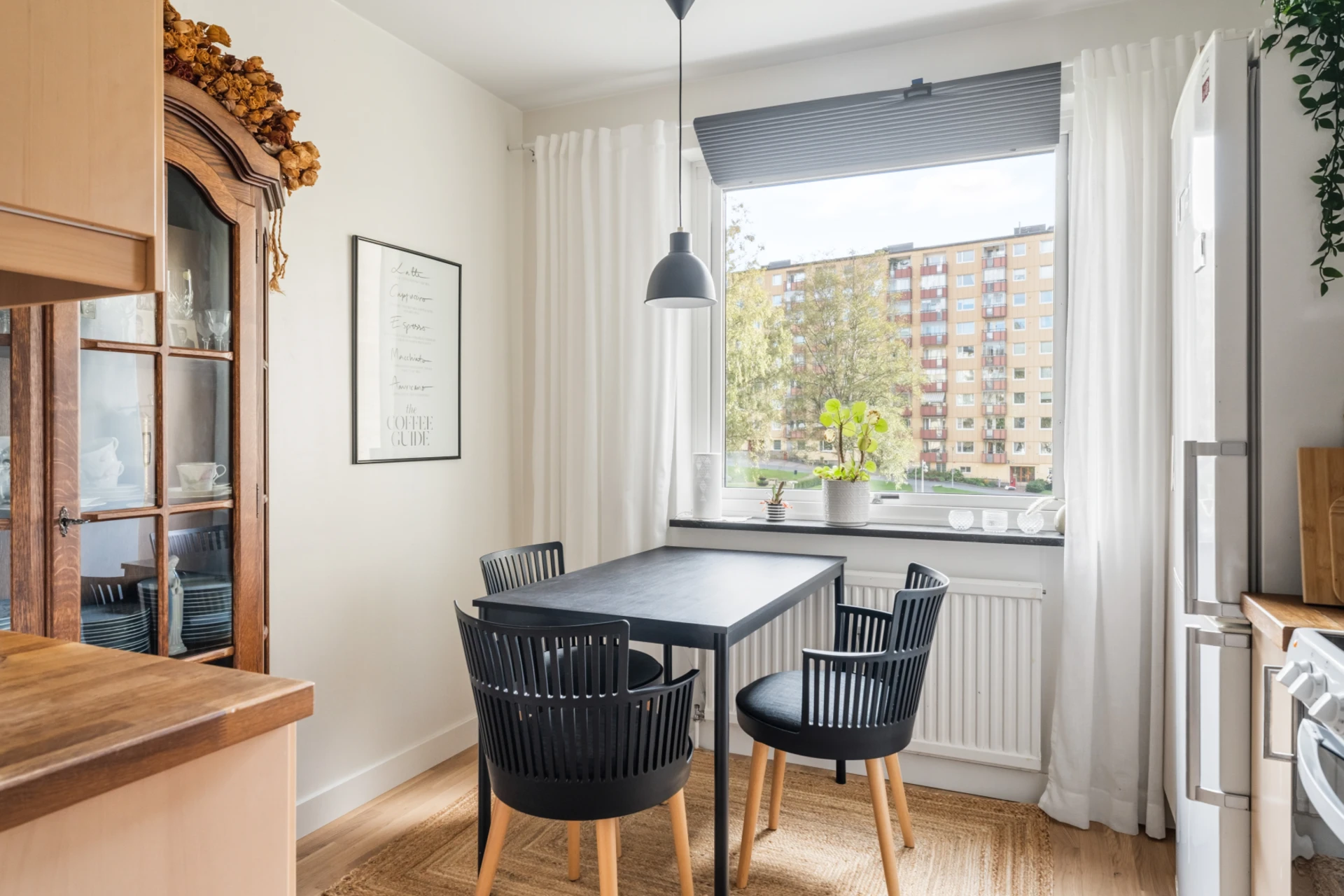 Välkommen hem till en ljus och trivsam bostad där detaljer som fiskbensparkett och en härlig balkong skapar den rätta känslan. I hallen finns klinkergolv och gott om plats för avhängning. Köket har ljus inredning, bra arbetsytor och gott om förvaring – en naturlig plats för matlagning och vardagsliv. Det rymliga vardagsrummet bjuder på vackert golv, generöst ljusinsläpp och plats för både matsalsbord och soffgrupp. Härifrån nås bostadens balkong. Det större sovrummet rymmer dubbelsäng och har tre garderober, medan det mindre fungerar perfekt som barnrum, gästrum eller arbetsrum. Badrummet är helkaklat och utrustat med dusch, kommod, spegelskåp och handdukstork.