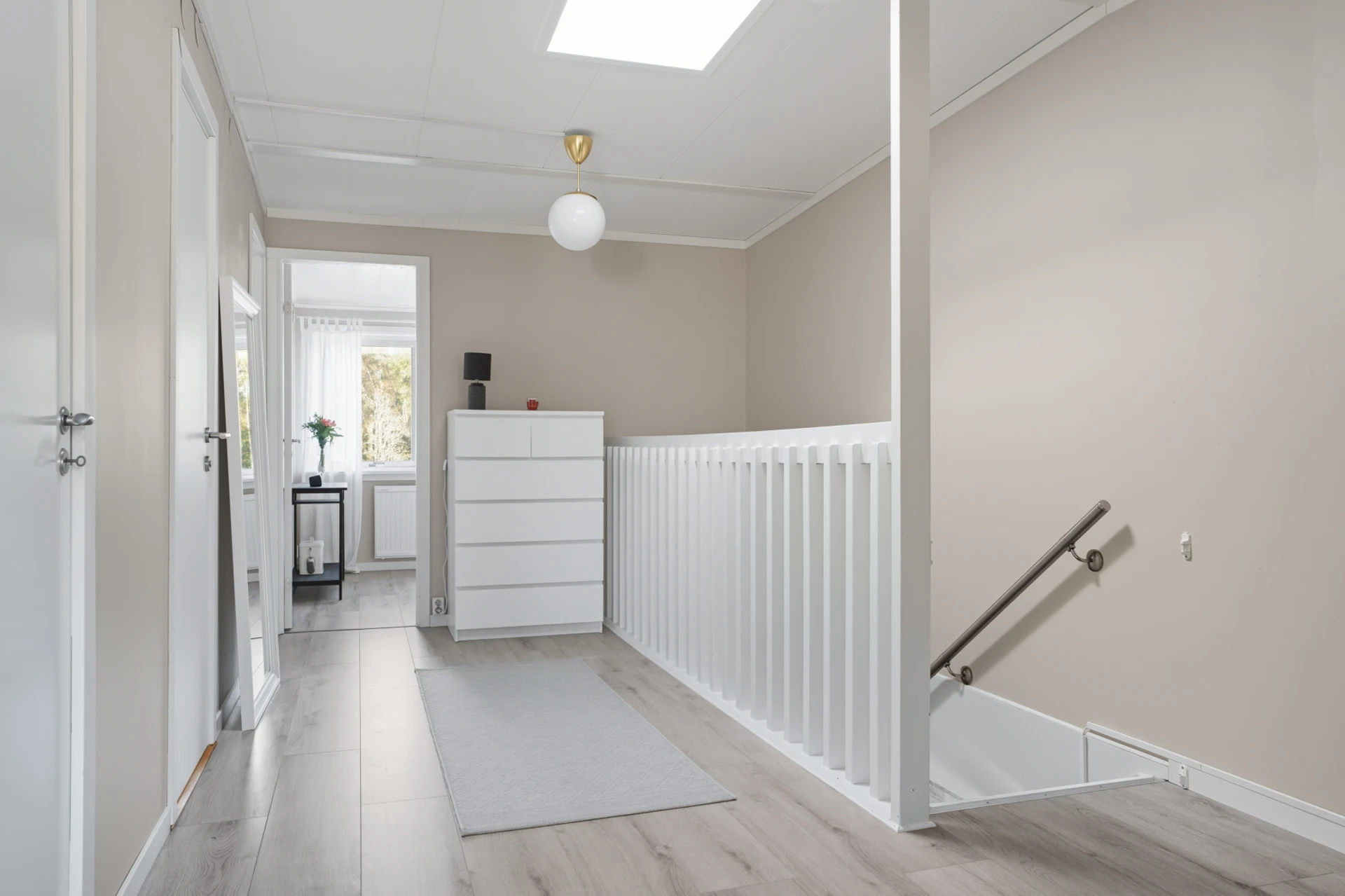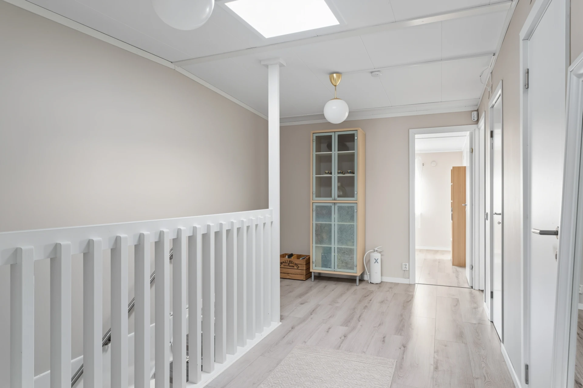 Från den övre hallen nås en klädkammare som rymmer mycket förvaring.
