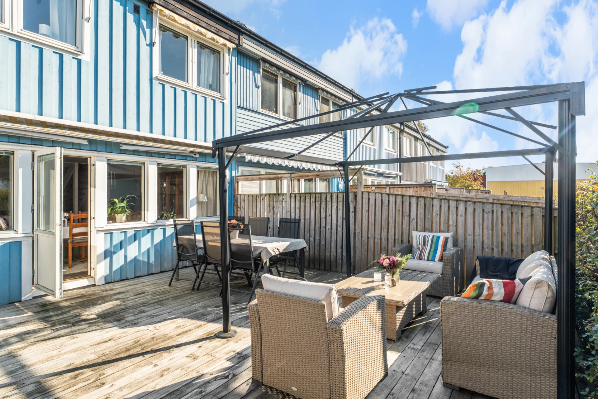 Välkomna till ett charmigt och välplanerat radhus i det populära och familjevänliga området kring Grinnekullegatan! Här får ni ett ombonat hem med två altandäck i olika väderstreck. Huset är i gott skick med stilrena ytskikt och genomtänkta materialval. Här finns helkaklade badrum på båda våningsplan, ett rymligt vardagsrum samt ett välutrustat kök som bjuder in till både vardagsmatlagning och sociala middagar. På övre plan hittar ni alla sovrum samlade som ger plats åt hela familjen samt en praktisk klädkammare med extra förvaringsutrymme.