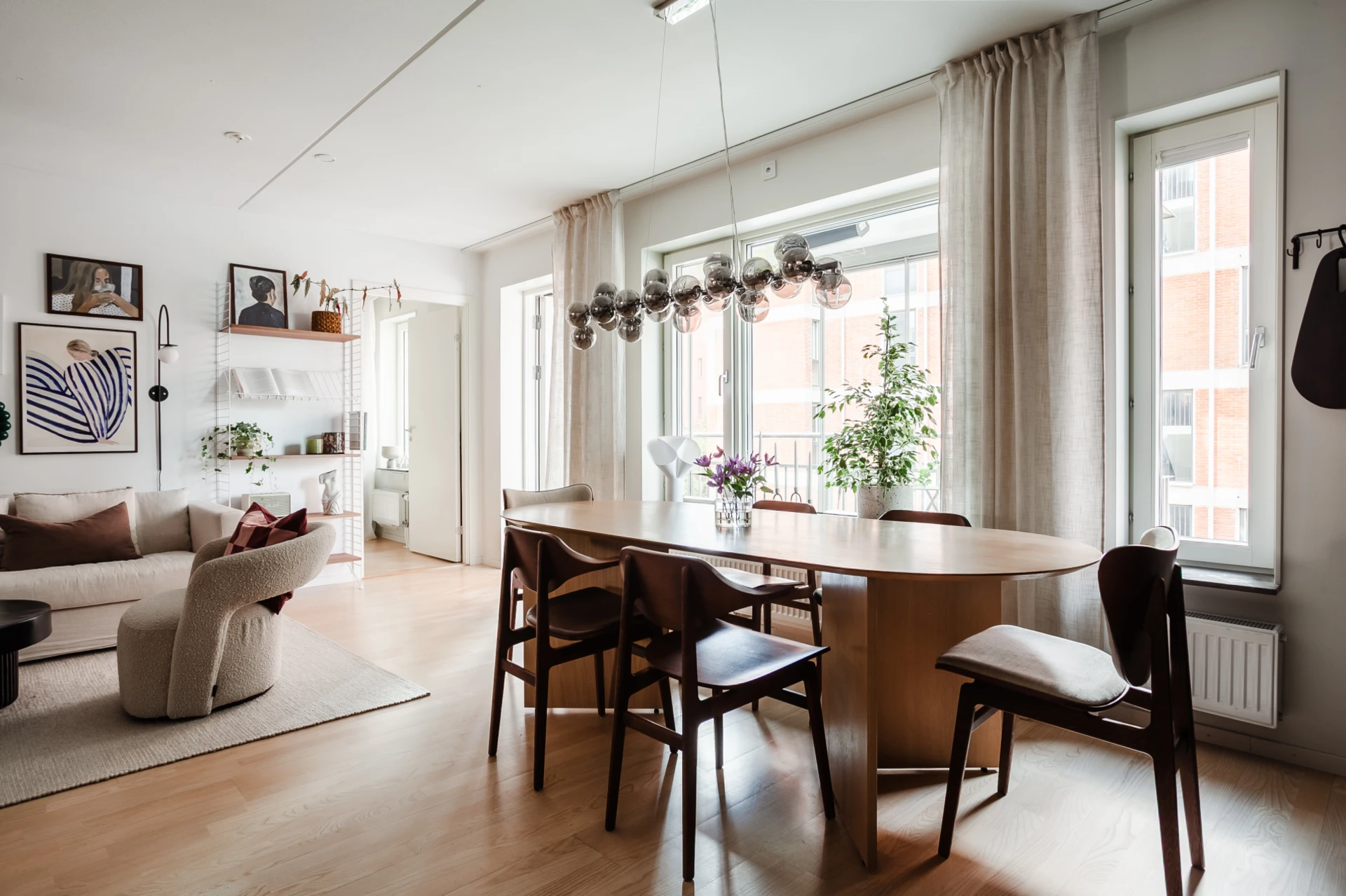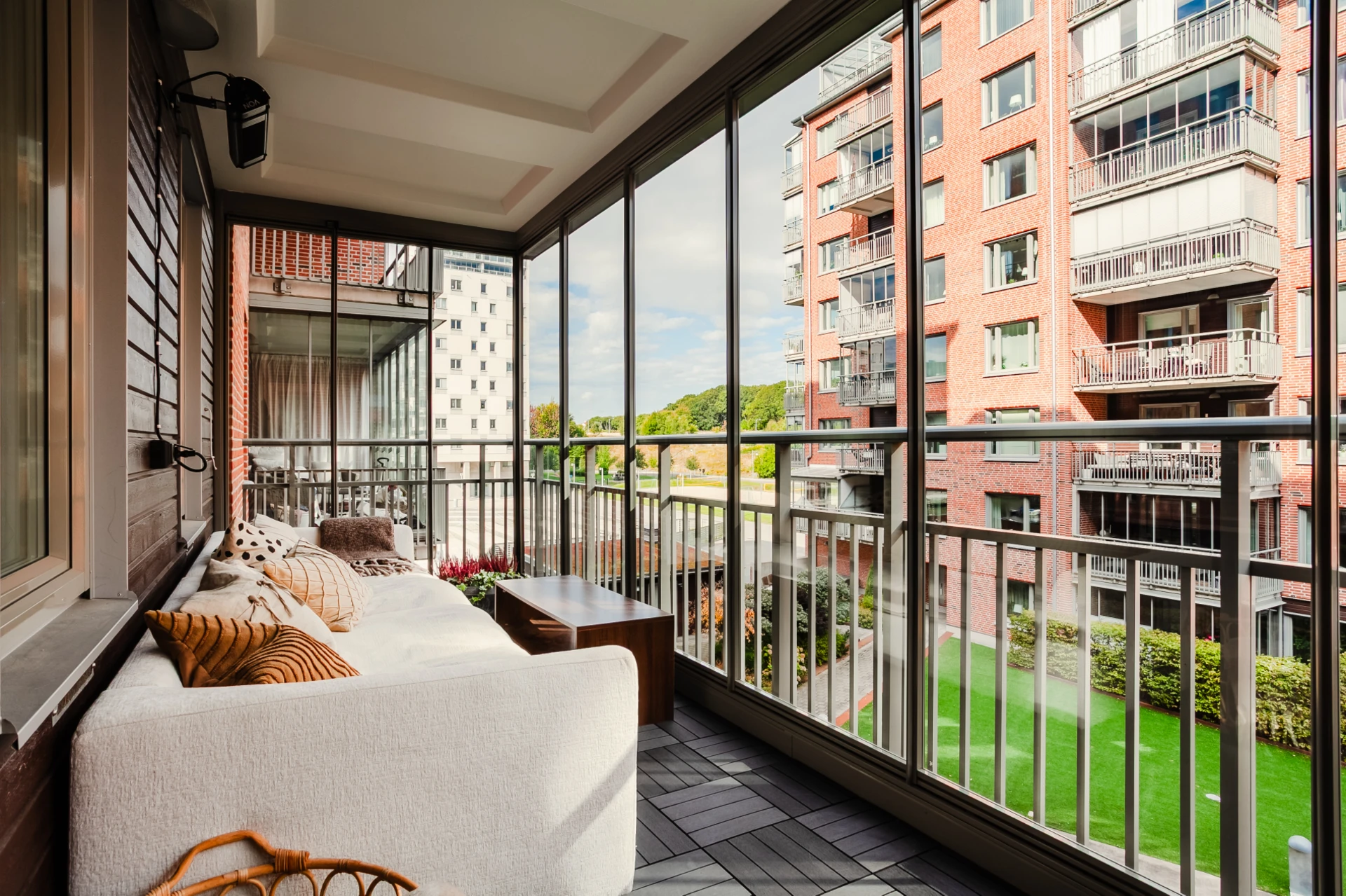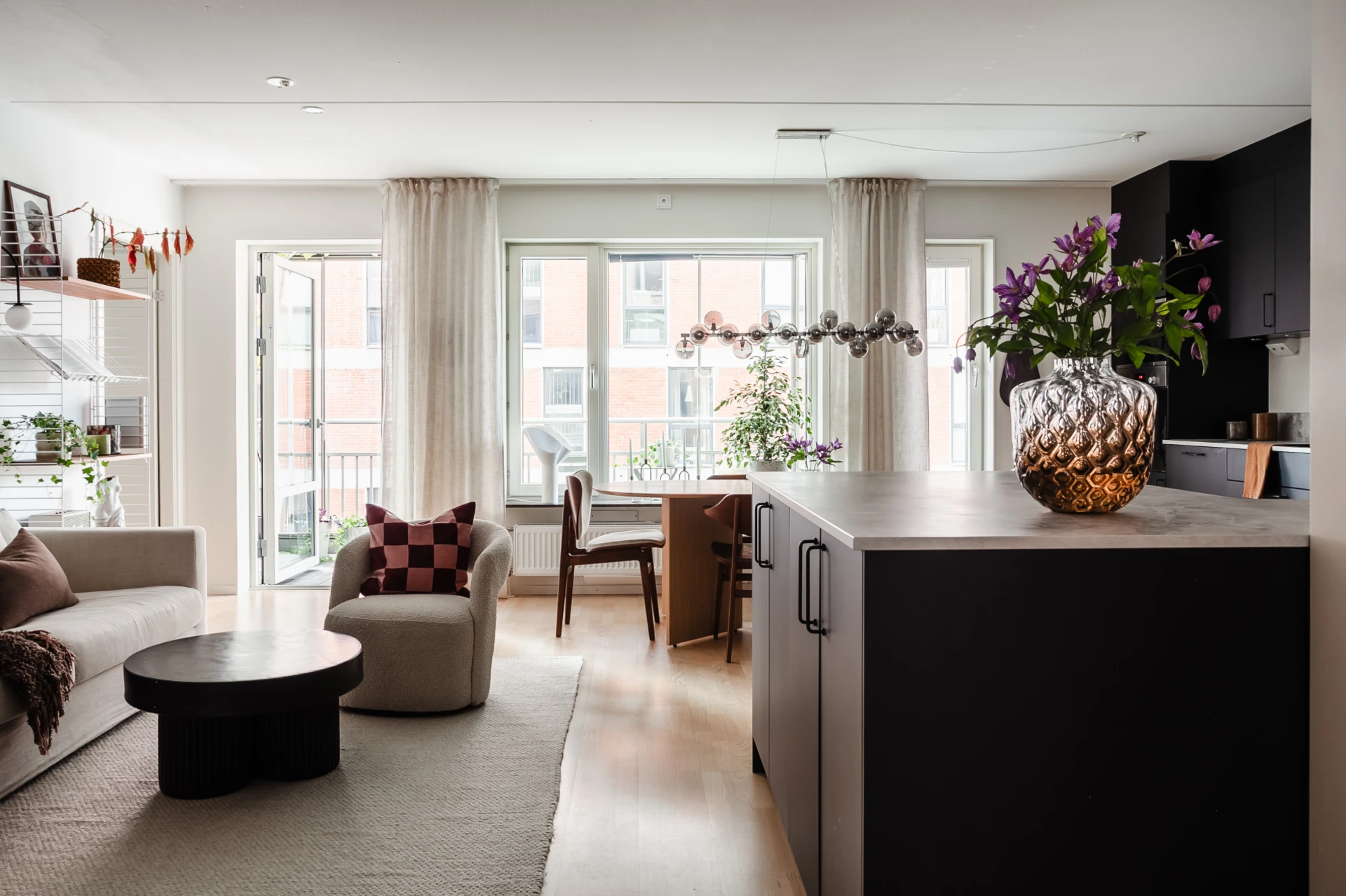 Varmt välkommen till Ostindiefararen 17! Här möts en genomtänkt planlösning och generösa sociala ytor runt det stilrena köket från Kvik. Köket blir hemmets naturliga samlingspunkt med gott om arbetsytor, full utrustning och plats för långa middagar i gott sällskap. Från kök och vardagsrum öppnar hemmet upp mot en av två stora inglasade balkonger som förlänger säsongerna. De tre sovrummen är ljusa och välplanerade, med plats för både vila och arbete. Det största har egen klädkammare och utgång till den andra balkongen – en privat oas att njuta av året runt. Badrummet är smakfullt inrett med golvvärme, badkar och separat tvättdel som gör vardagen smidigare.