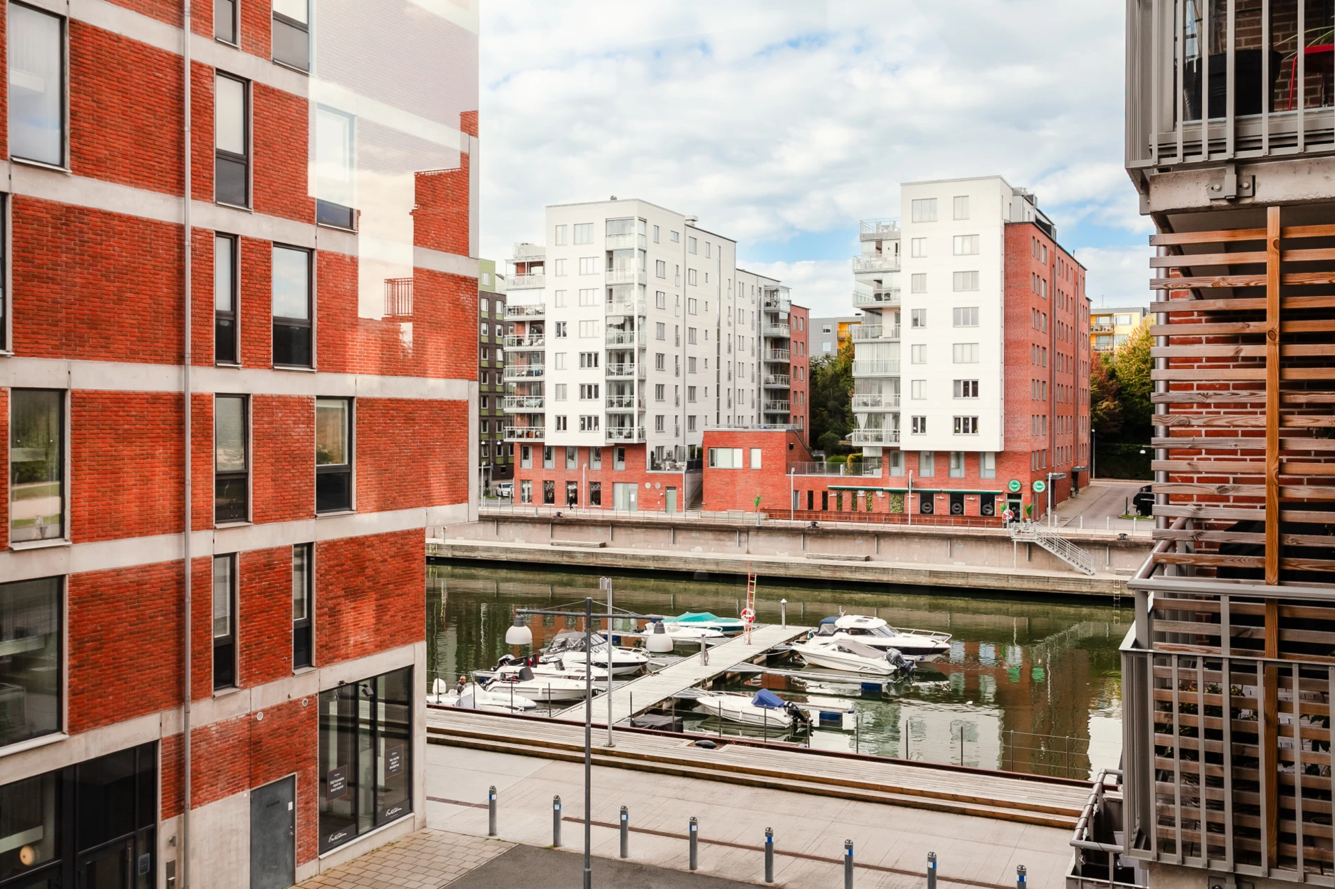 Alldeles utanför porten finns Eriksbergs populära trädäck, perfekt för soliga dagar, populära restauranger, caféer, närlivsbutik, gym och den mysiga kajpromenaden. I området finns flertalet utomhusgym, promenadslingor i Färjenäsparken och beachvolleybollplan. Garage finns i huset med direktansluten hiss. Med båt eller buss tar ni er in till centrum på bara ca 20 minuter.