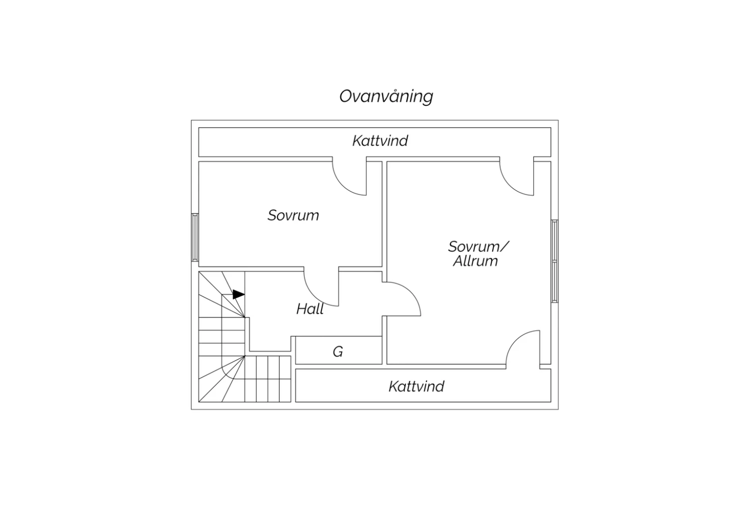 Via en vacker trappa i trä nås ovanplan med en generös hall med förvaring samt två sovrum. Det ena rummet är ett mycket generöst till sin yta och kan enkelt bli fler rum om behovet skulle finnas. Bra med förvaring i kattvindarna på ömse sida.