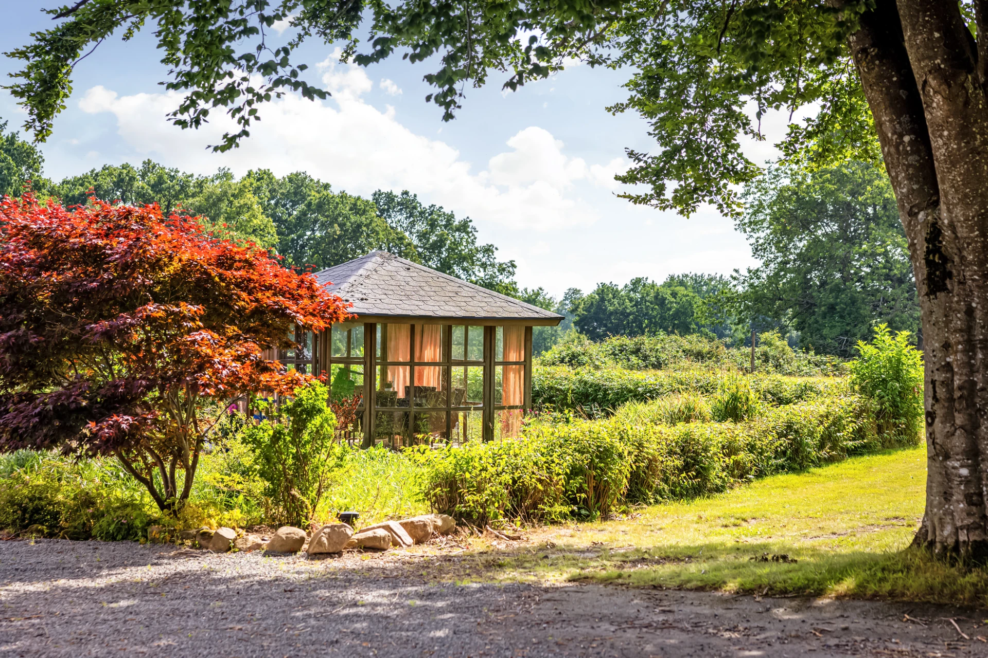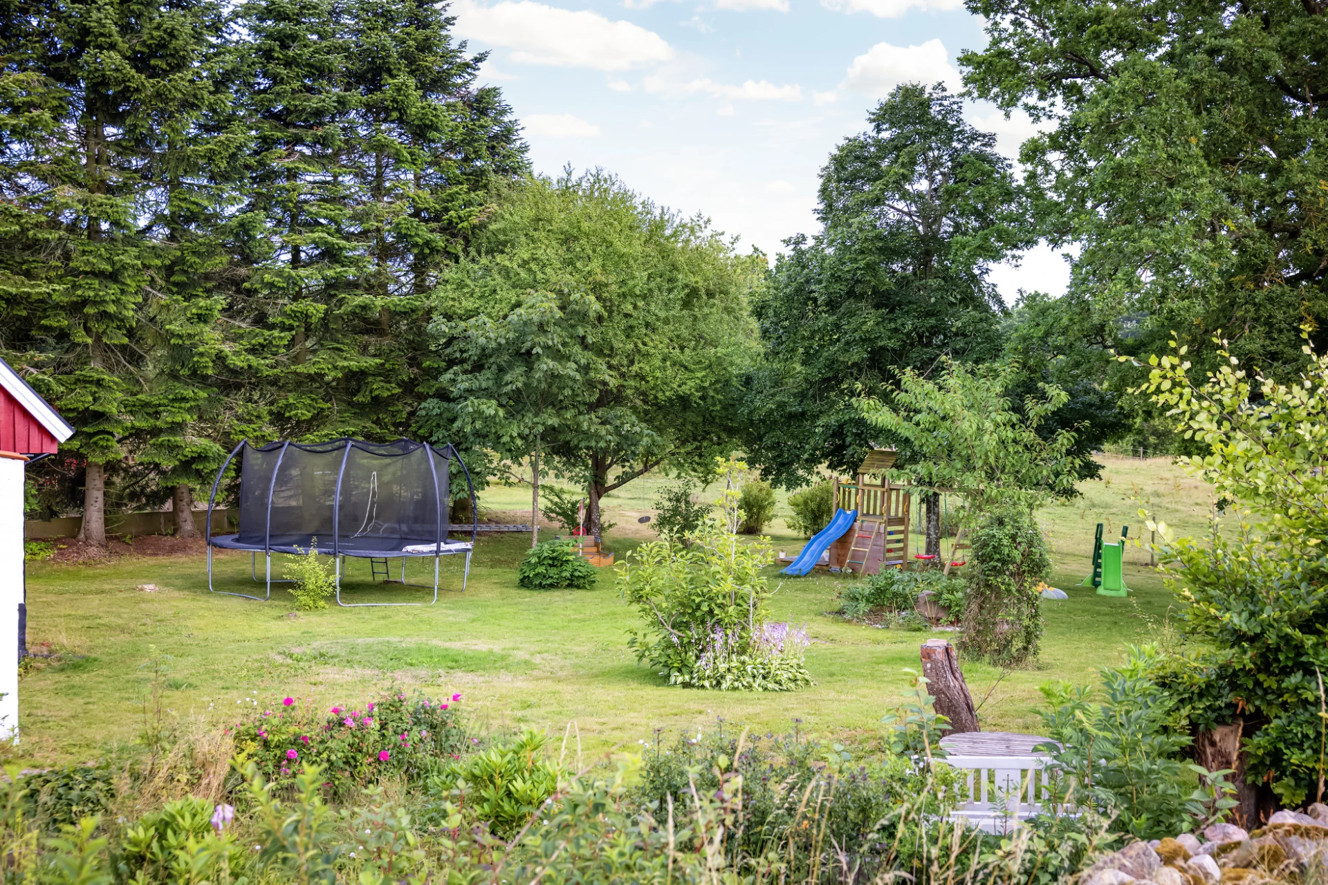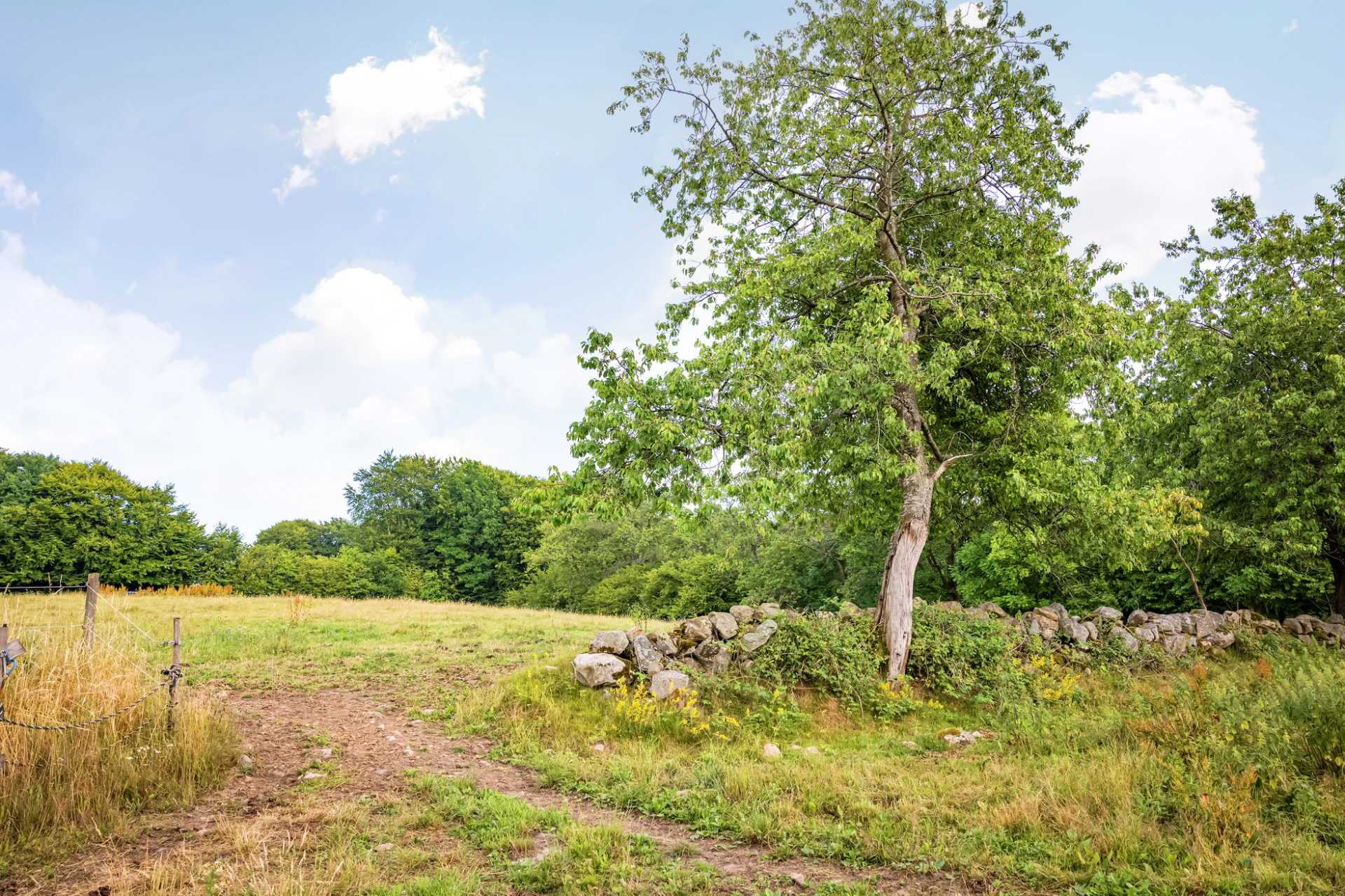 Med sina ca 9 hektar omfamnar gården både öppna betesmarker och stillsam bokskog. Nio välindelade hagar erbjuder fantastiska möjligheter till hästhållning, medan en porlande bäck slingrar sig genom landskapet och mynnar ut i en spegelblank sjö vid fastighetens kant – en plats för ro i solnedgången.