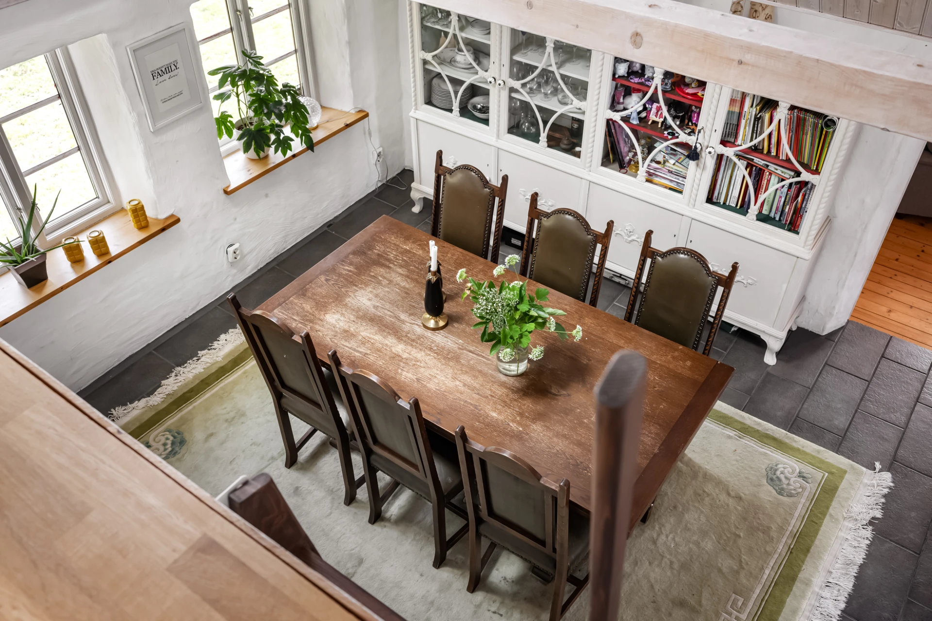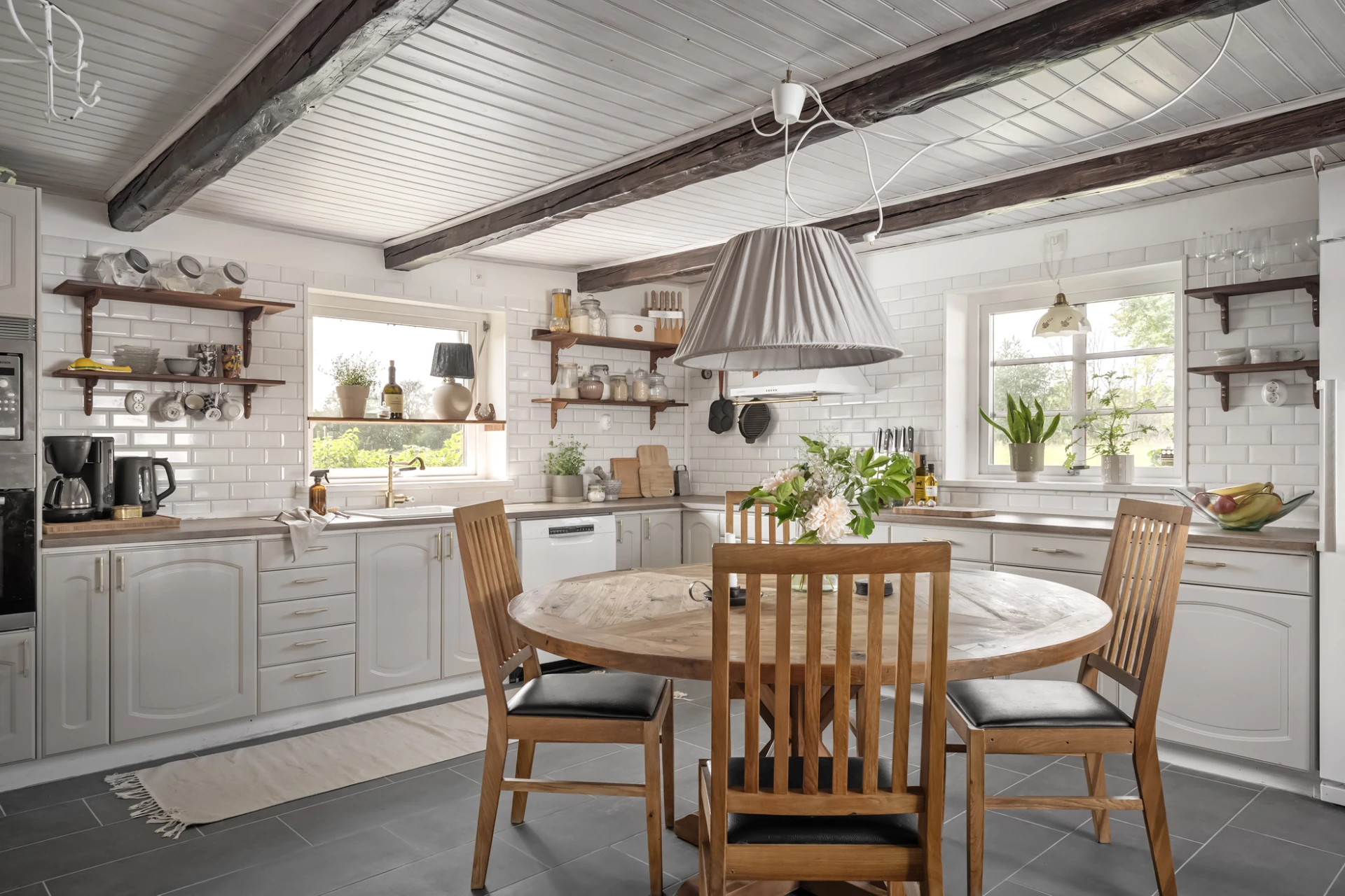 Läcker matsal öppet i nock. Gamla bakugnen finns kvar här som ett vackert minne.