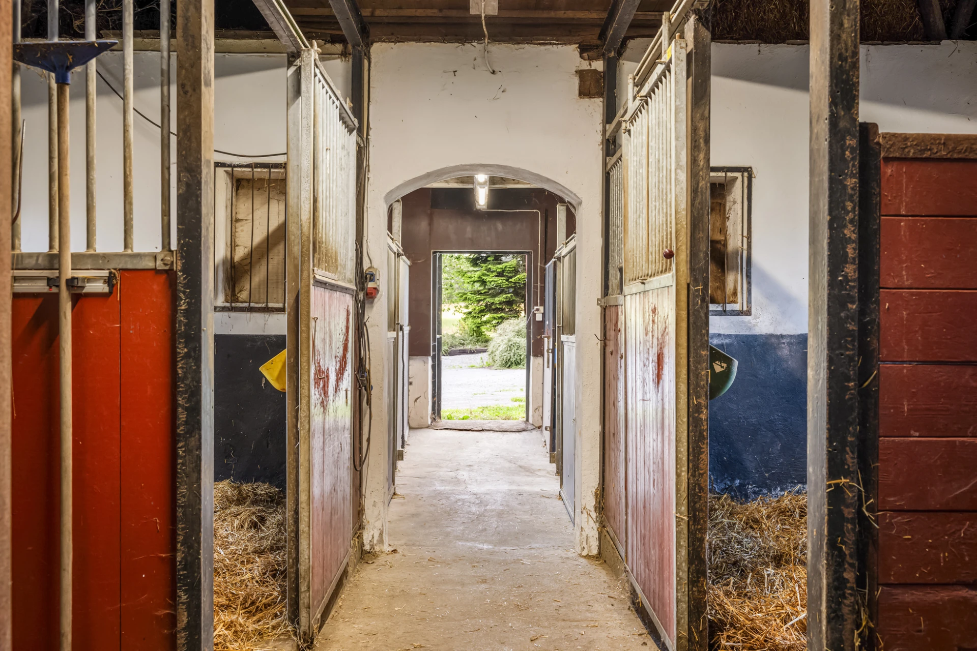 Häststall med sex hästboxar varav en är dubbelbox. Takhöjden är ca 2.80. Sadelkammare. Vidbyggd lösdrift om ca 33 kvm.