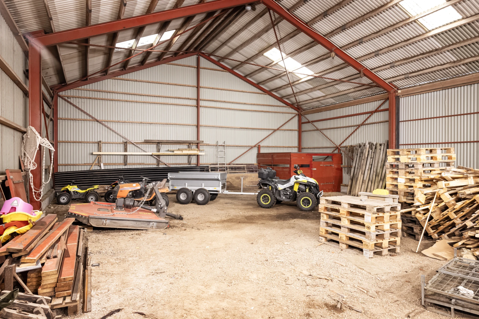 Gården är fullt utrustad för hästverksamhet med ett stall som rymmer sex boxar, varav en dubbelbox, samt en praktisk lösdrift. På fastigheten finns även en maskinhall med fri höjd och en butikslokal med vatten, avlopp, el och uppvärmning – perfekt för salong, gårdsförsäljning, galleri eller showroom.