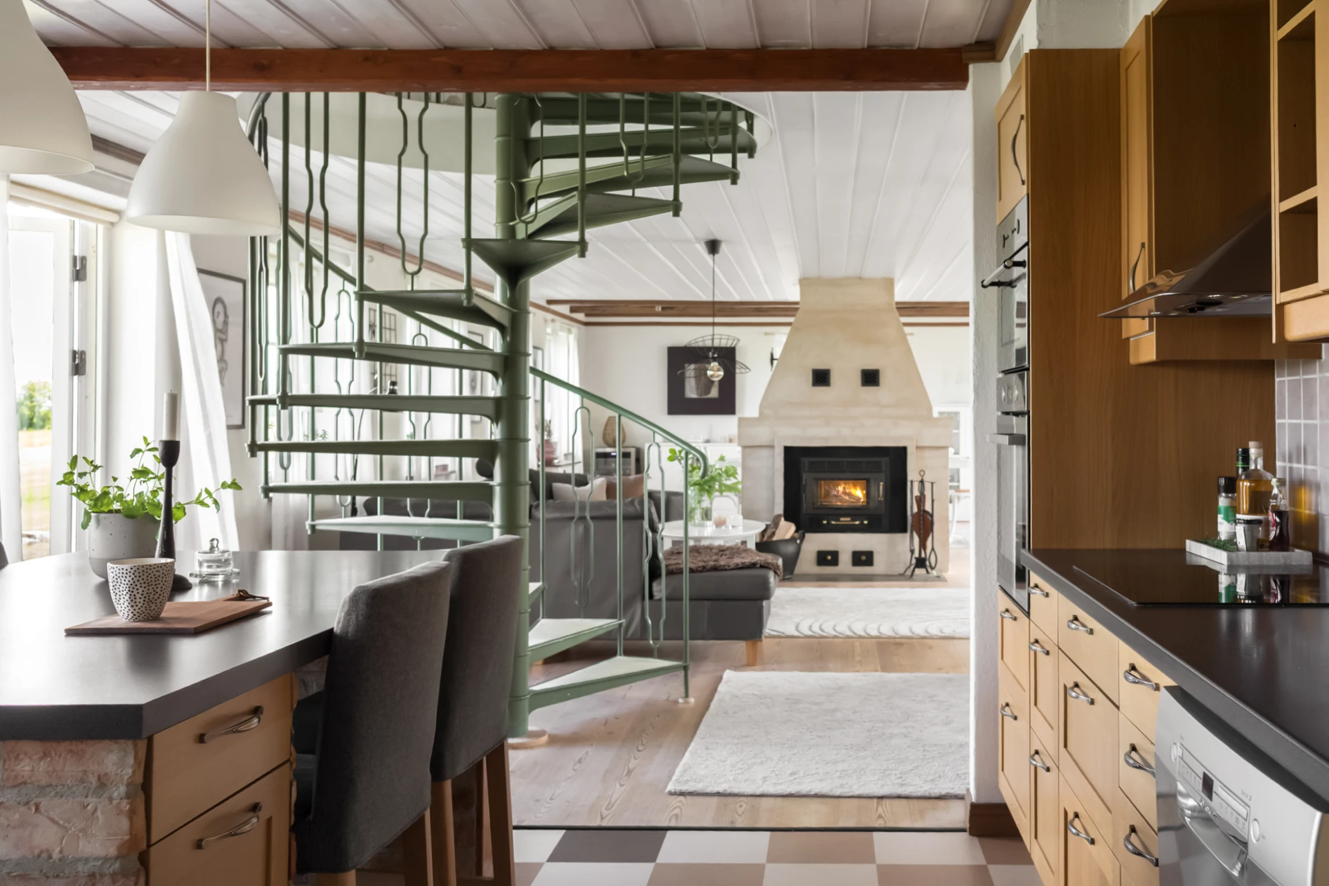 Hemmets hjärta är det underbara köket – öppet, socialt och precis så som många drömmer om. Köket totalrenoverades 2013 och kombinerar stilren design med funktionalitet. Här finns gott om skåpsförvaring och generösa arbetsytor. Köksön blir en självklar samlingspunkt för både vardag och fest, och härifrån bjuds en utsikt som gör matlagningen till en njutning – över de egna ägorna och mot havets glimrande horisont.