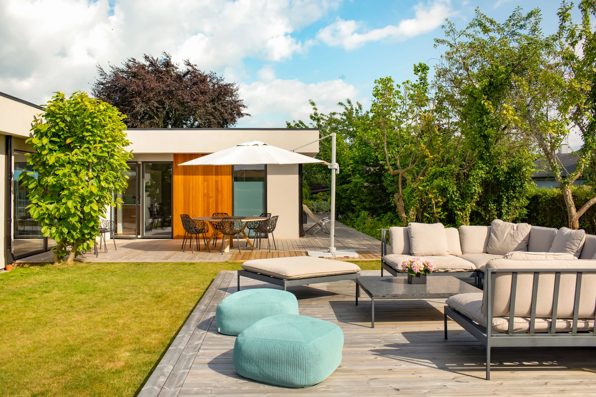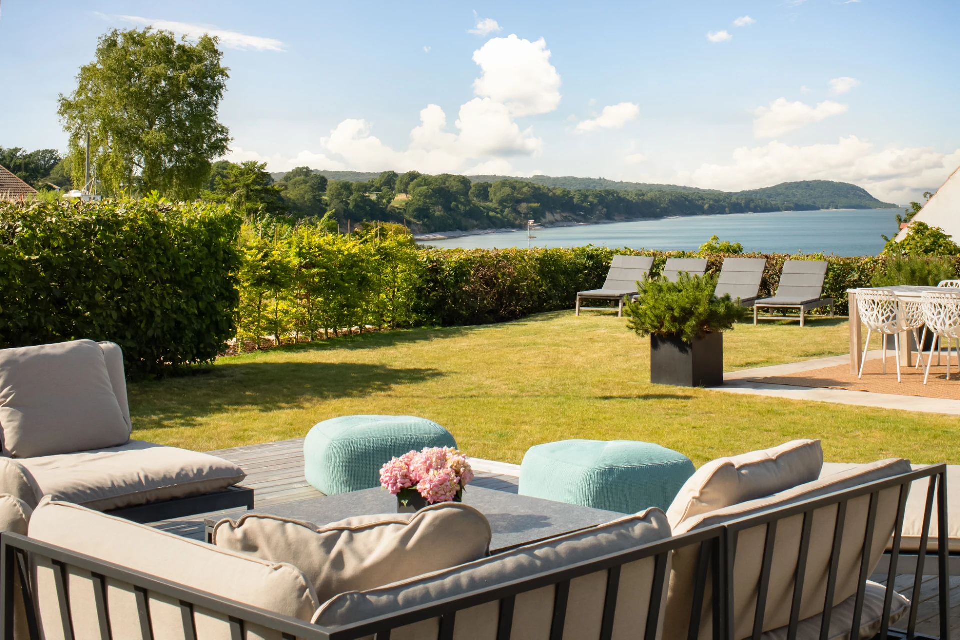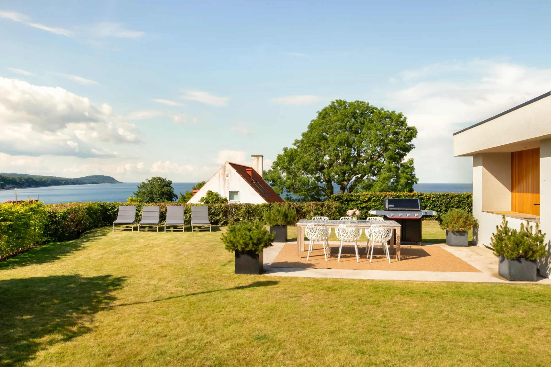 Den vackra utemiljön är noggrant planerad för att smälta in i den unika naturen runtomkring. Här samsas lummig växtlighet med nyanlagda trädäck i både söder- och västerläge, vilket ger många tillfällen att njuta av sol och havsutsikt. Uteköket gör sommarkvällarna till en självklar höjdpunkt.