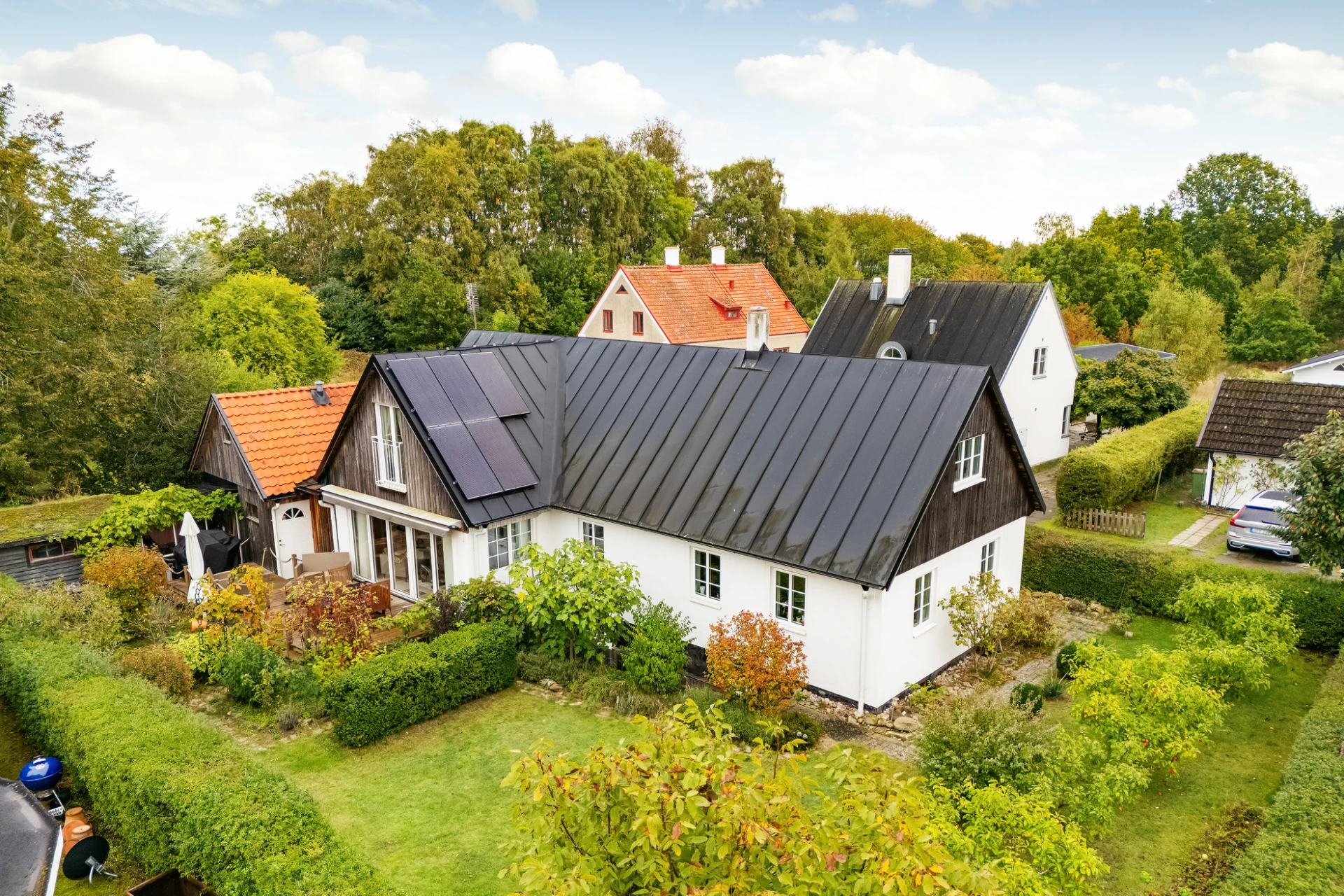 Huset är en 1½-plansvilla med inredd källare, där gedigna material möter modern komfort. Den klassiska skånelängans karaktär har tolkats i en nutida stil med putsad fasad, svart plåttak med solceller - bergvärme som uppvärmning, vackra spröjsade fönster och tidlös symmetri.