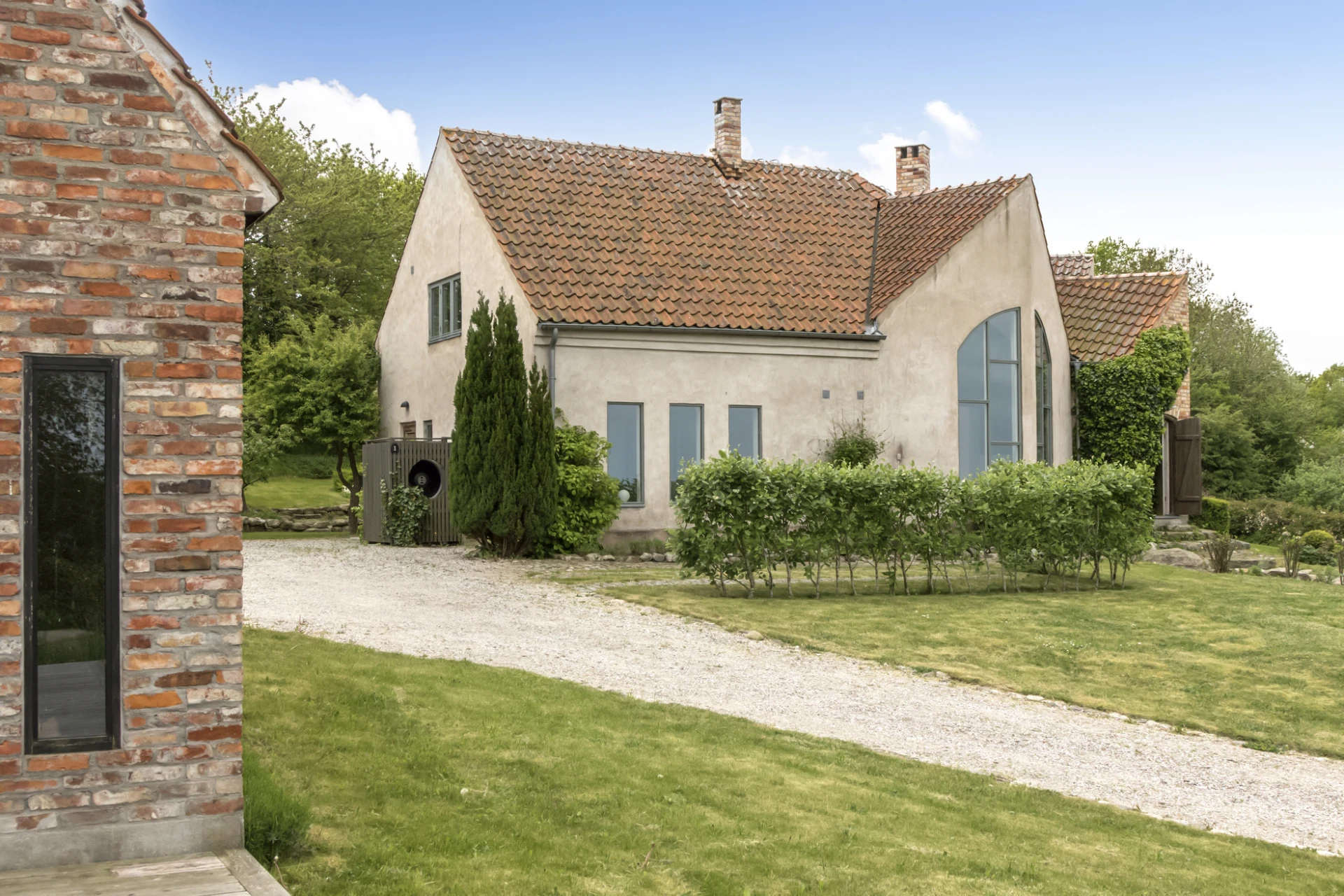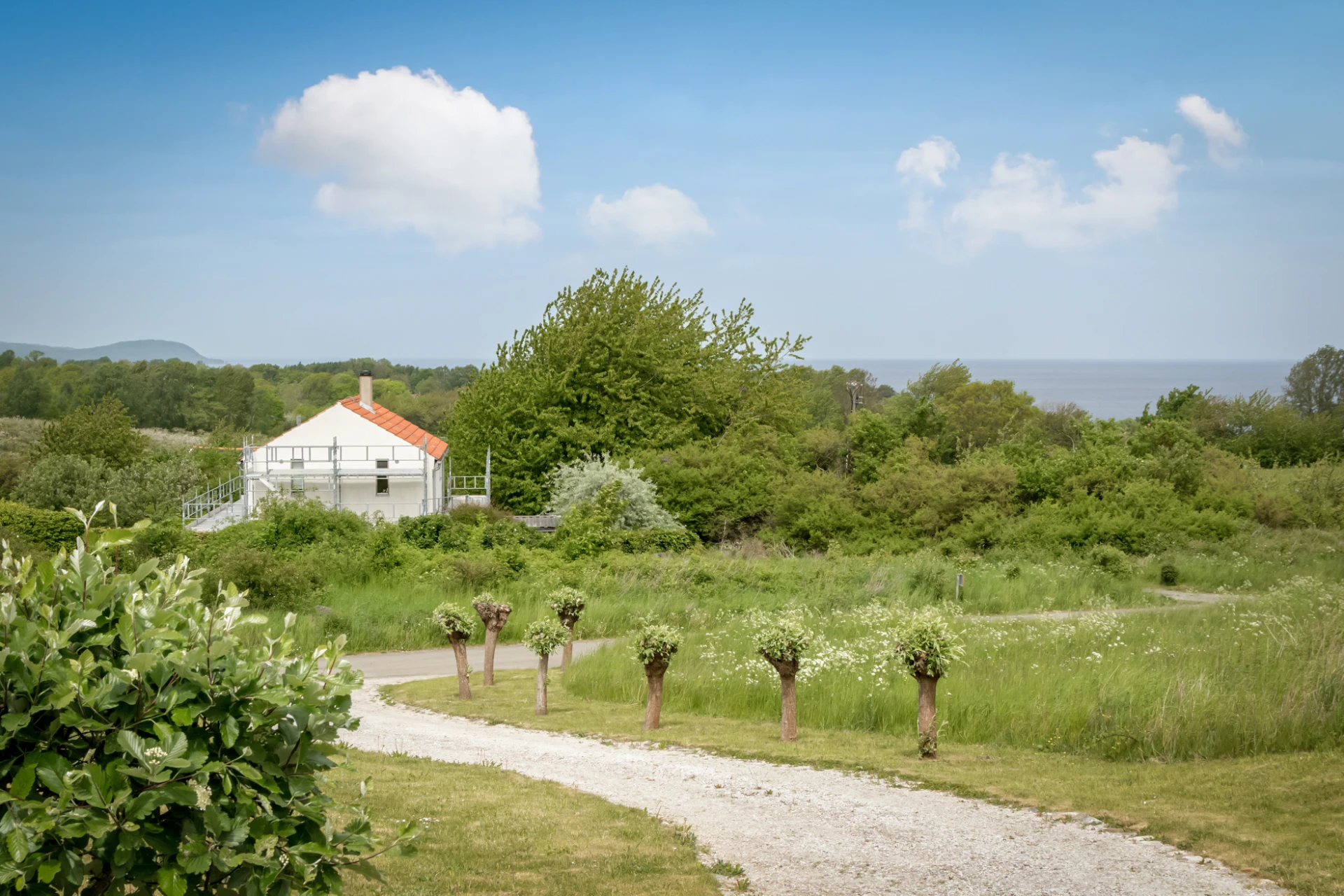 Huset ligger uppe på kullarna strax ovanför Baskemölla fiskeläge med en fantastisk utsikt över havet och det böljande landskapet. Sannolikt ett av Österlens vackraste lägen. Fasaden är kalkputsad och taket av enkupigt tegel. Skorstenar av handslaget tegel. Alla plåtarbeten är utförda i zink och alla fönster är målade med linoljefärg. Huset har stora öppna ytor och är delvis öppet upp i nock vilket ger en härlig rymd. Det finns två stora eldstäder och ett helt fantastiskt plankgolv i massiv ek. Väggarna invändigt är putsade och målade i ljus pärlgrå nyans. En vacker trappa i tegel och puts och med svart smidesräcke leder upp till den mer ”privata” ovanvåningen.