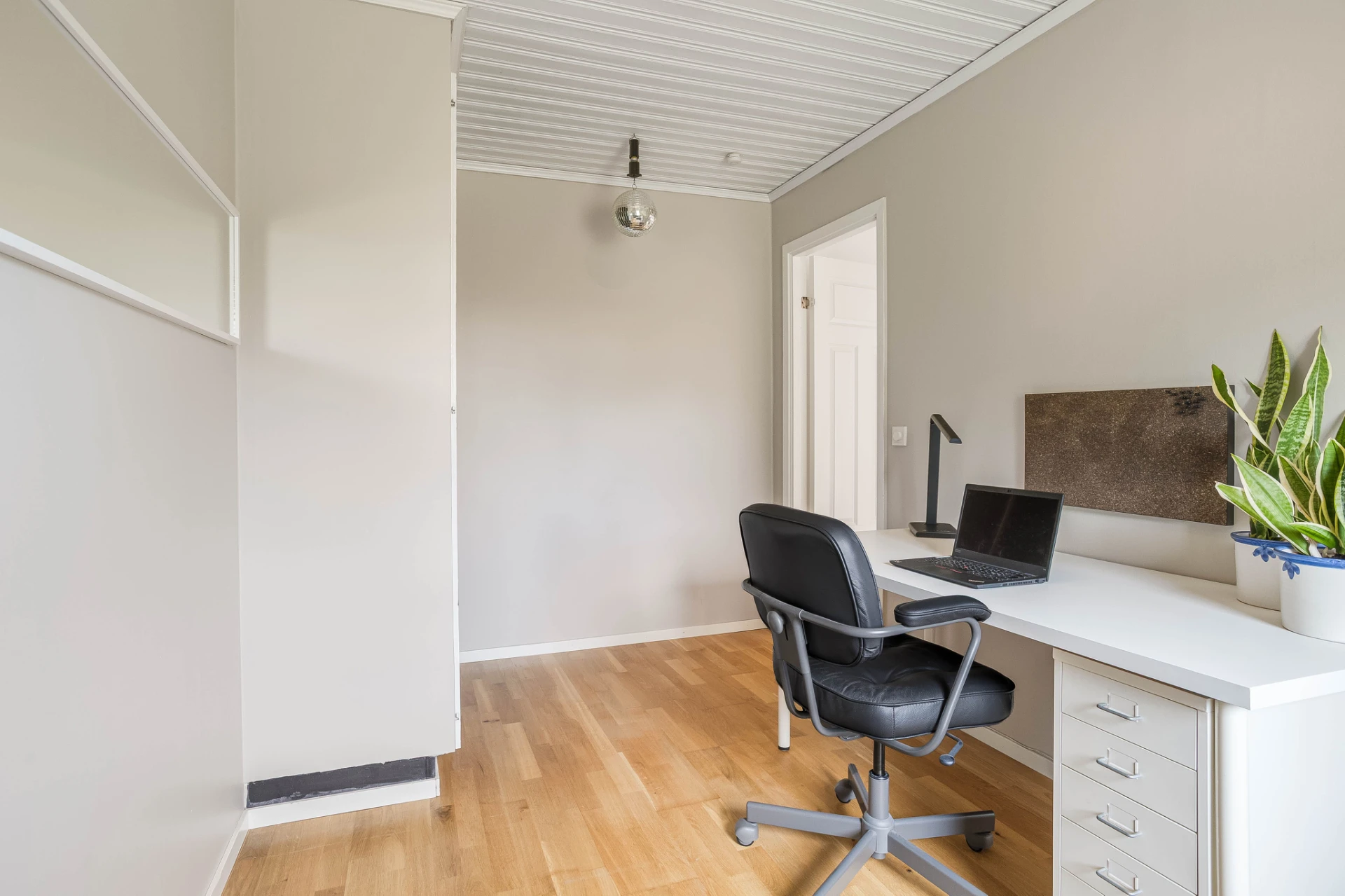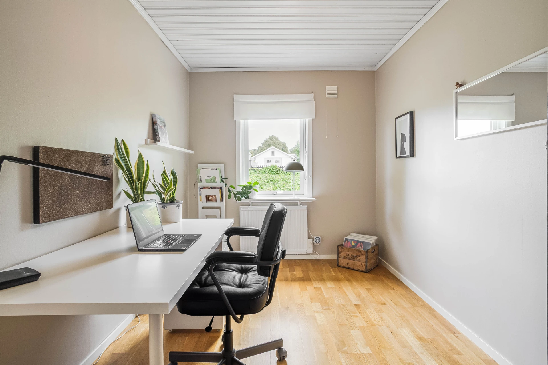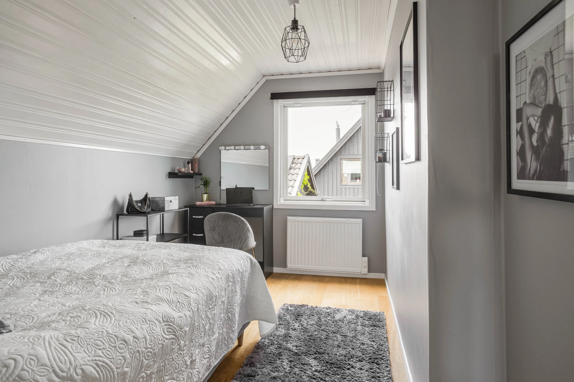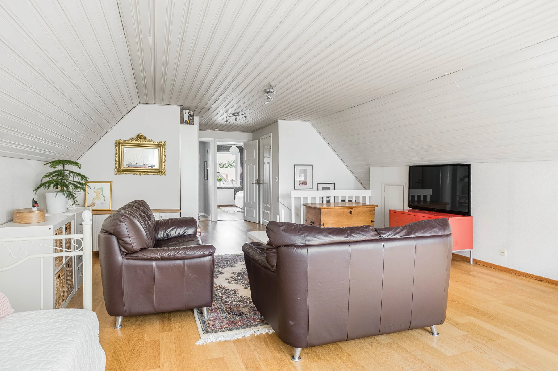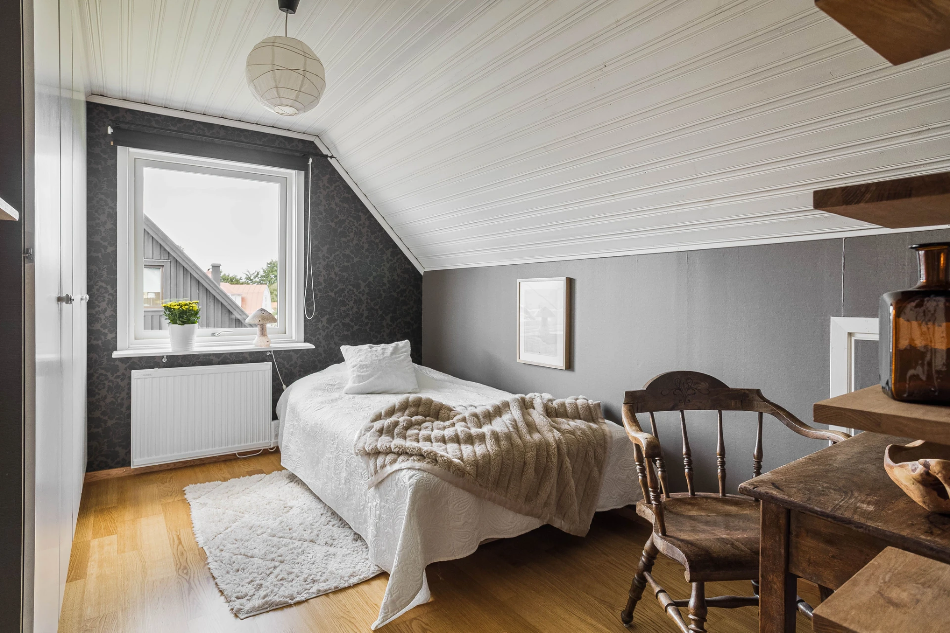 Luftigt allrum med stort fönsterparti som ger fint ljusinsläpp och en trevlig rymd. Rummet kan med fördel delas av om behovet av ett femte sovrum finns.