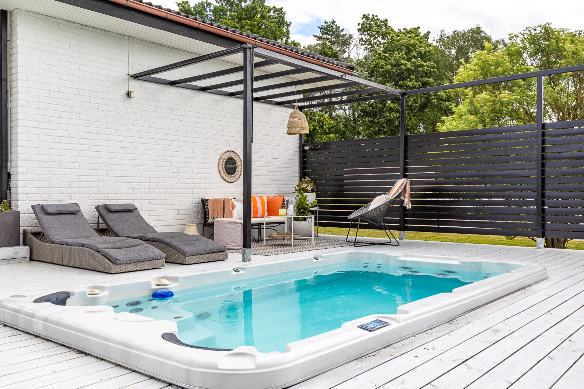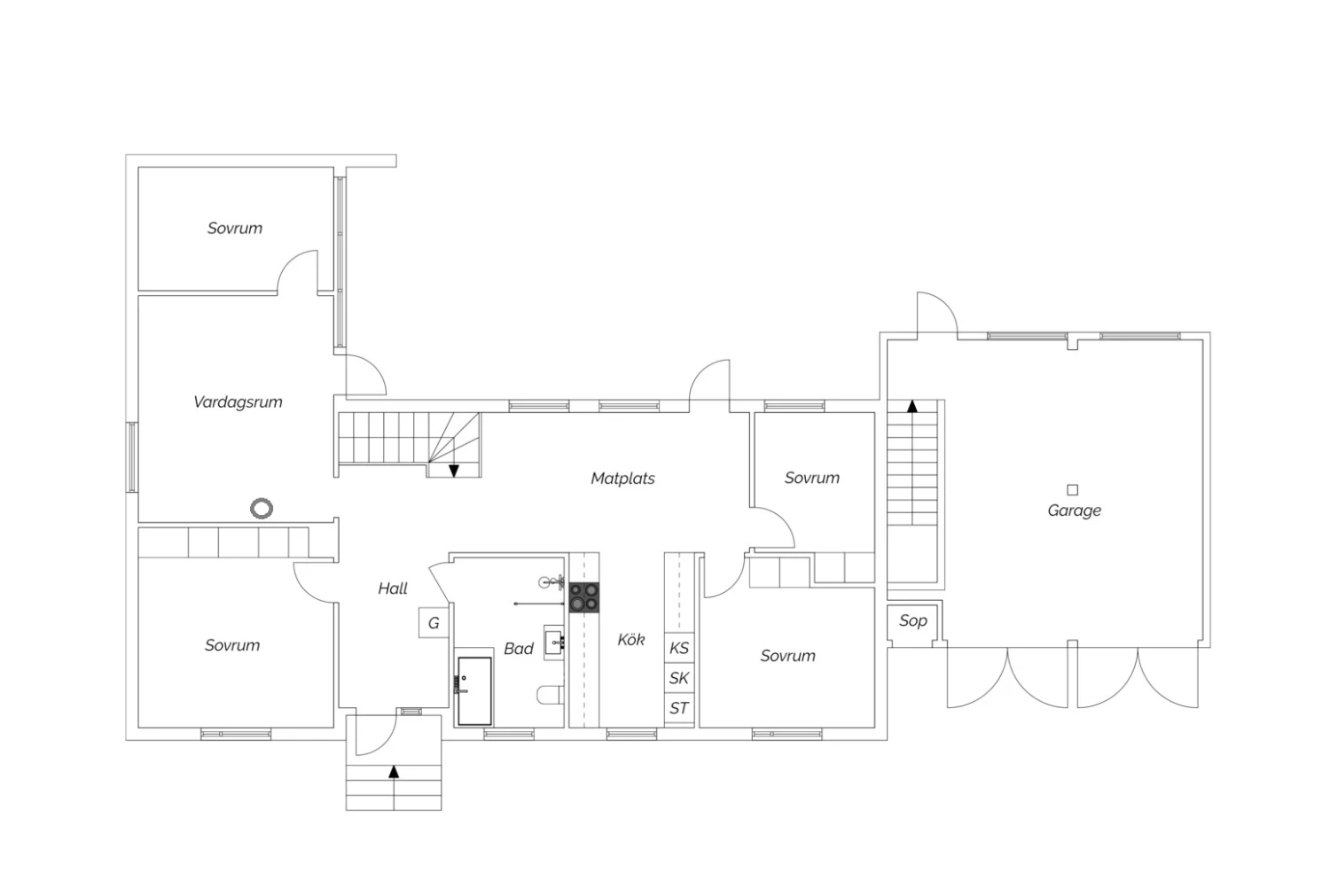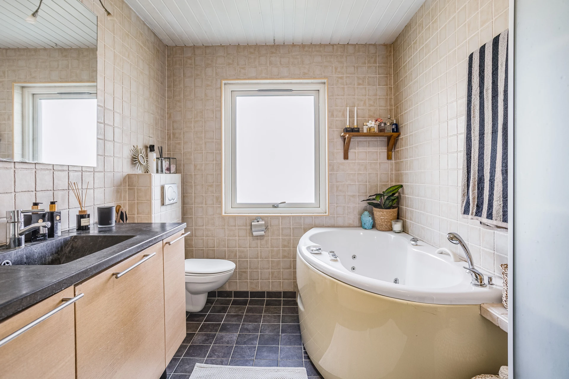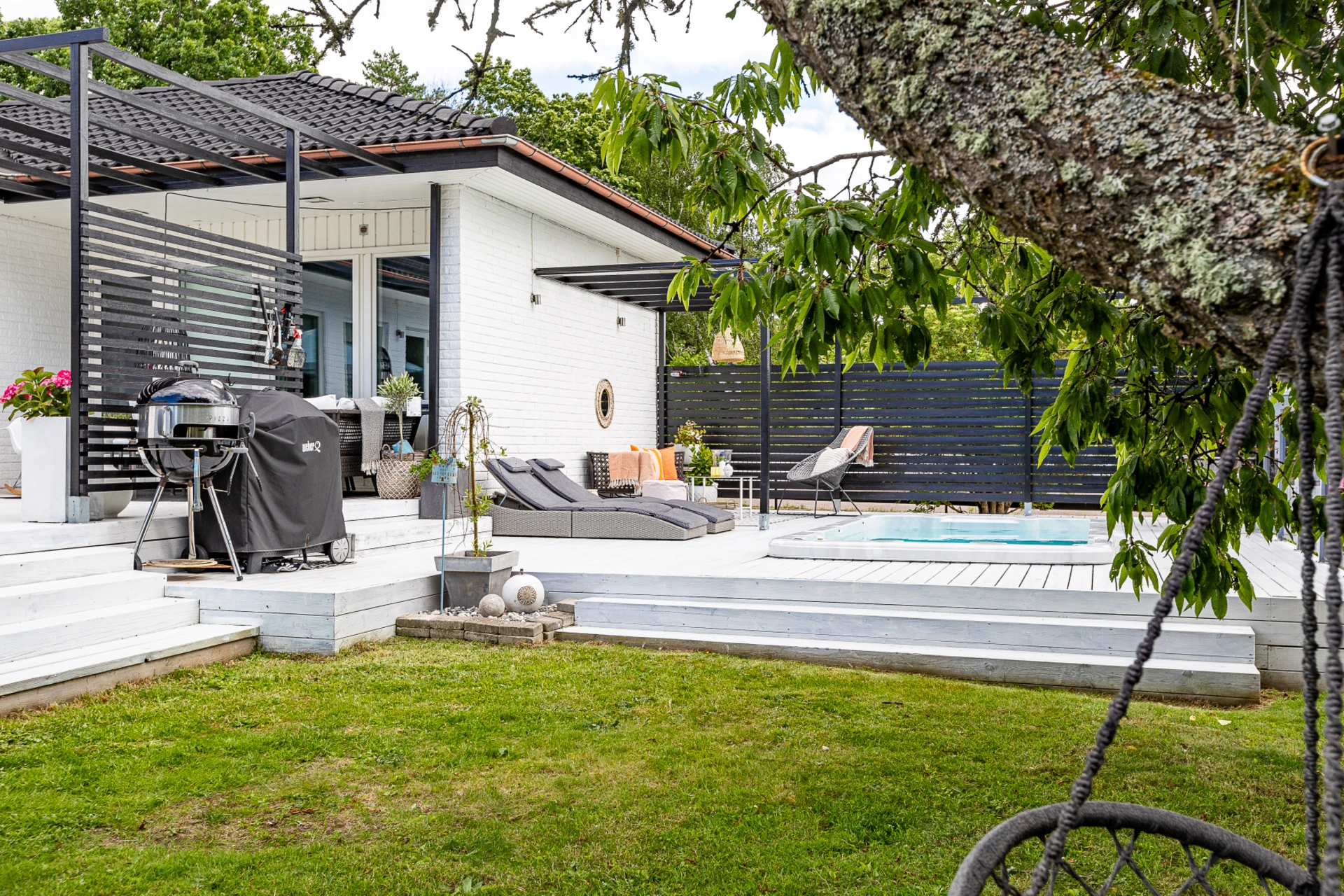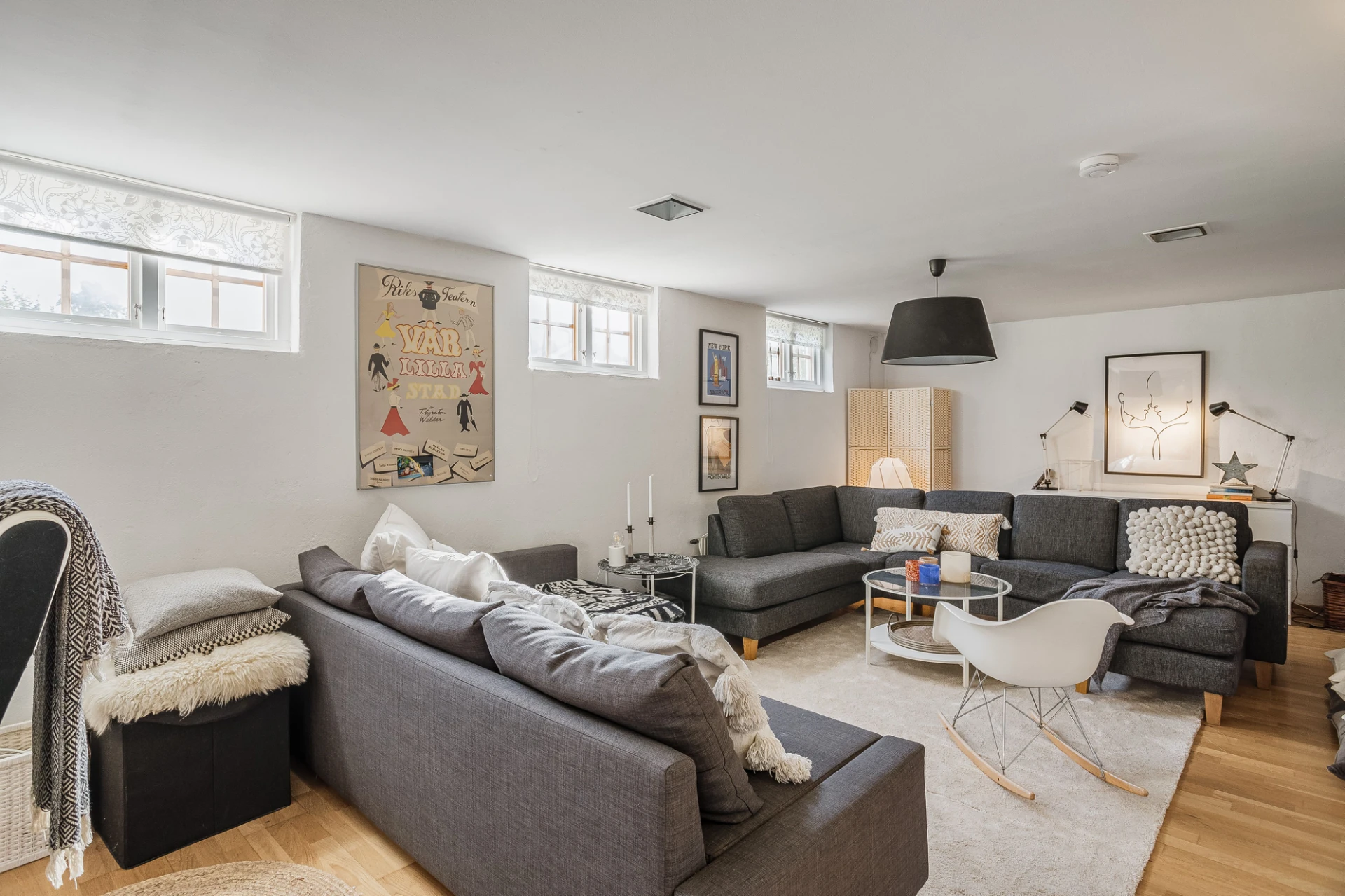 Villan har en mycket välplanerad yta och stoltserar med härliga sociala utrymmen både inne och ute. Dom fyra sovrummen samt den användbara källare gör att huset passar bra för stora familjer eller dig med önskemål om extra rum för gäster eller egna hobbys.