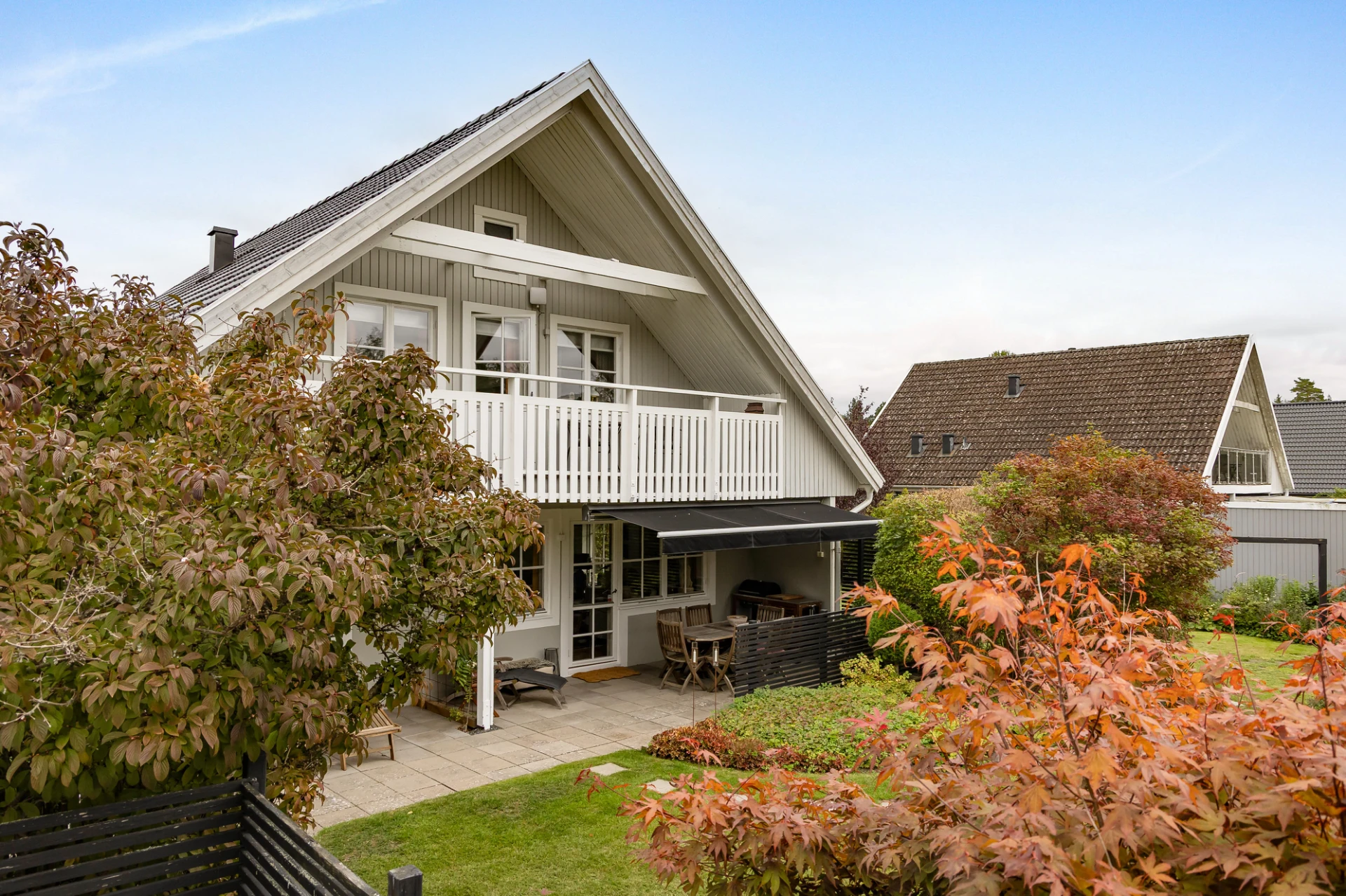 Huset har omlagt yttertak, fjärrvärme och en underbar trädgård med flera uteplatser, stenläggningar och garage.