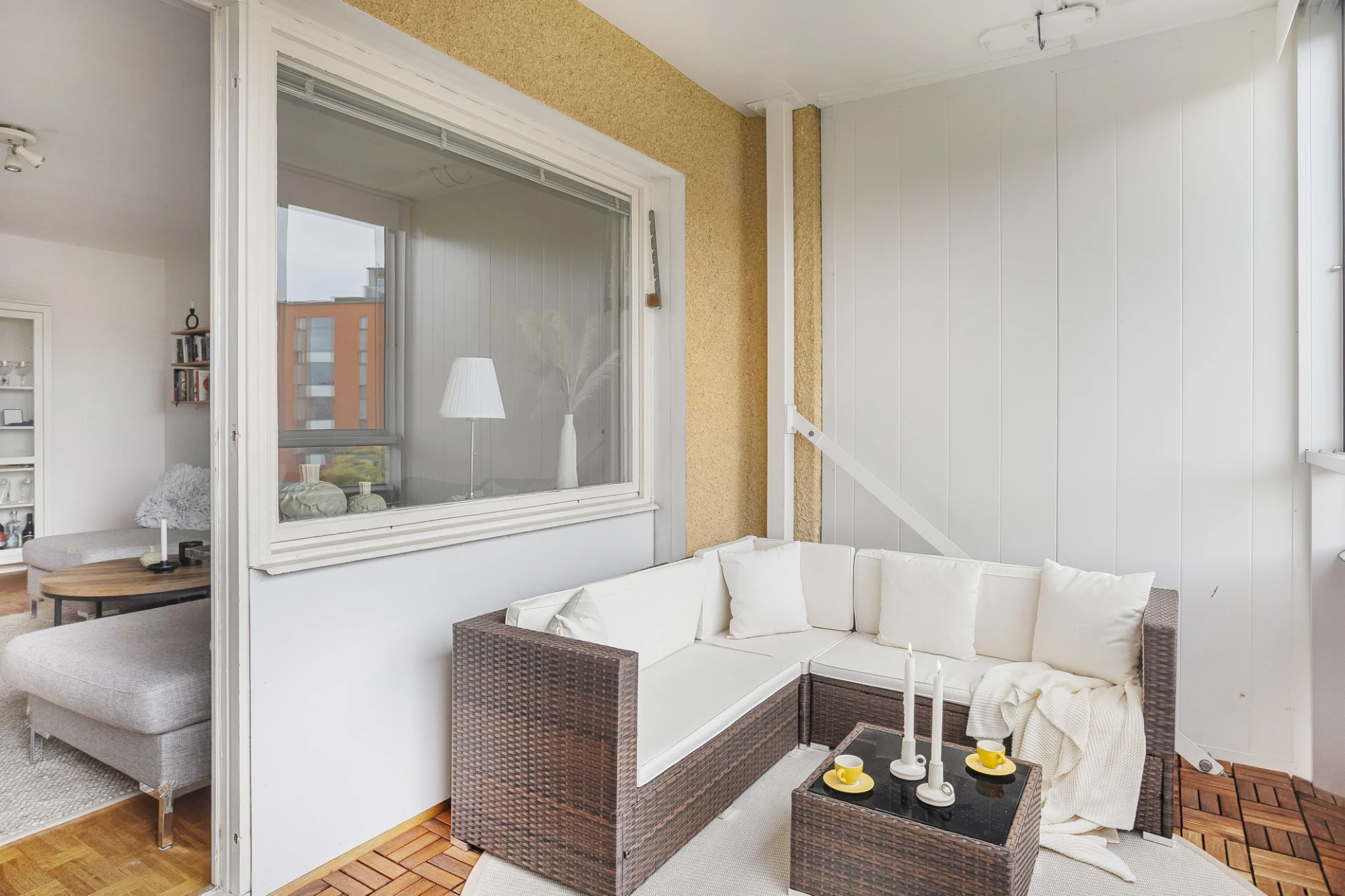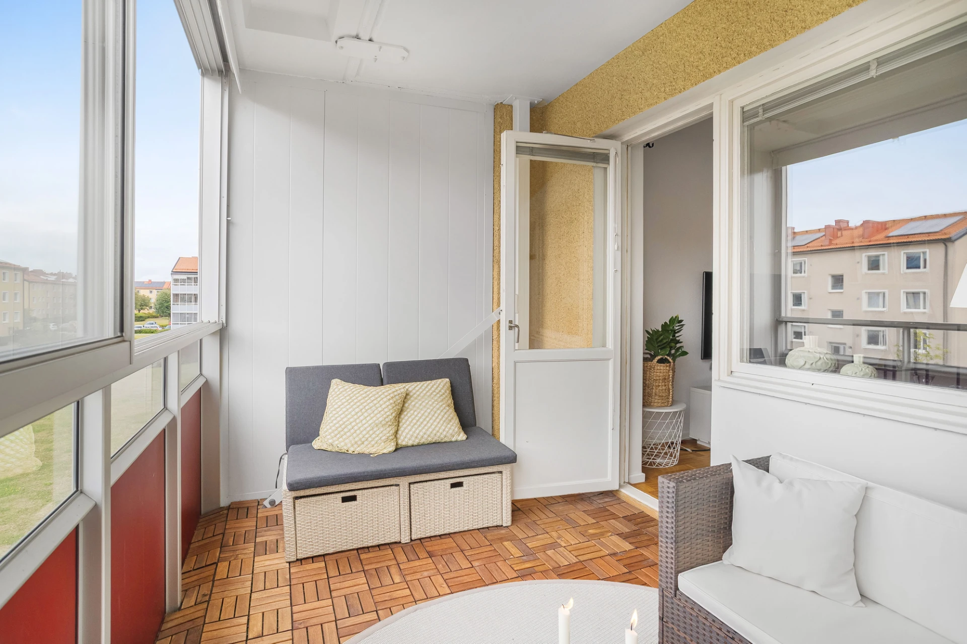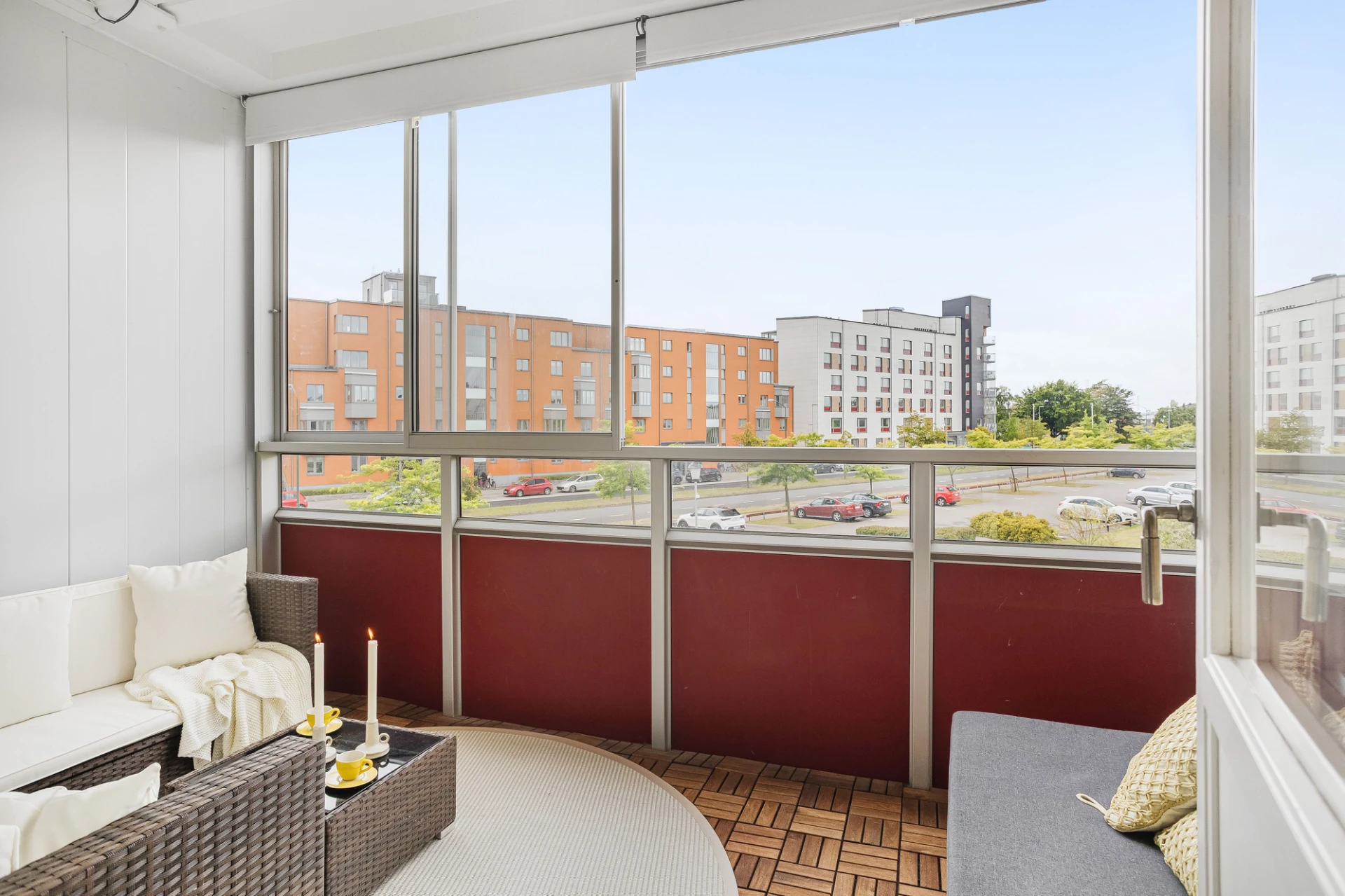 I omtyckt och välskött förening ligger denna trevliga tvåa i genomgående fint skick. Bostaden är väldisponerad med bra förvaring i flertalet garderober och en praktisk klädkammare. Stilrent renoverat kök, rymligt sovrum och helkaklad dusch/wc. Trivsamt vardagsrum som förlängs av en stor, inglasad balkong i fritt västerläge med eftermiddags- och kvällssol.