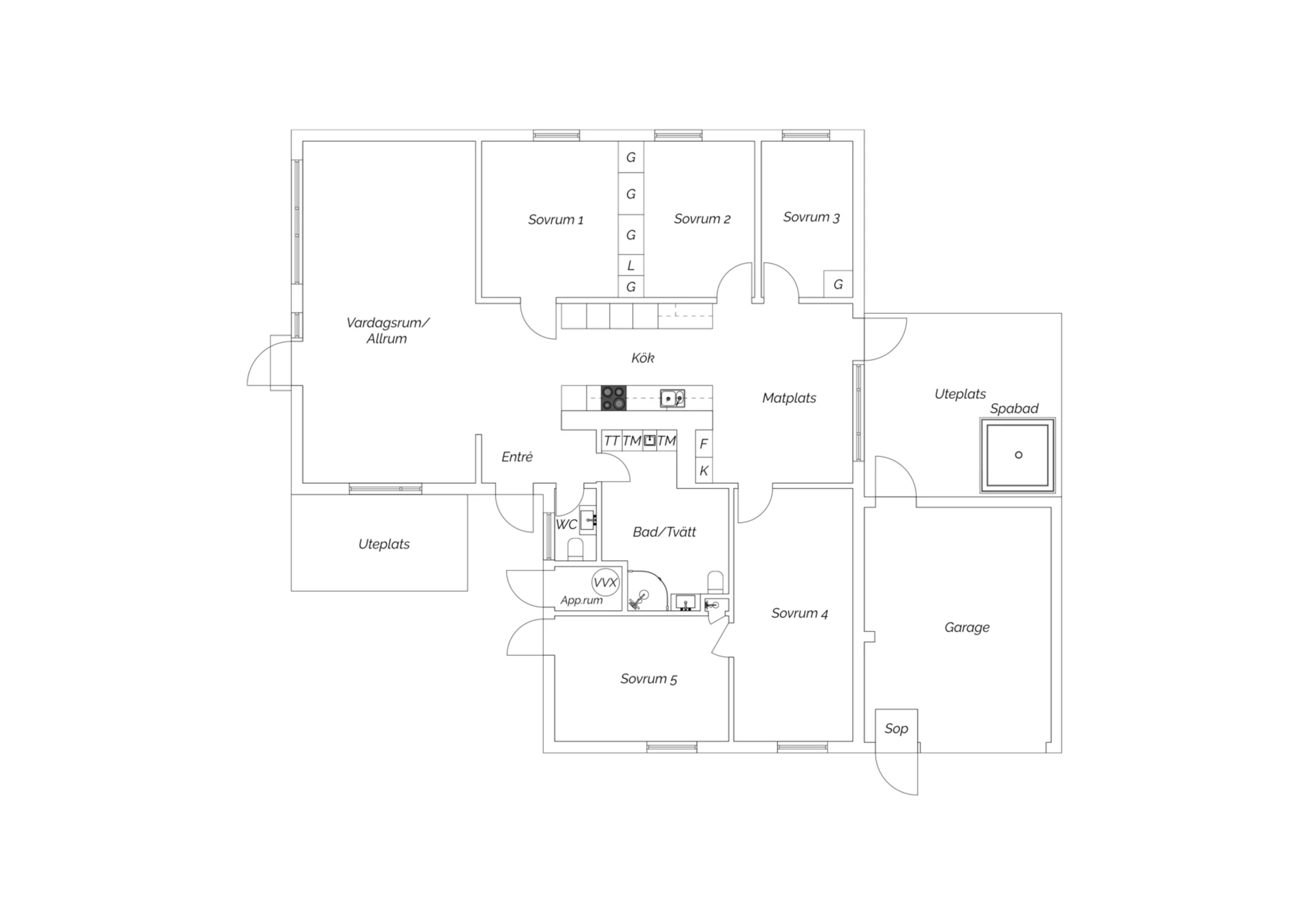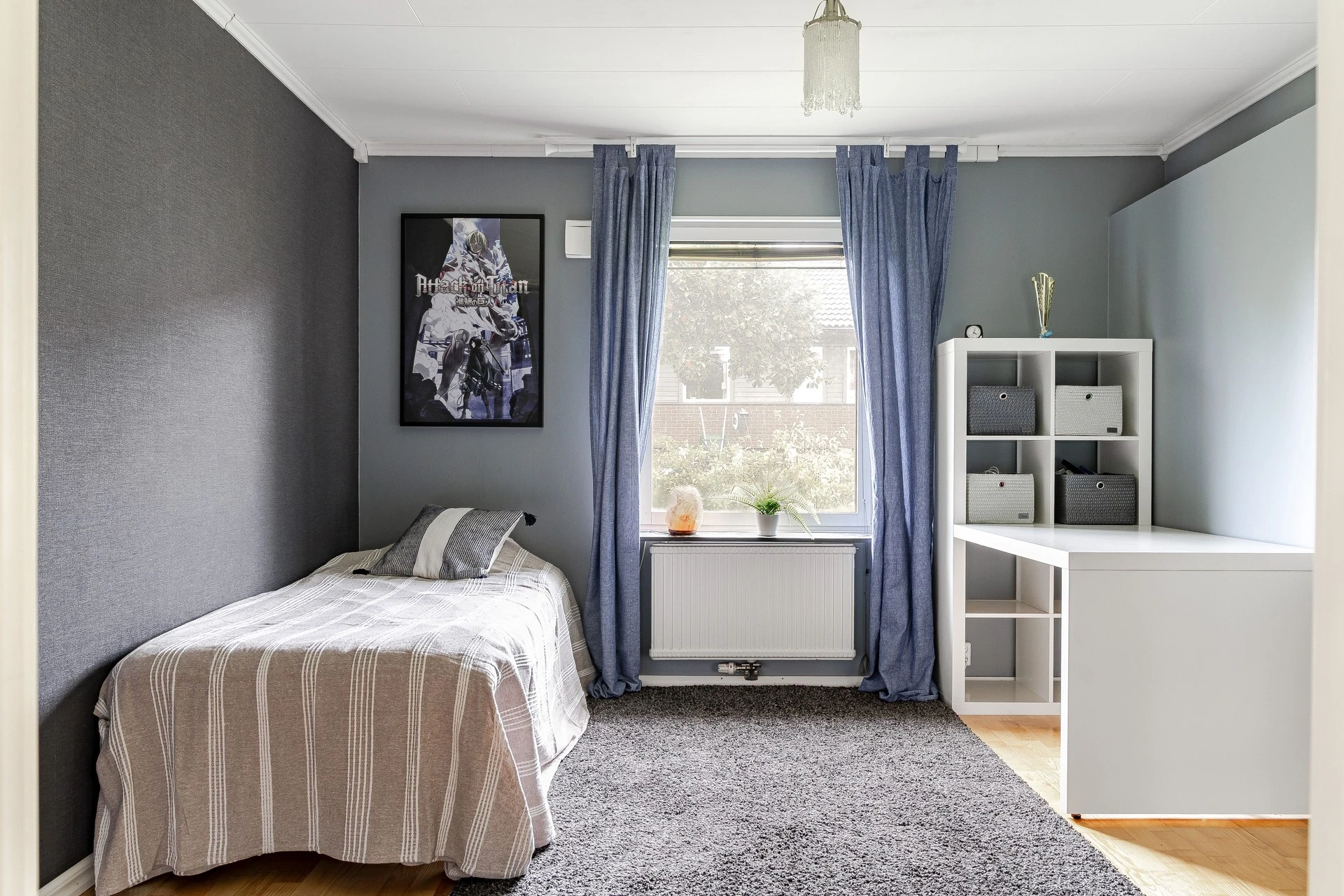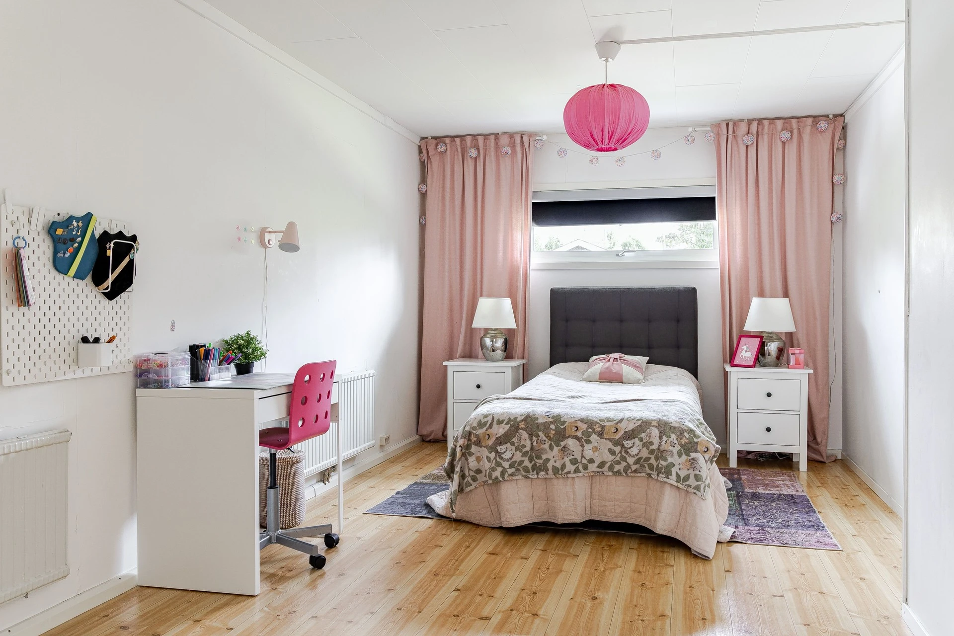 Flera sovrum, idag erbjuds upp till 5 stycken, vilka ger gott om plats för både barn, gäster och hemmakontor. En avdelning i huset erbjuder dessutom ett egen avdelning med eget mindre duschutrymme samt en helt egen utgång – idealiskt som tonårsdel, generationsboende eller för uthyrning!