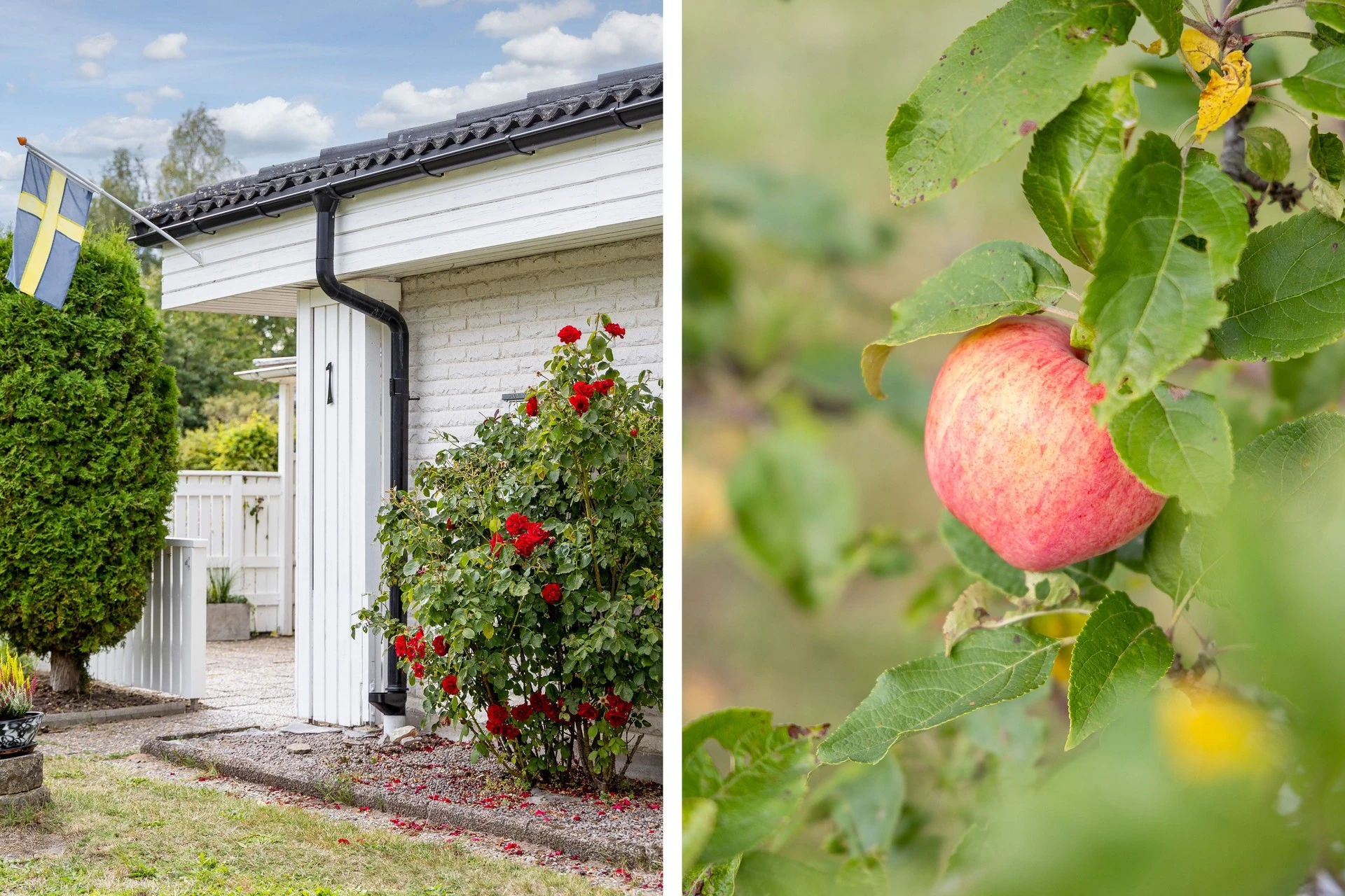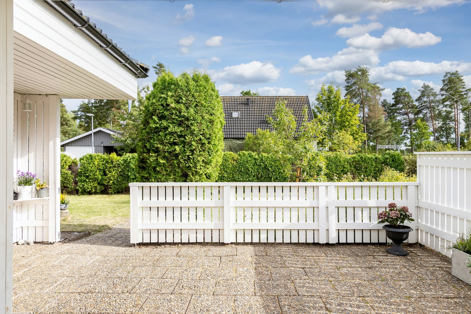 Trädgården är lättskött med gräsmatta och mindre antal buskage och rabatter. Fin hörntomt och möjlighet för ytterligare odling eller uteplatser finns gott om. En lekstuga som idag erbjuder lek eller ytterligare plats för förvaring utöver garage och mindre förråd.