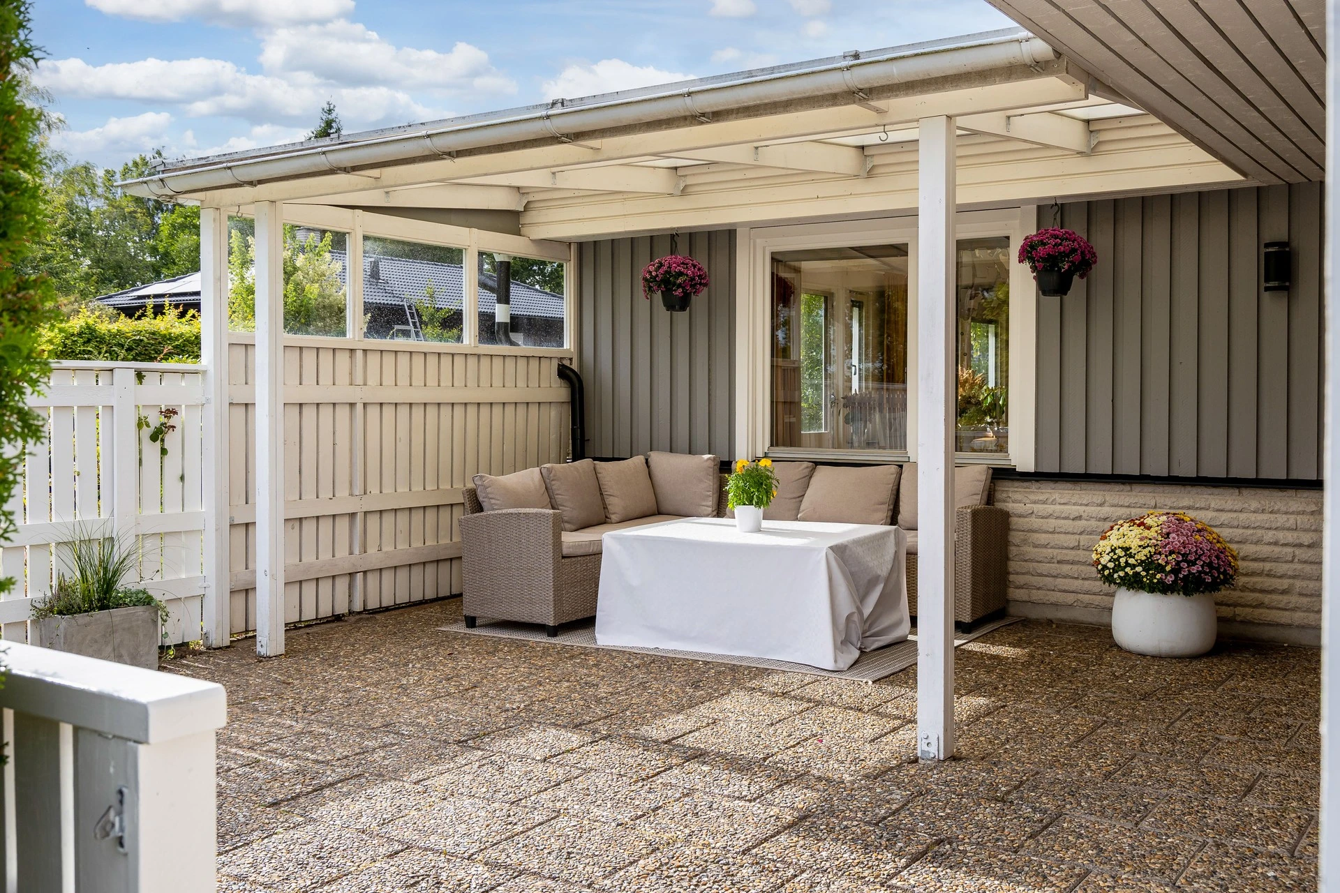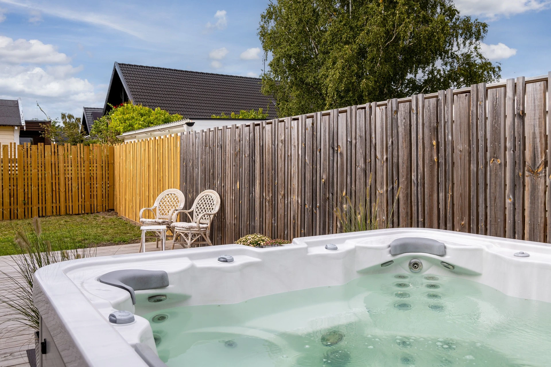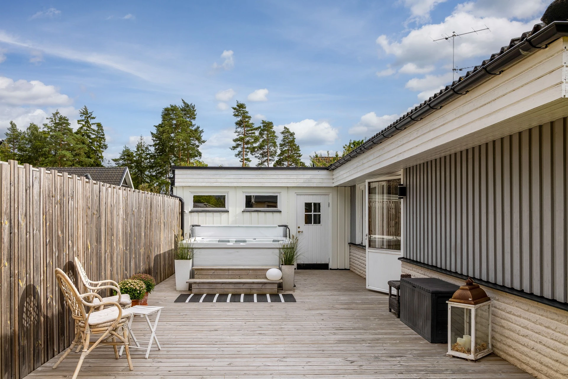 Det luftiga vardagsrummet erbjuder plats för hela familjen och har en naturlig kontakt med både kök och matplats om man önskar, tack vare den öppna ytan. Köket är nytt, rymligt och har goda arbetsytor samt gott om plats för förvaring. Härifrån når du även den fina uteplatsen på baksida med det härliga spabadet. En uteplats som är perfekt för avkoppling året om!