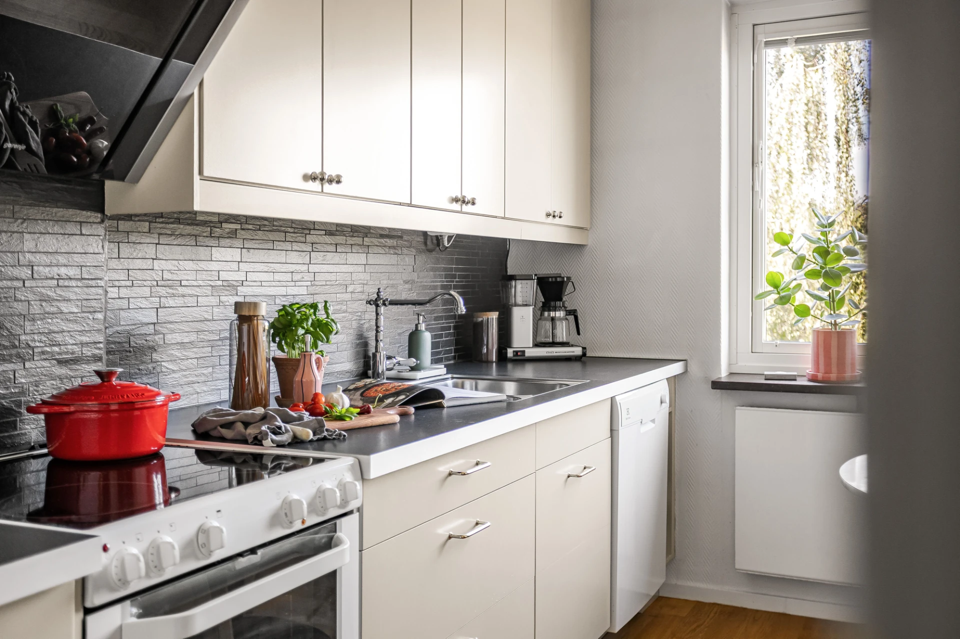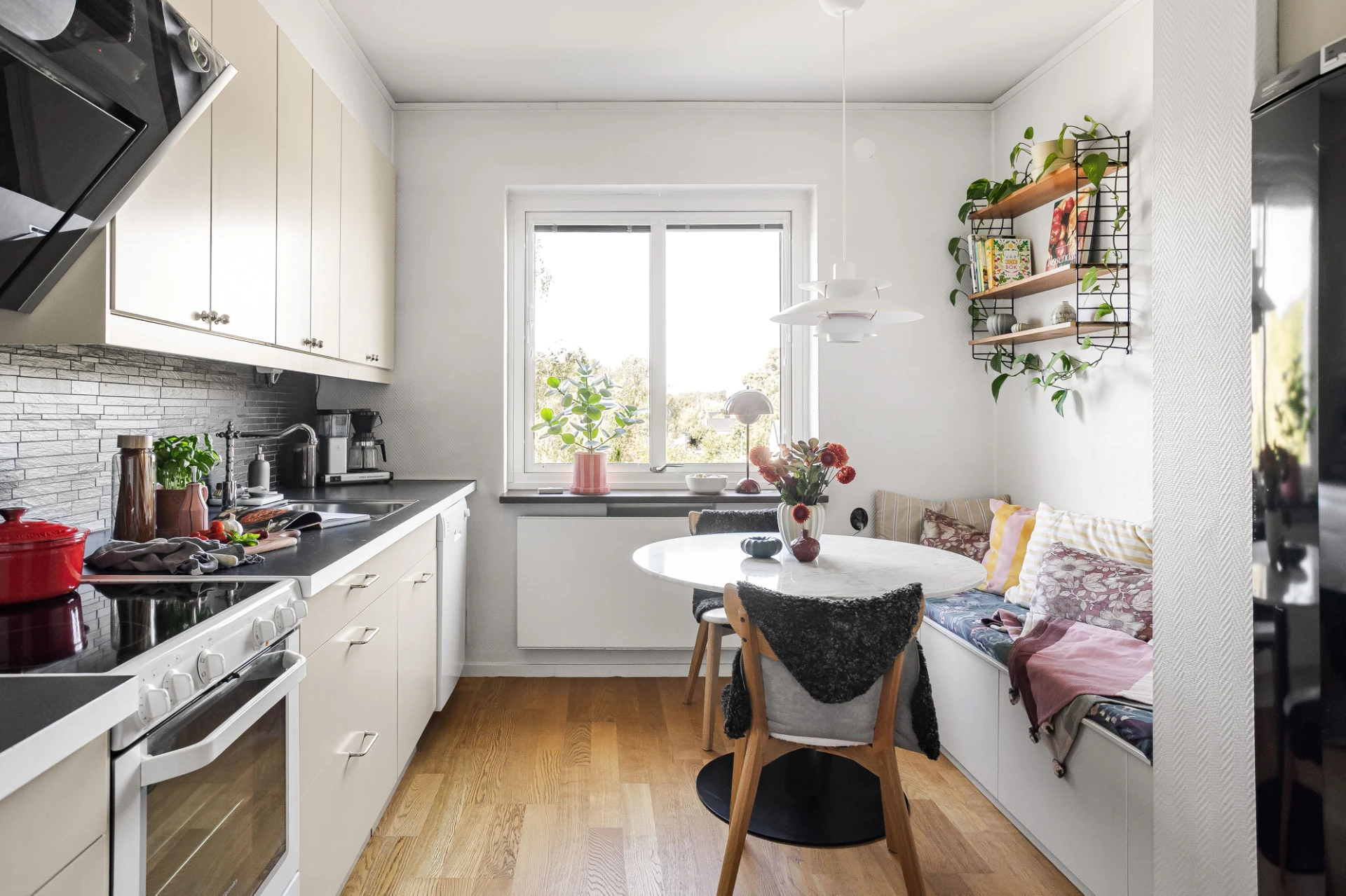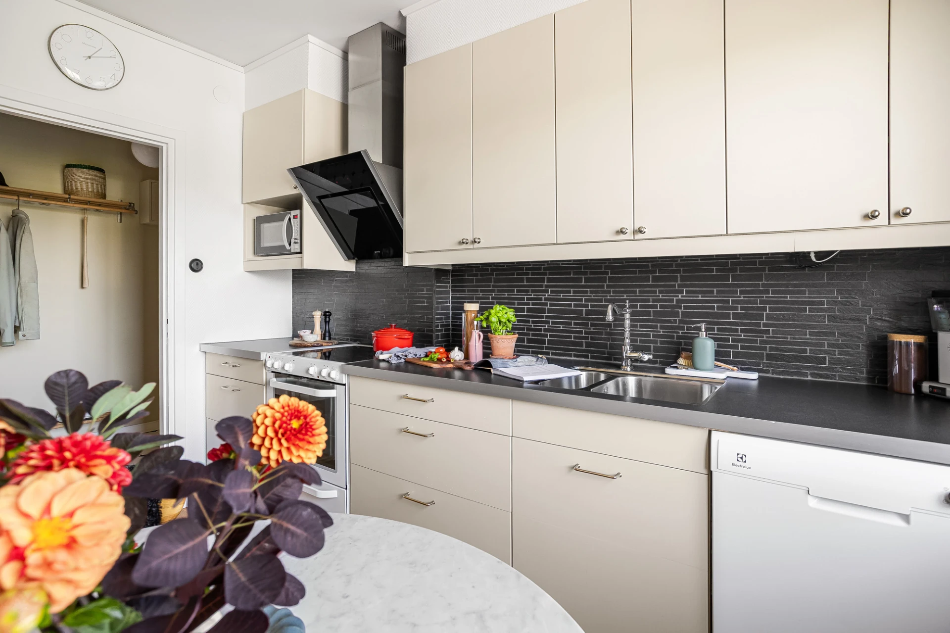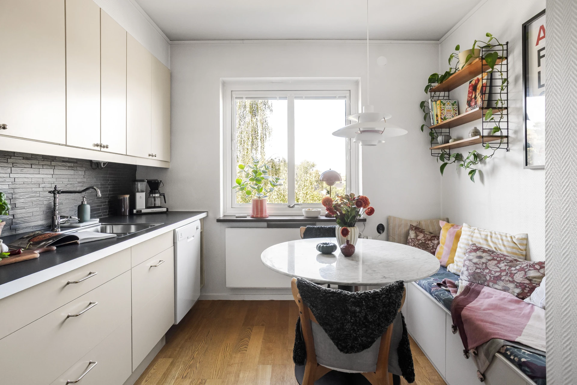 Välkommen till Ståthållaregatan 60A och denna fantastiska trea! Redan i hallen känner man sig hemma och det infinner sig en harmoni som ger dig känslan att här trivs man bra! Klassisk praktisk klinker i hallen och direkt till vänster finner ni det härliga köket. Här finns allt man kan tänka sig behöva för att förenkla matlagningen, gästerna kan slå sig ner på den platsbyggda bänken för samtal medans middagen tillagas. Diskmaskin finns det såklart så ni enkelt kan ta en lugn kväll i soffan istället för vid diskbaljan.
