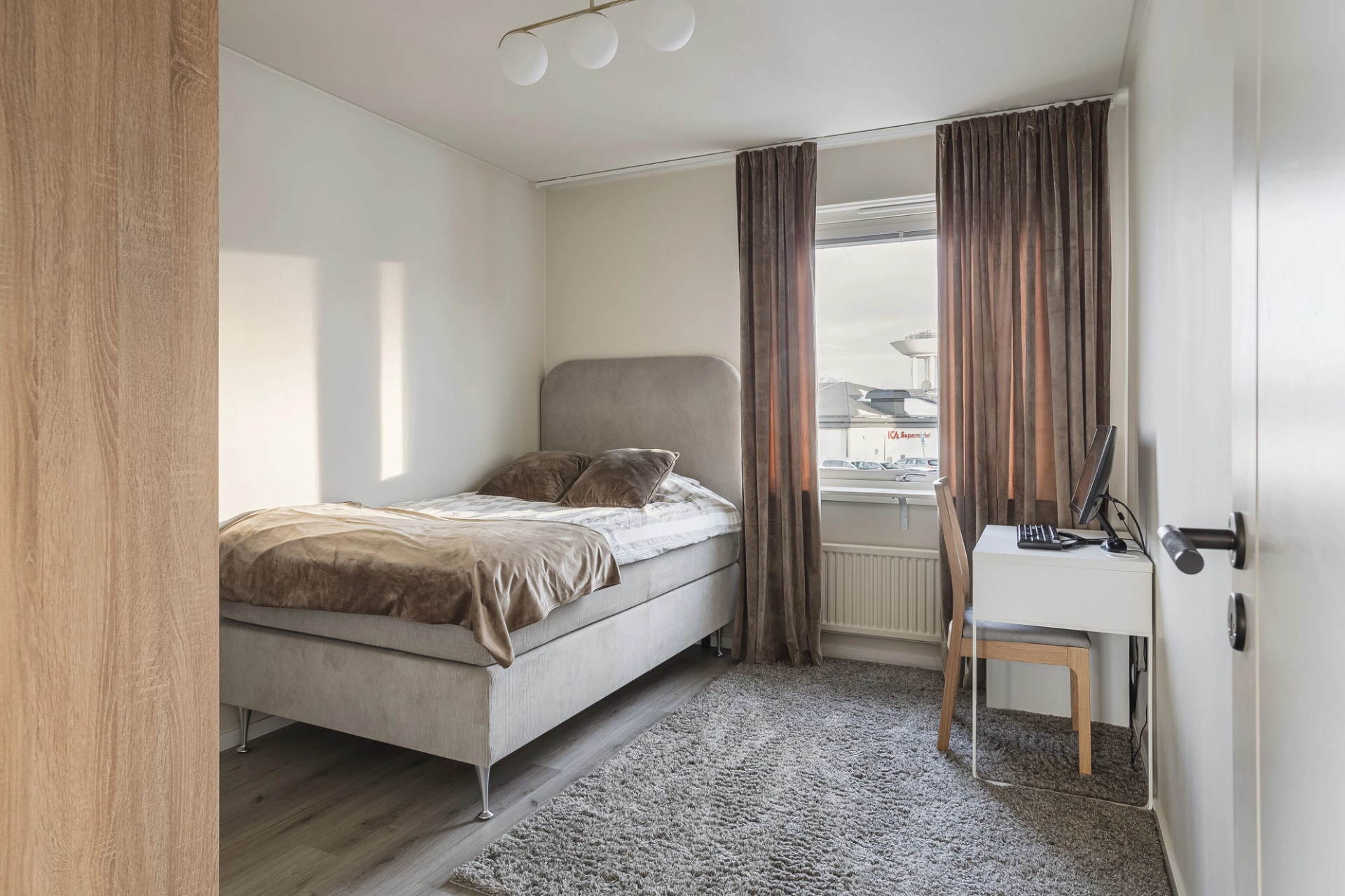 Sovrummen är rymliga, ni väljer själva hur ni vill disponera de olika rummen, kanske tänker du hemmakontor, gästrum, tonårsrum eller barnrum. Kort och gott kan jag med stolthet säga att denna bostaden har allt du behöver - bra förvaring, rejält kök med diskmaskin, vardagsrum med inglasad balkong, rofyllda sovrum och två helkaklade badrum, en som en gästtoalett och en komplett med dusch - vad mer kan man begära?