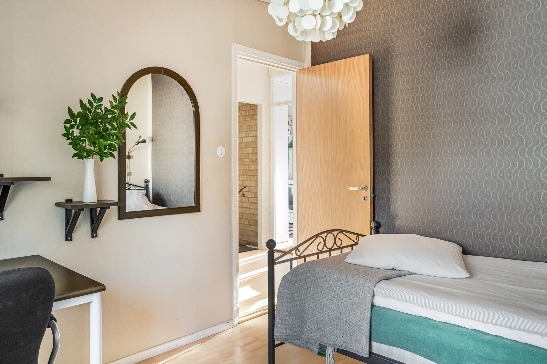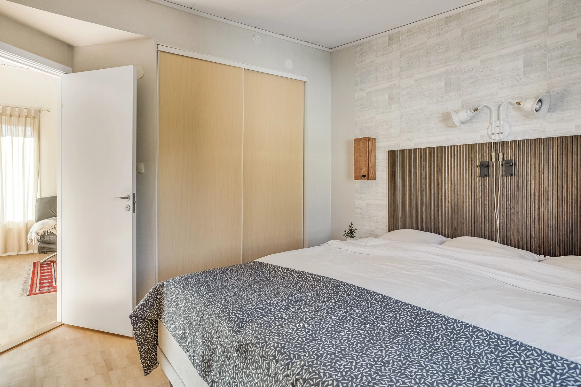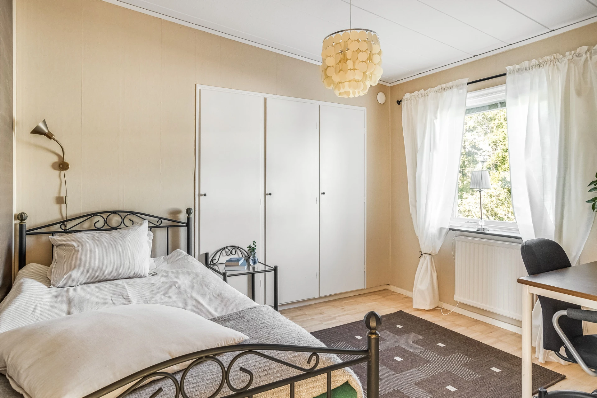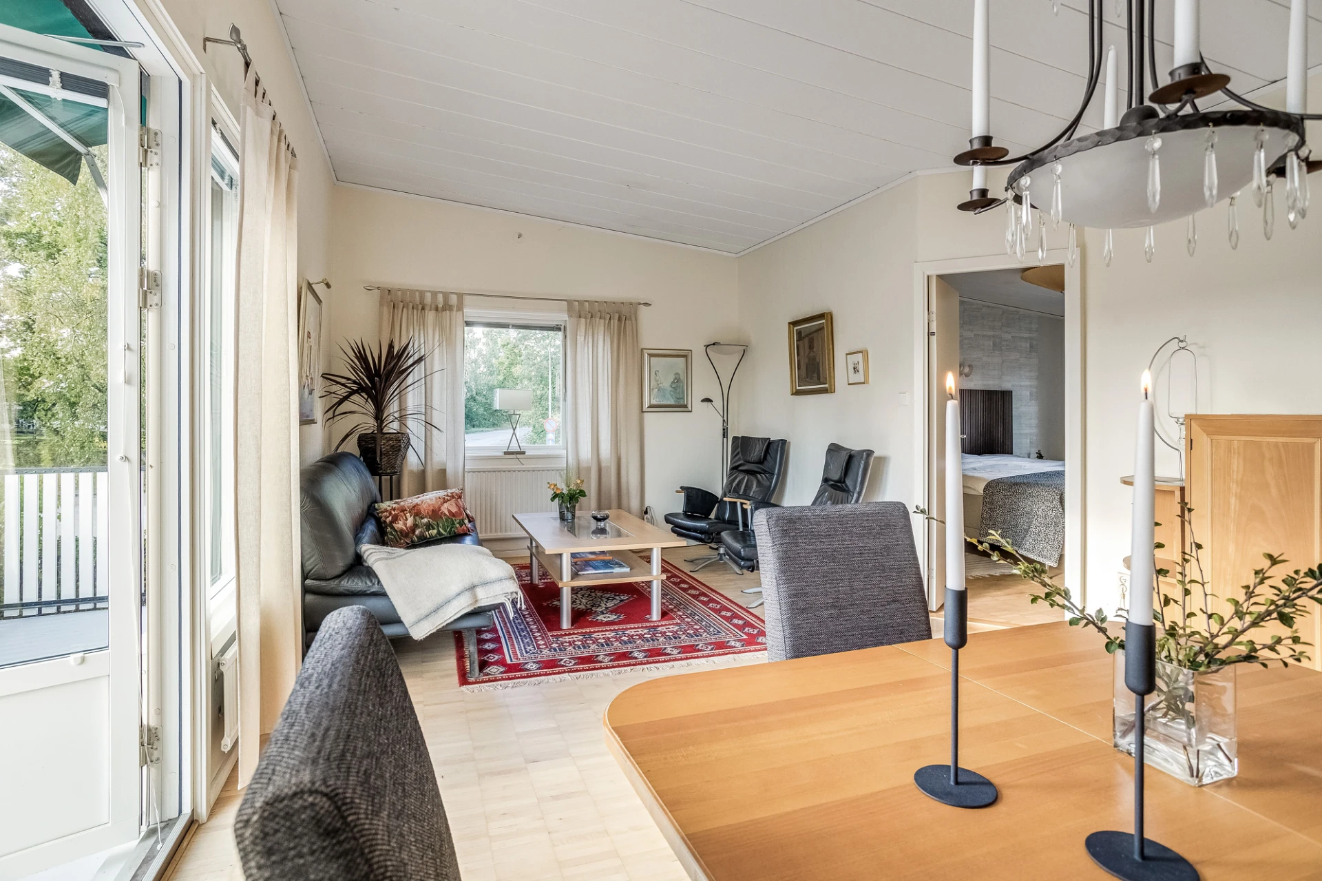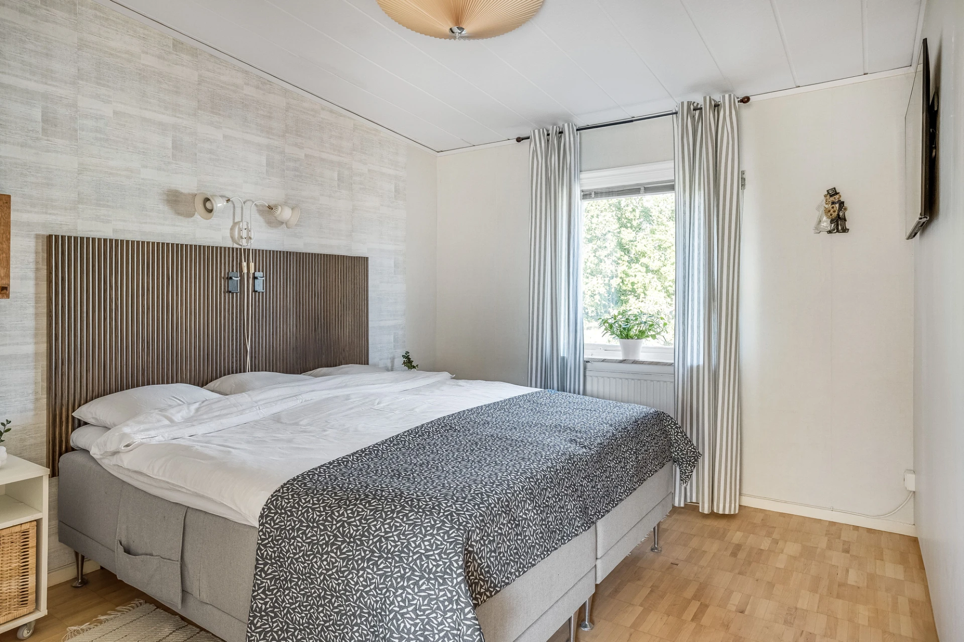 2014 - Bytt fönster och dörr uppe mot sydväst, bytt panel och tilläggsisolerat och persienner installerade.