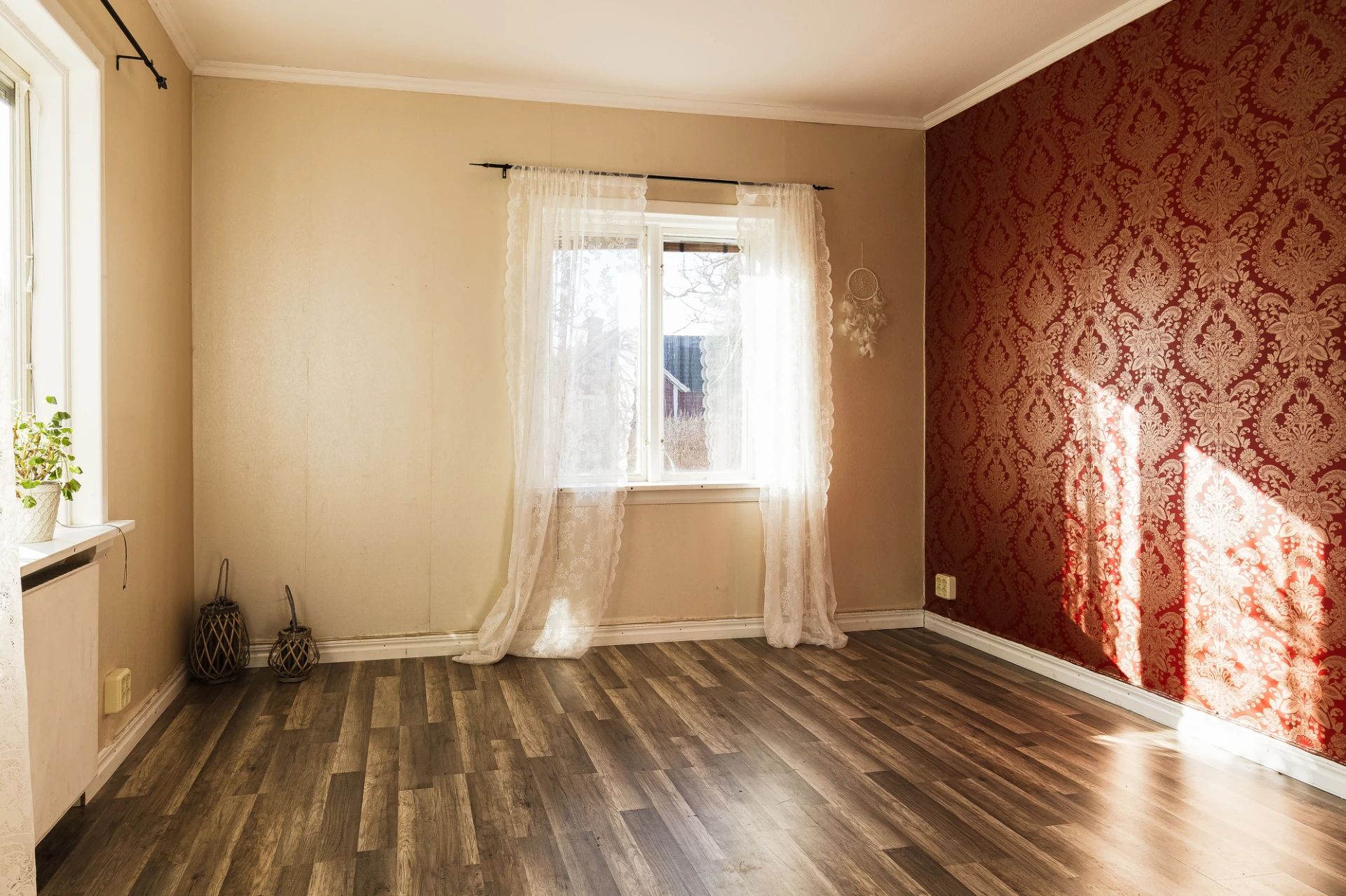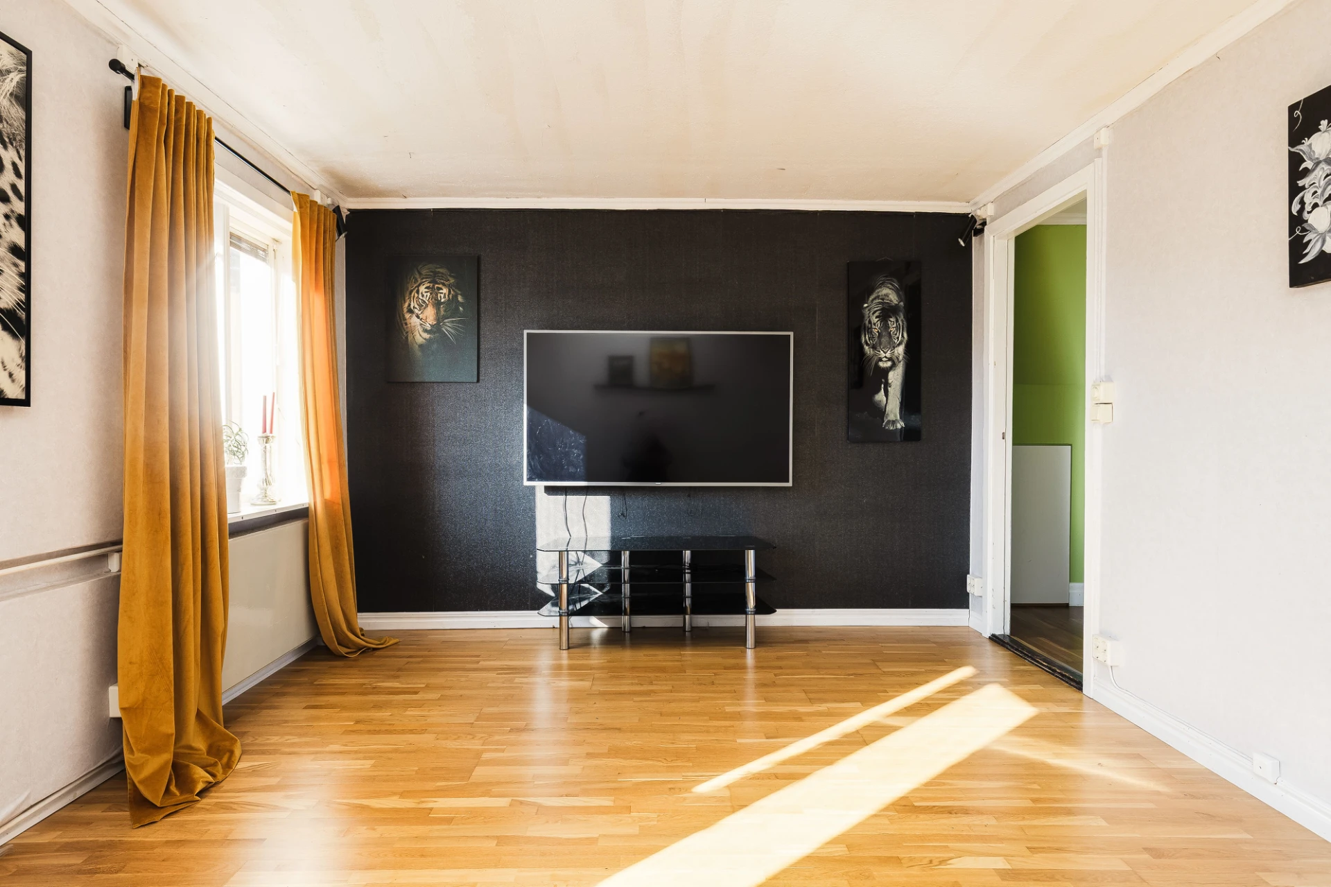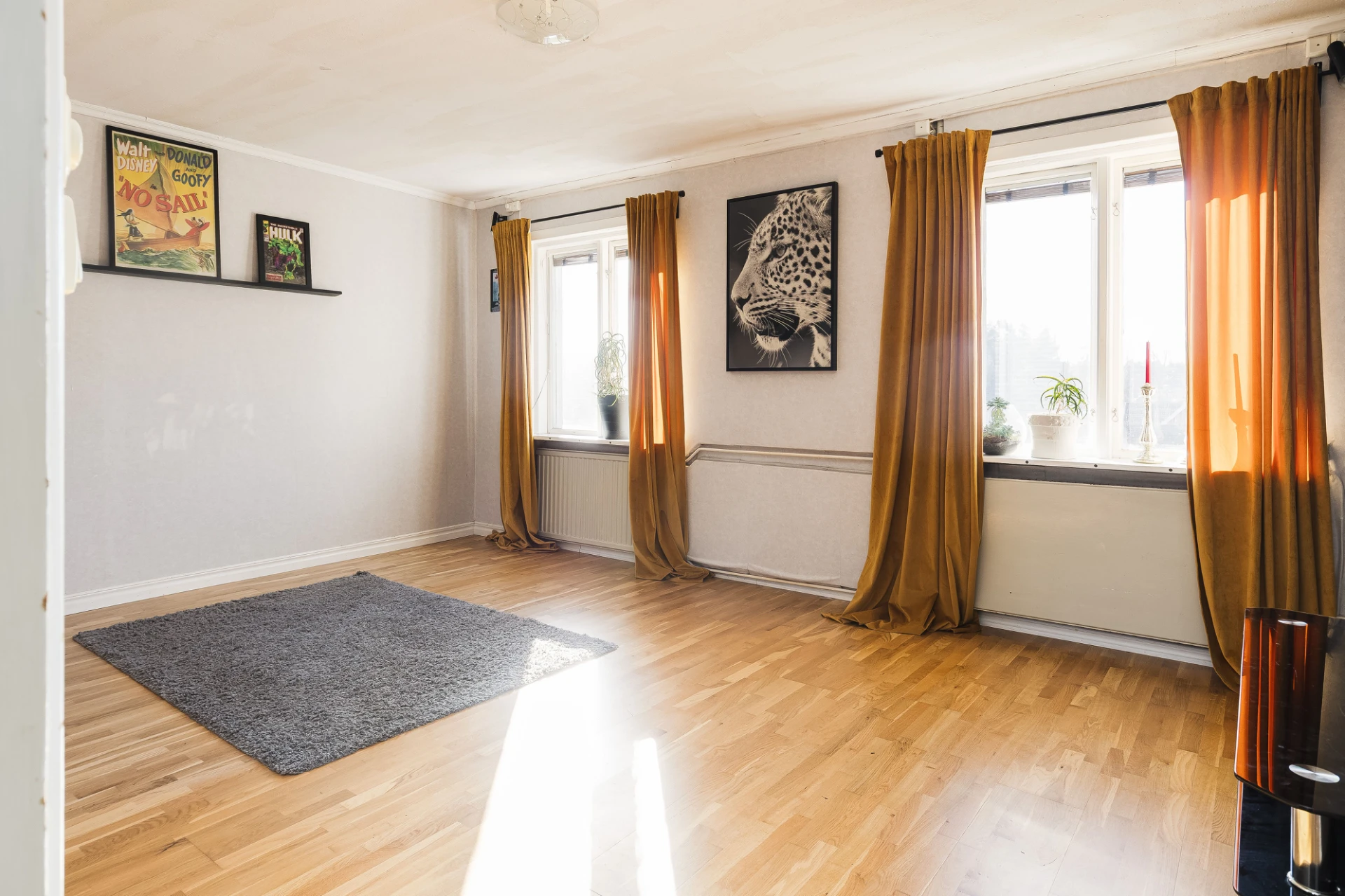 Med belägenhet till höger från huvudentrén sett finns en generöst tilltaget rum som kan nyttjas som både vardagsrum, allrum eller ett stort sovrum.