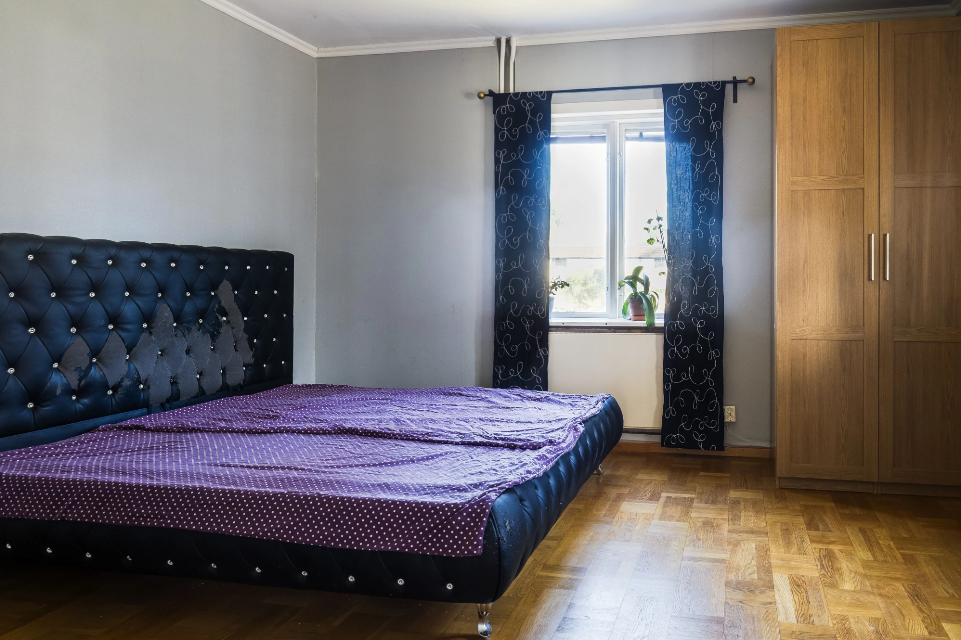 Rakt fram från hall och allrummet sett finns ett generöst sovrum.