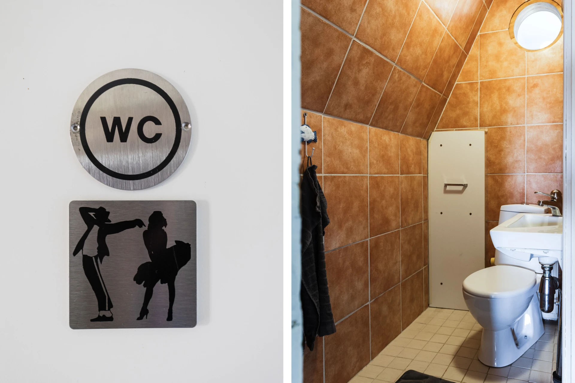 På övre plan, till höger från trappen sett, finns en toalett med WC och handfat.