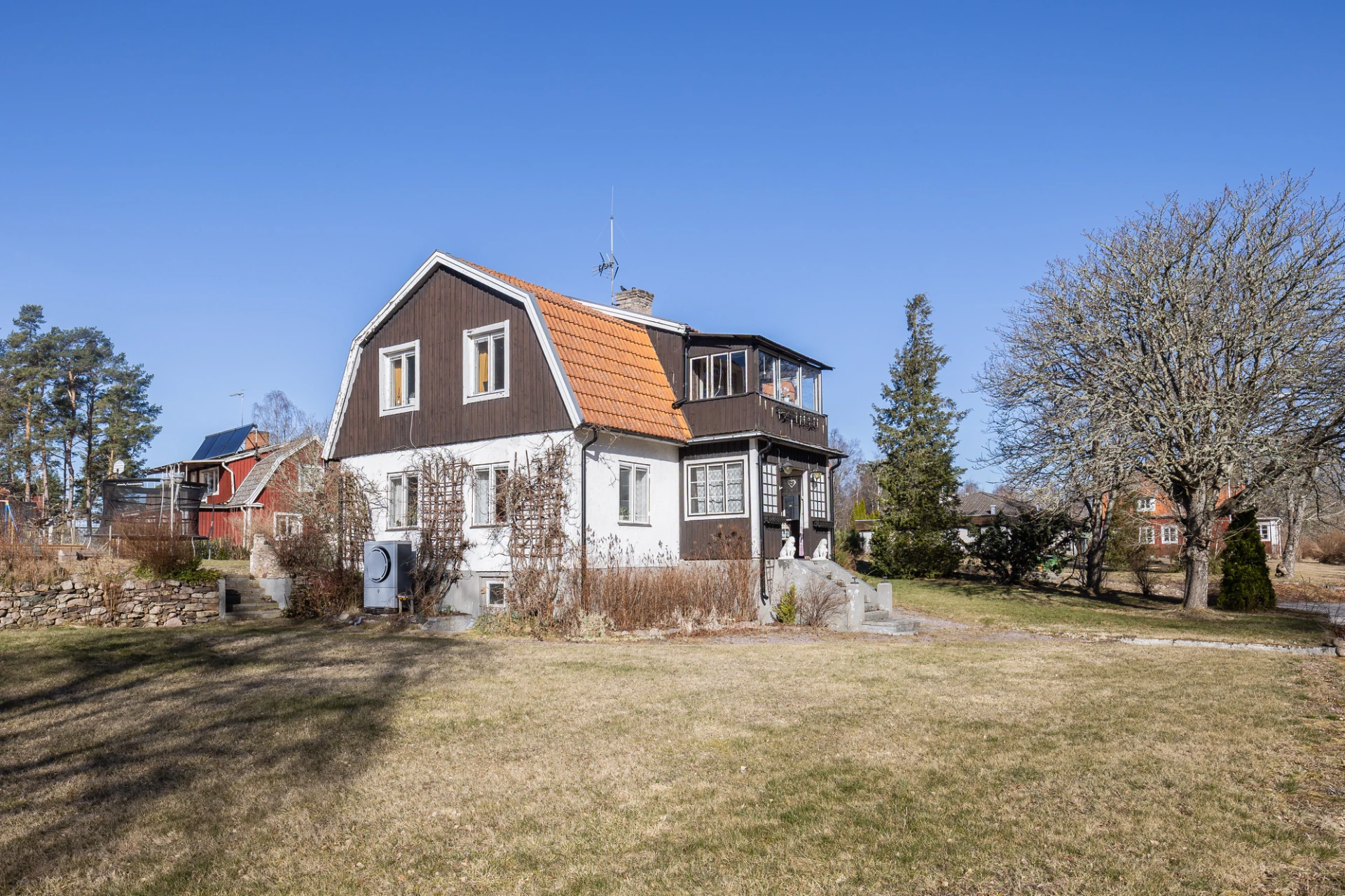 På husets södra gavel finns en mindre källare där det idag finns ny tvättmaskin samt värmepumpen till vattenburna systemet, ett varmt utrymme.