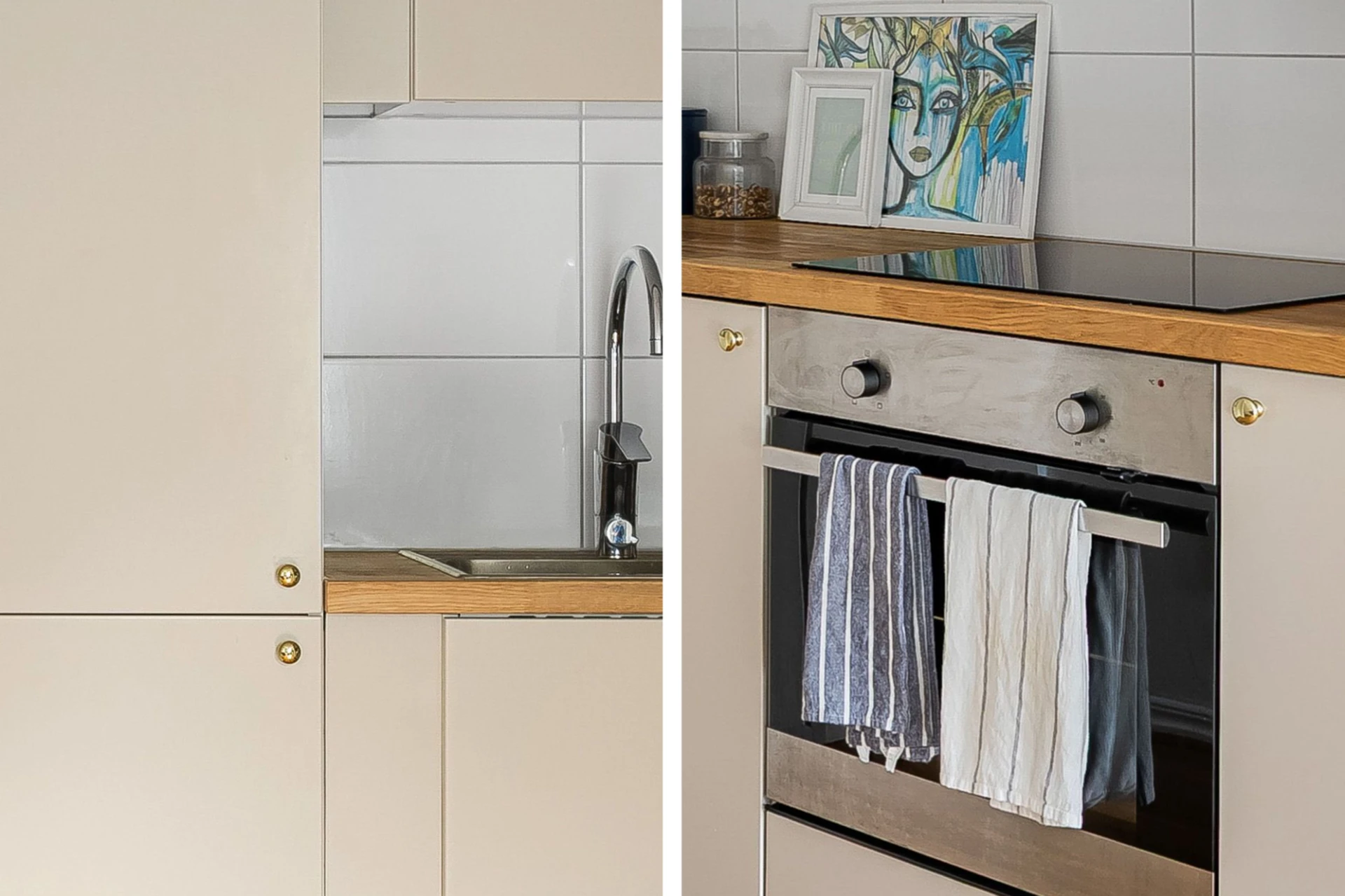 Praktiskt och smakfullt renoverat kök med kyl/frys, induktionshäll, fläkt, inbyggnadsugn samt bänkdiskmaskin. Här ges bra utrymme för matbord i den öppna planlösningen mot vardagsrummet.