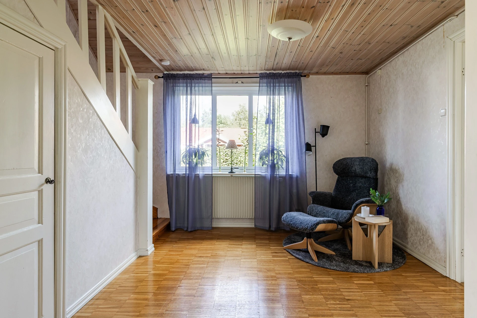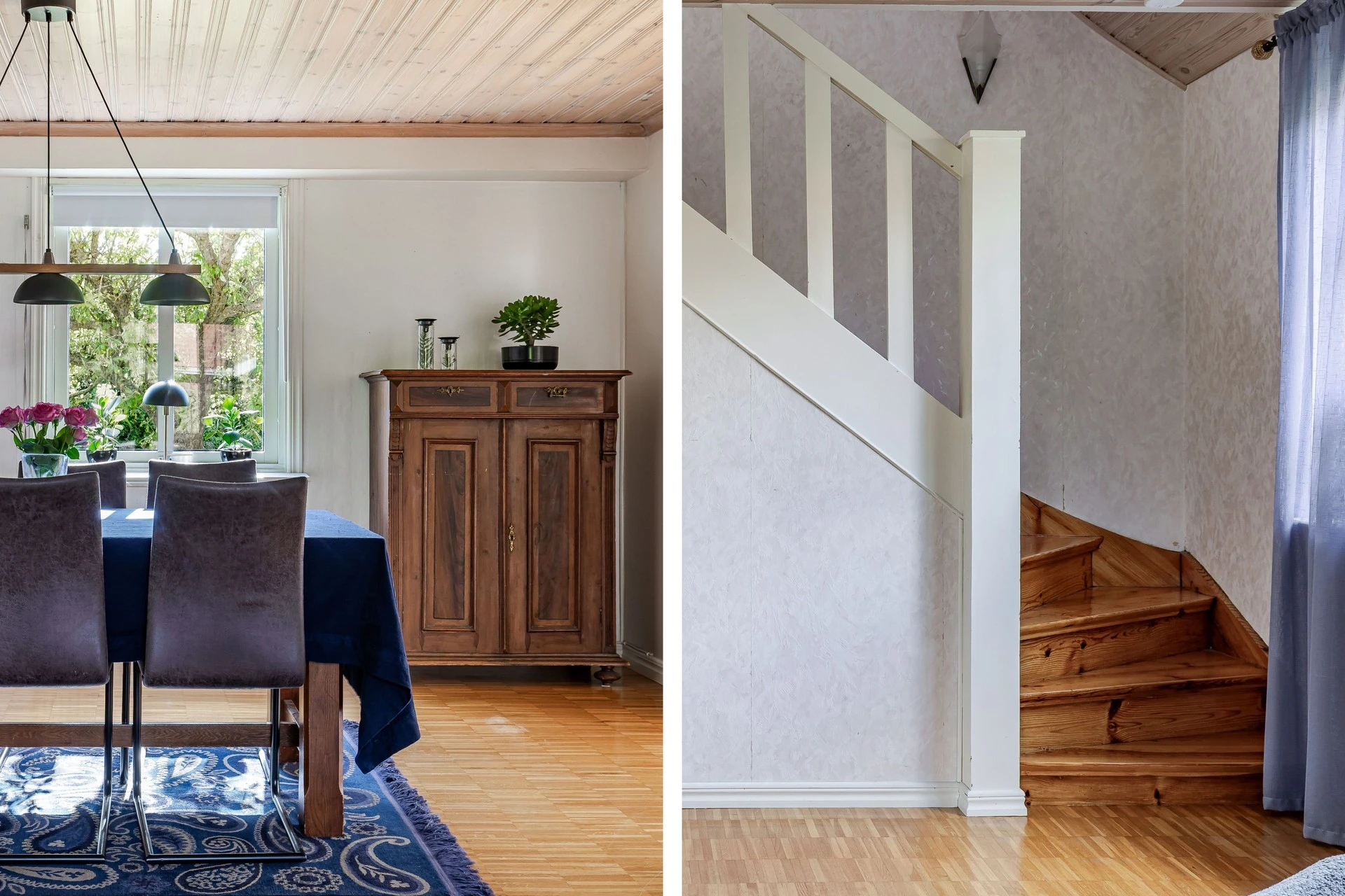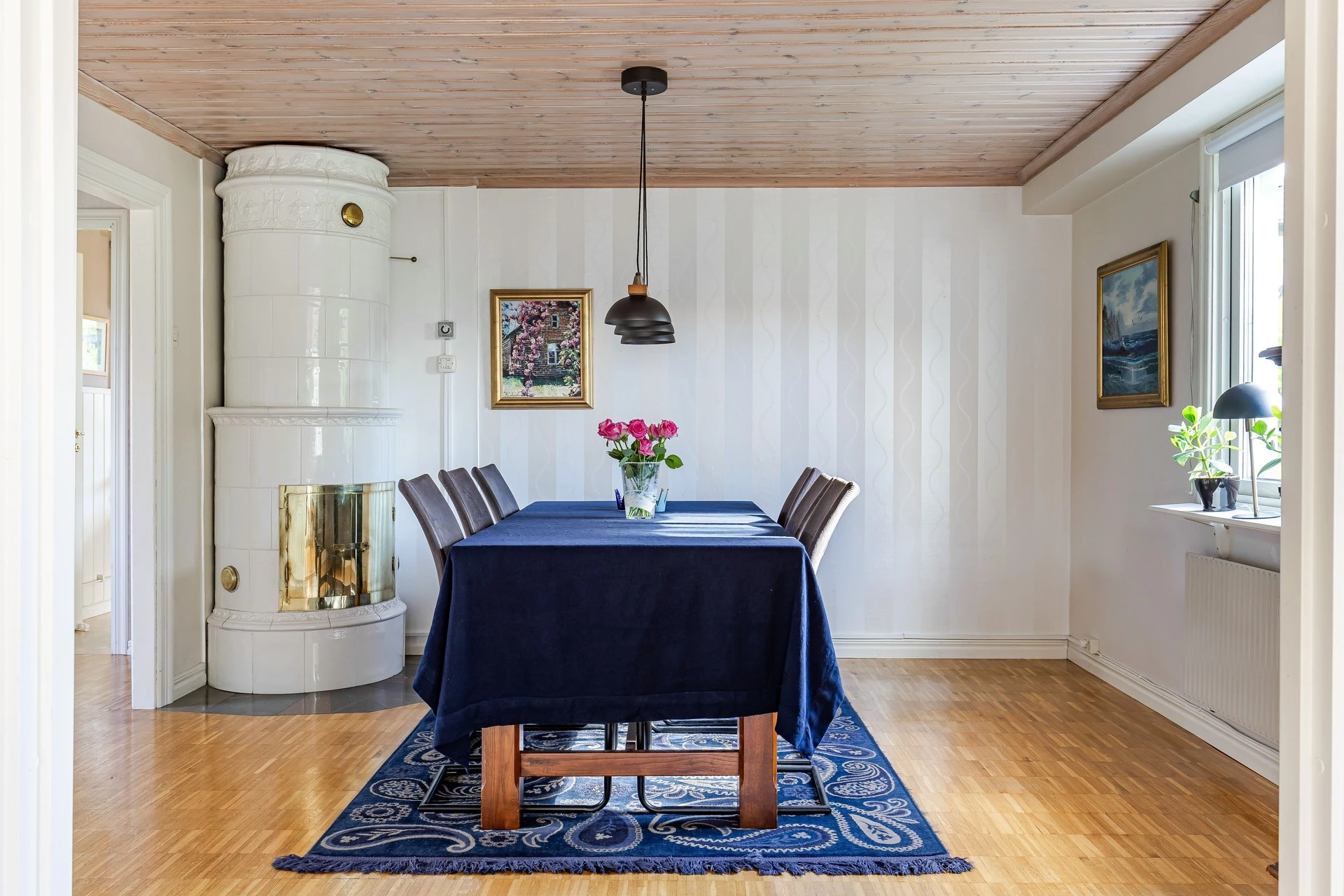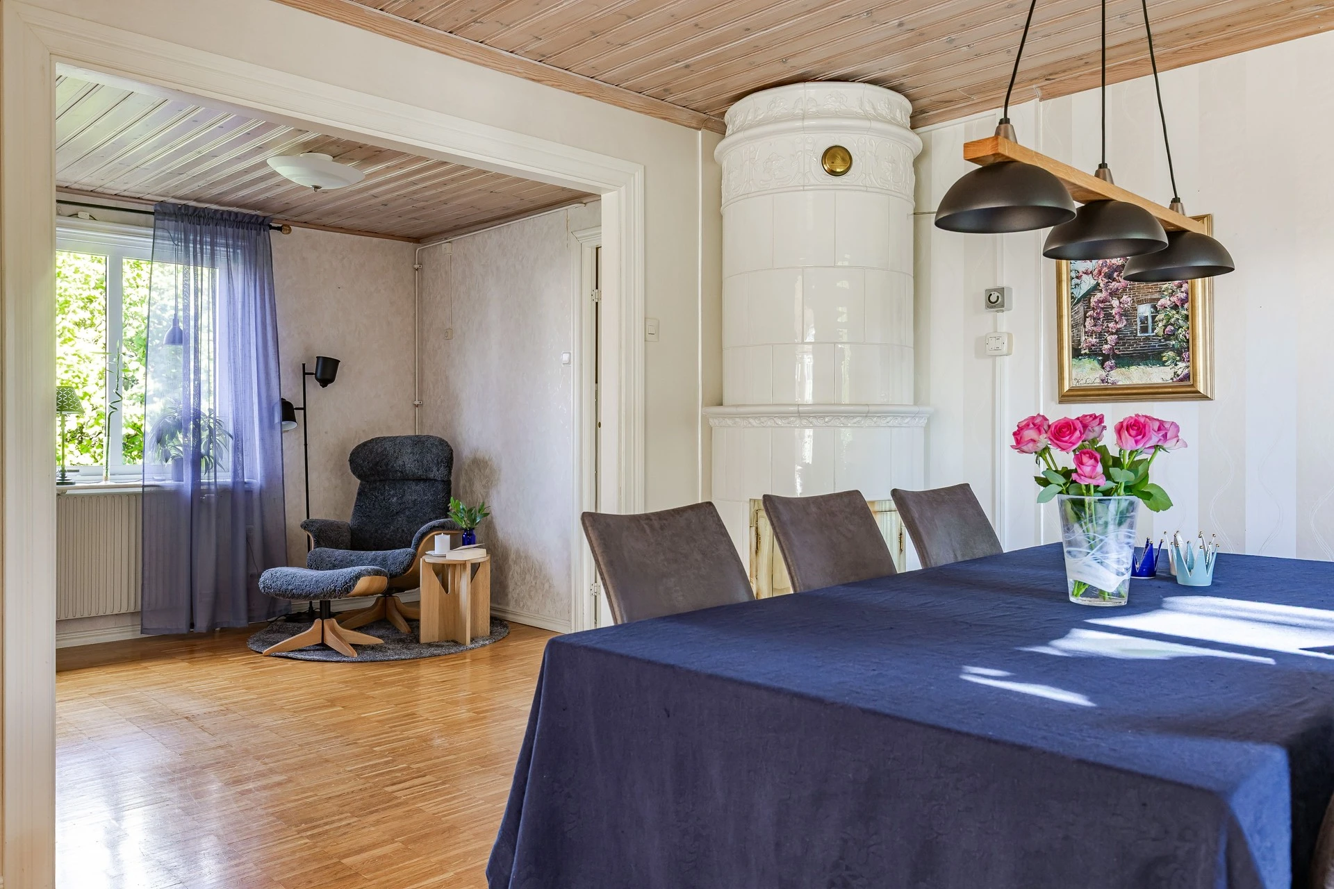 Redan utifrån möts du av den karaktäristiska 30-talssiluetten med brutet tak, gedigen fasad och en känsla av att här har det trivts folk i alla tider. Invändigt väntar stora sällskapsytor, vackra trägolv, en pampig kakelugn och andra tidstypiska detaljer som ger personlighet och värme till bostaden.