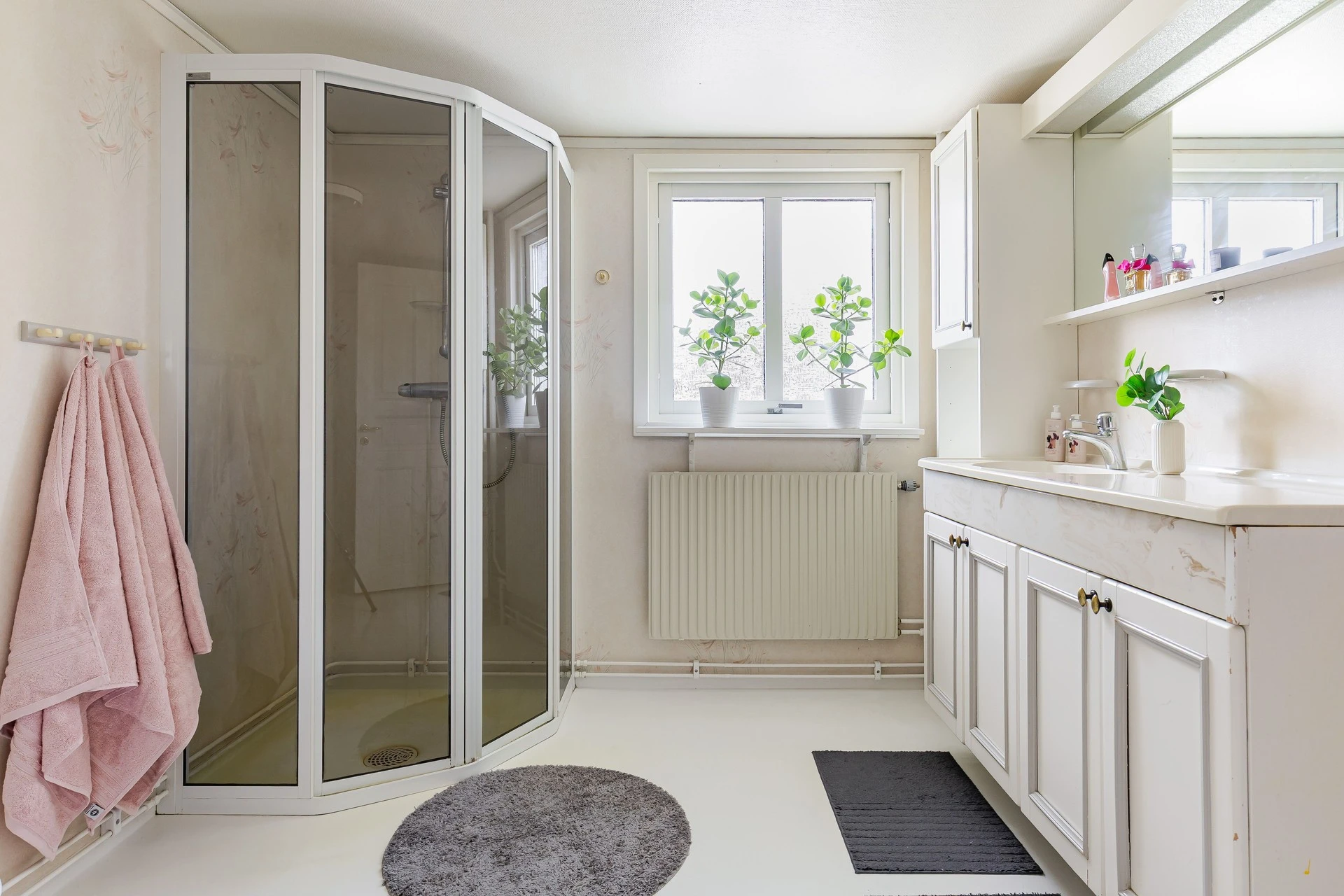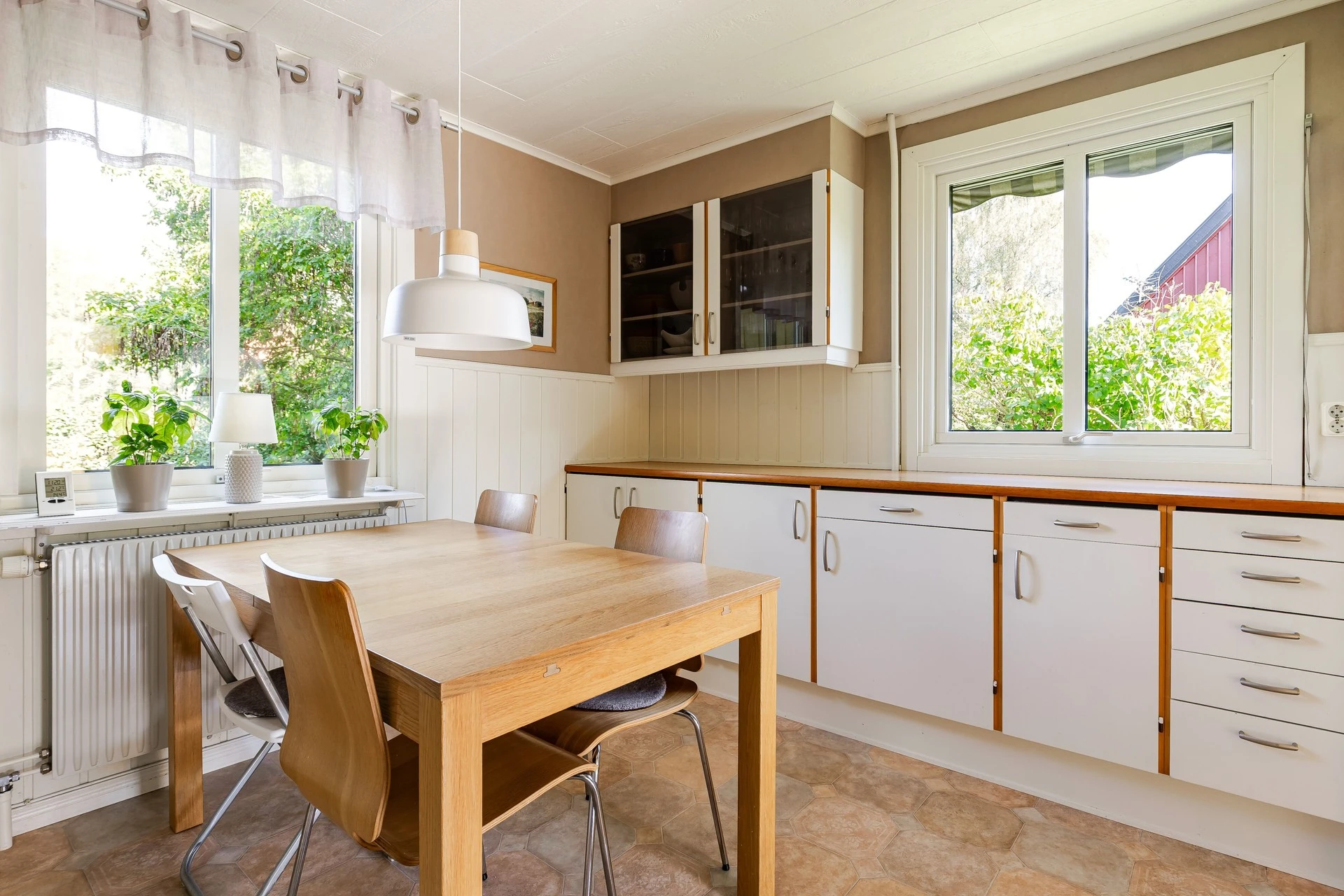 En rejäl entré välkomnar och ger plats för både kängor, hundkoppel eller en rejäl hallbyrå om så önskas. Allt för att underlätta det praktiska i vardagsstöket. På entréplan finns två mysiga sovrum, ett hemtrevligt kök med fönster åt fler håll och en gästtoalett med tvättmaskin strax intill entrén. Från kök nås en rymlig hall, vidare mot allrummet med den fina Cronspisen och vardagsrummet. När säsong tillåter erbjuder det inglasade att vara en ny favoritplats för frukostkaffe, bokläsning eller långa middagar - ett extra vardagsrum från tidigt vår till sen höst!