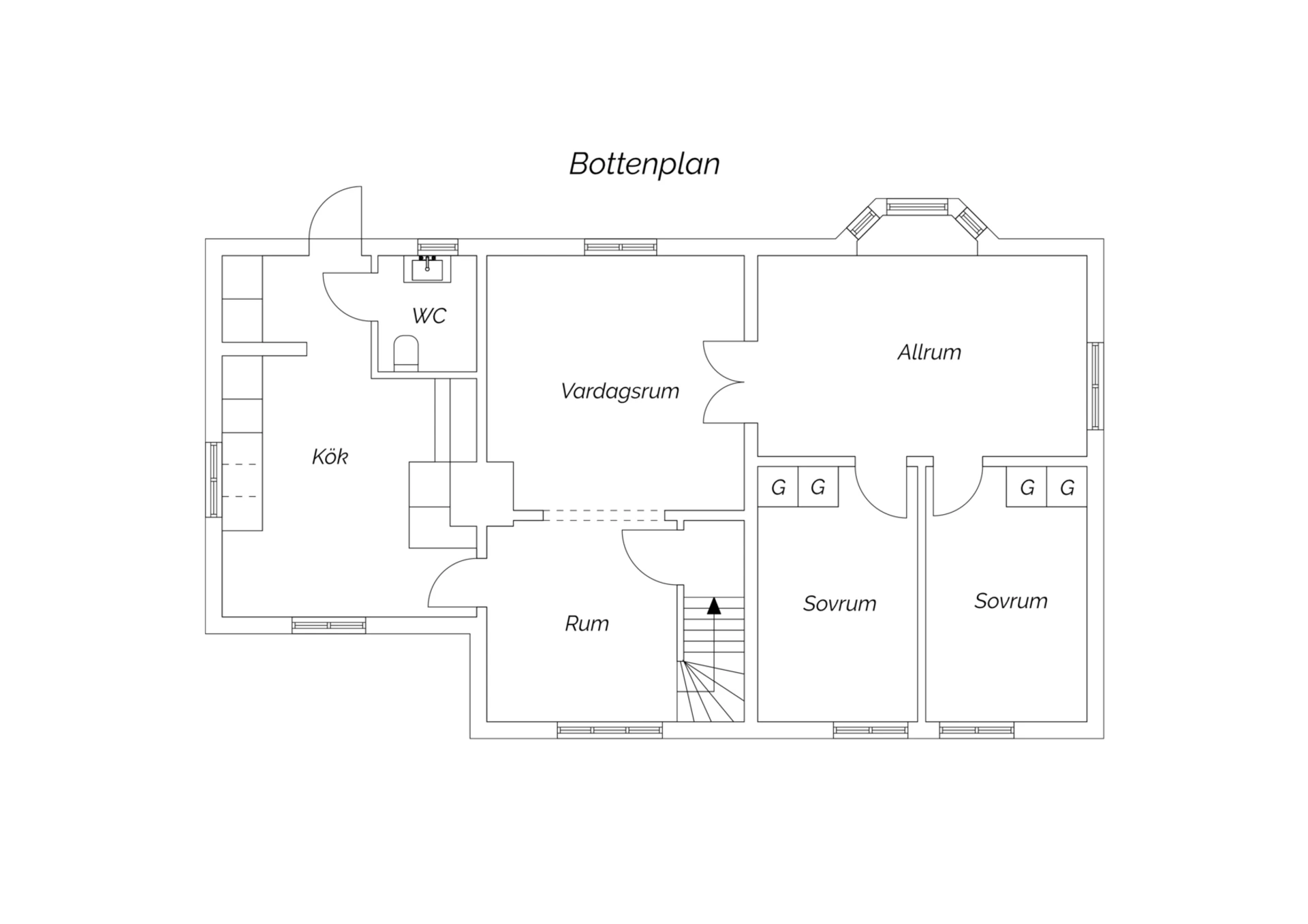 - Unik arkitektur med brutet tak - tidlös 30-talscharm med karaktär.