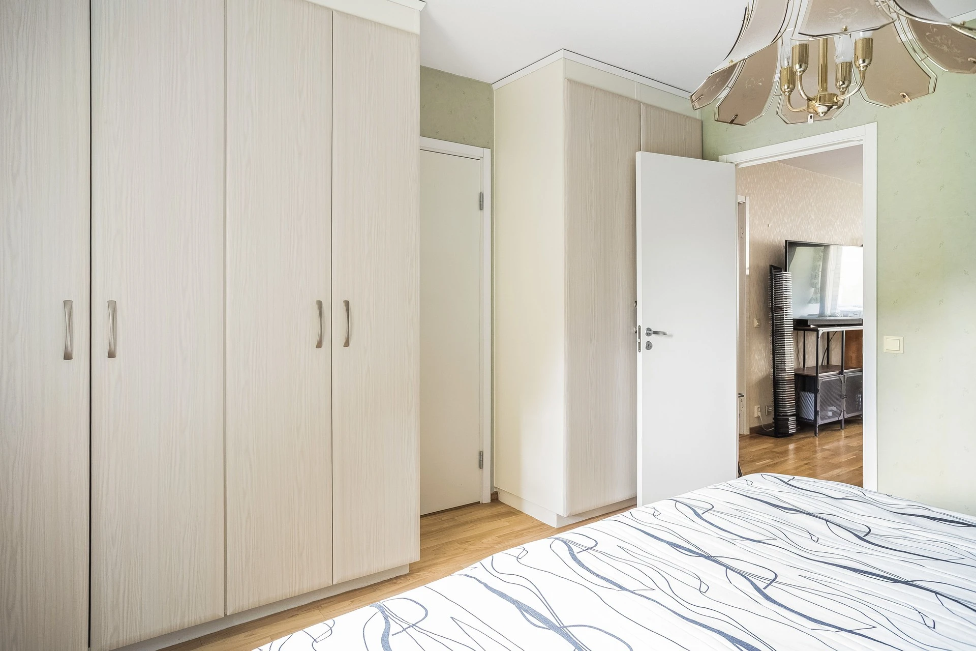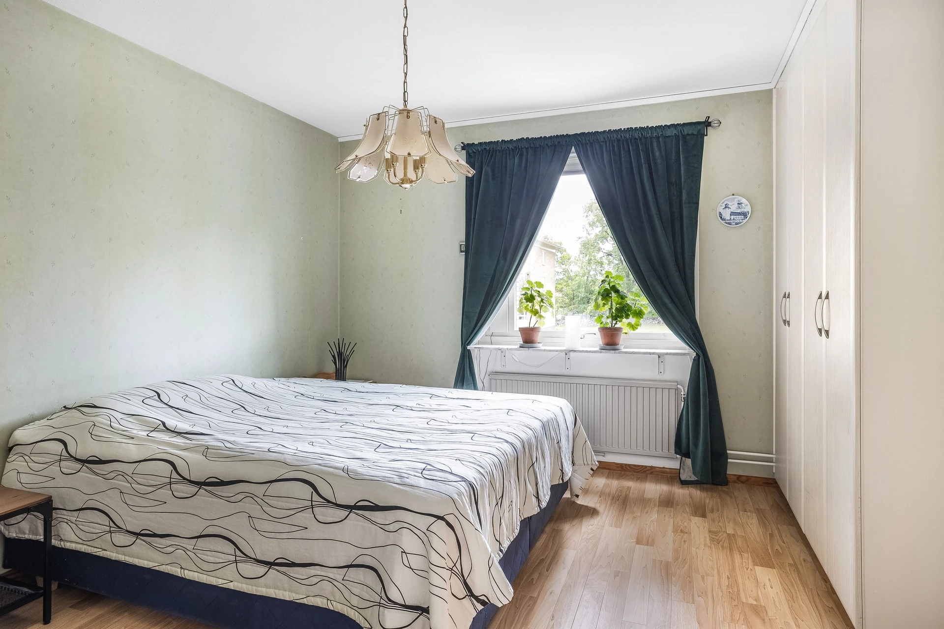 Sovrummet är rofyllt placerat i bostaden och här har du gott om plats med förvaring i flertal garderober.