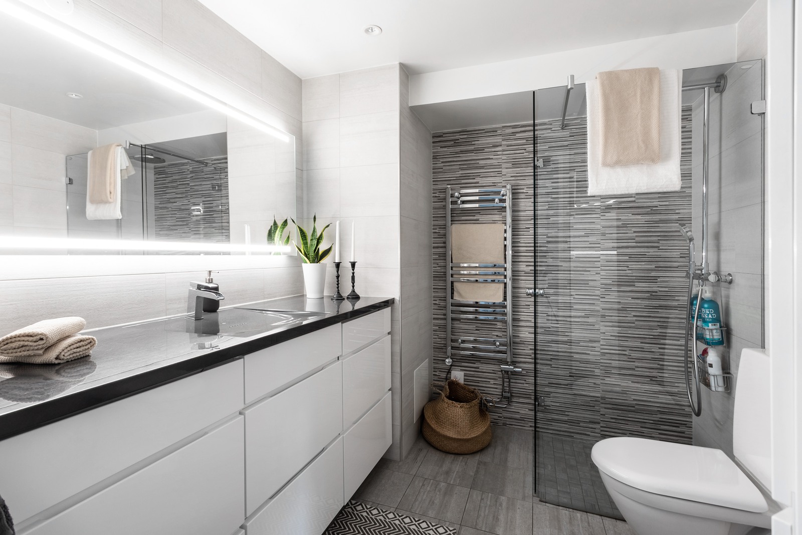 Och när vi pratar om el och vatten i samma rum är förstås säkerhetsaspekten enormt viktig. Välj belysning efter IP-klass och se till att placera ljuskällor på tryggt avstånd från vatten. Du bör alltid ta hjälp av en elektriker för installation av belysning i våtutrymmen.