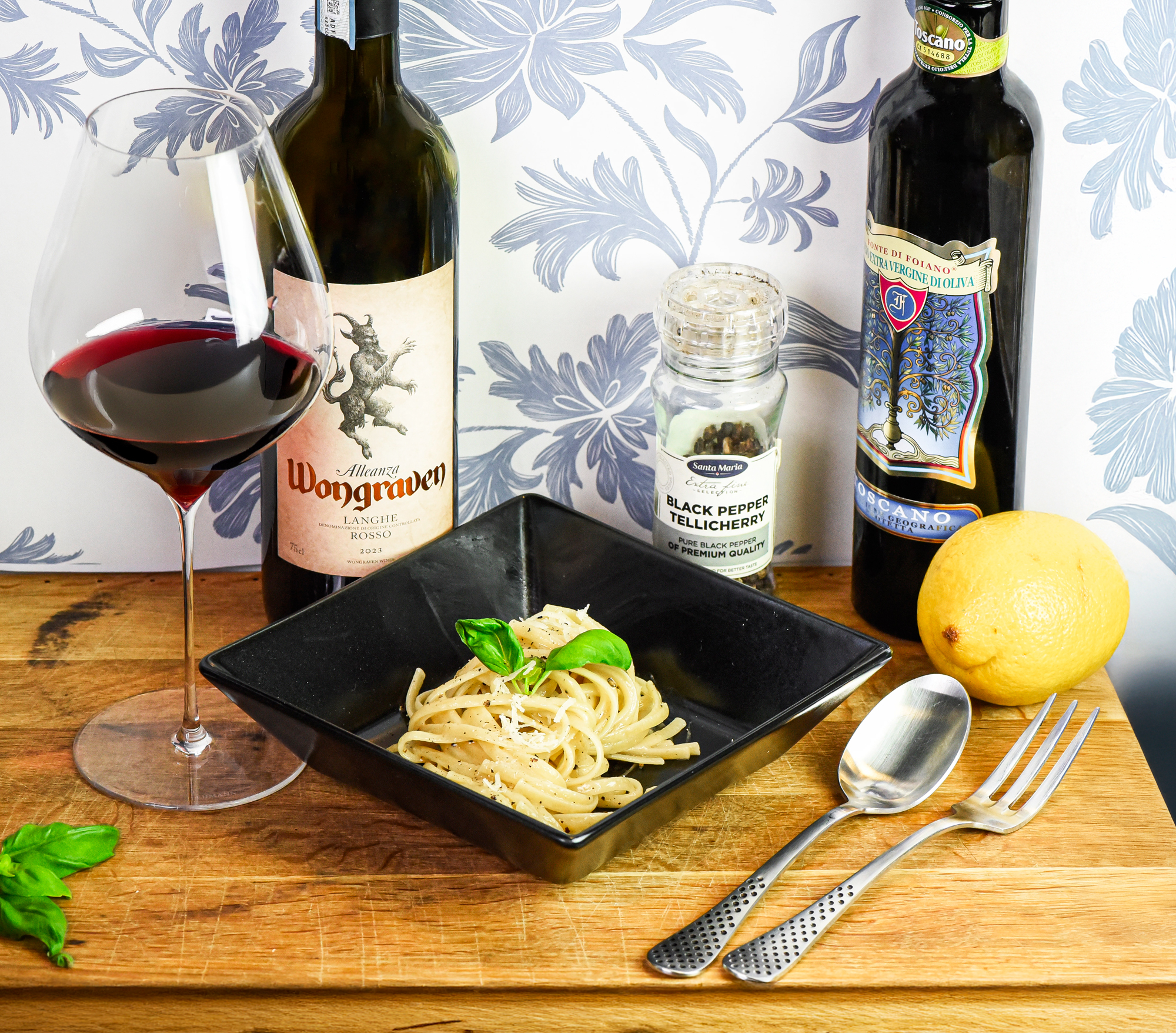 Att använda få råvaror av hög kvalitet för att snabbt kunna slänga ihop något oemotståndligt, är något som de flesta uppskattar. Och att sedan matcha detta till ett passande vin, för att lyfta upplevelsen ännu mer, ja det är bara logik – god sådan. I denna klassiska servering är pasta, svartpeppar och ost i fokus. I serveringen, Caccio e Pepe matchat till utsökt dryckesjom i form av Wongraven Alleanza Langhe Rosso 2023.