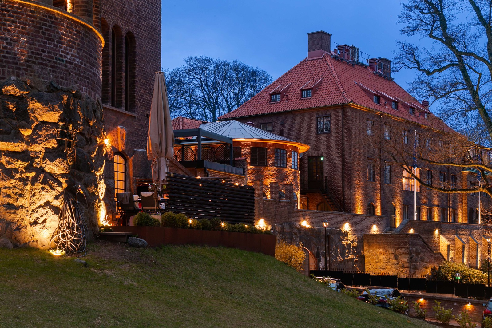Carlanderska villan är en magnifik byggnad i nationalromantisk stil med tegelfasad i rött, smäckra spröjsade fönster, brant takfall, mönstermurningar, rikt dekorerad trädörr och detaljer i natursten och koppar.