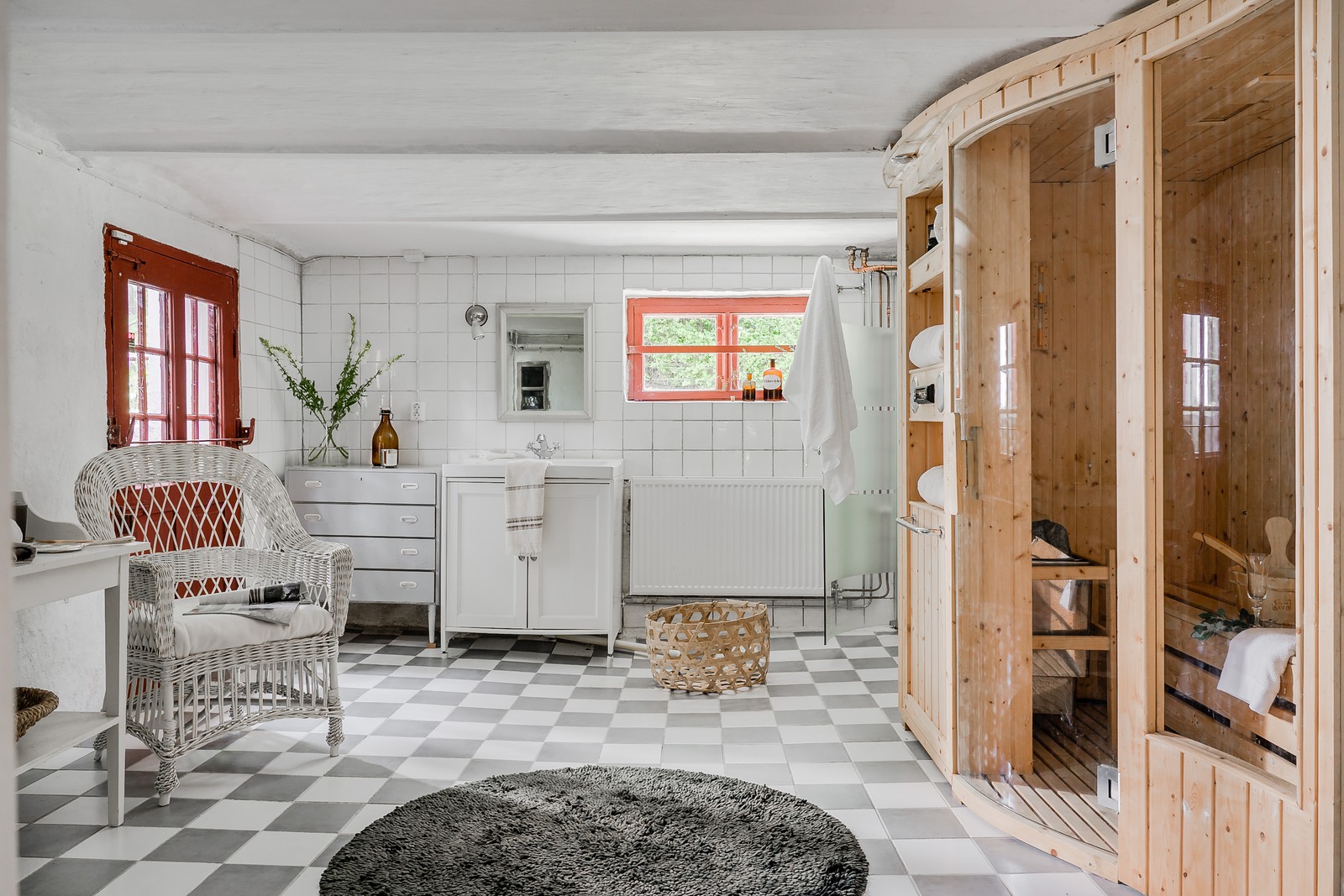 I källaren möts man av vackra valv som ger källaren ett extra lyft. Här nås en lyxig och fullt utrustad spaavdelning som kan vara härligt en kall vinterkväll.