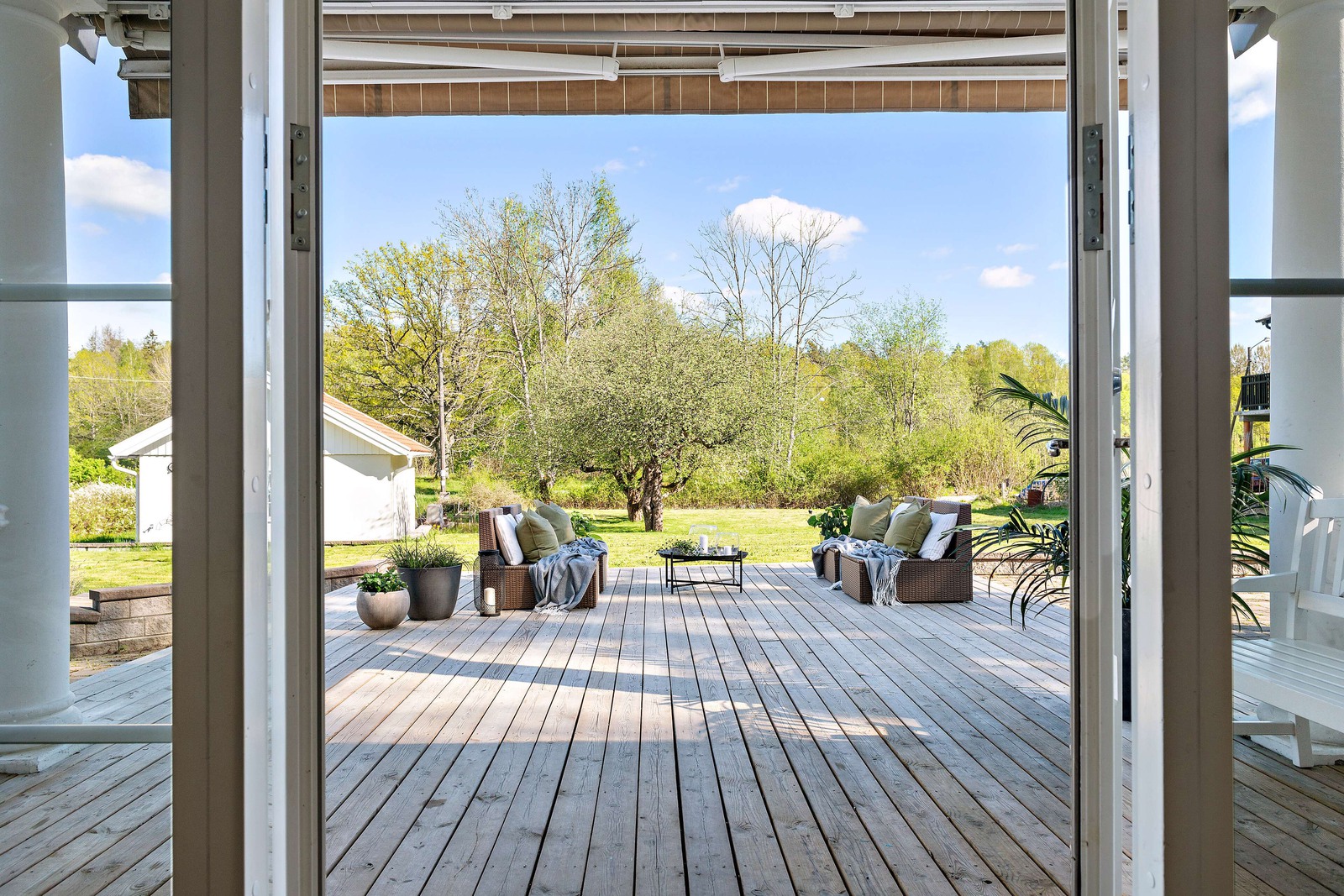 Den grönskande tomten med trädgård omringar huset och inger harmoni. Den generösa altanen erbjuder härliga stunder där vänner och familj kan samlas och njuta av ljumna sommarkvällar långt in på småtimmarna.