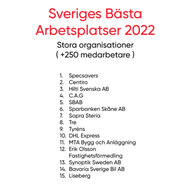 Utnämningen är gjord av Great Place to Work, ett undersöknings- och konsultföretag med huvudkontor i USA som varje år gör konfidentiella medarbetarundersökningar i över 10 000 organisationer världen över. Kvalitetsutmärkelsen Sveriges bästa arbetsplatser baseras på resultaten i dessa undersökningar.